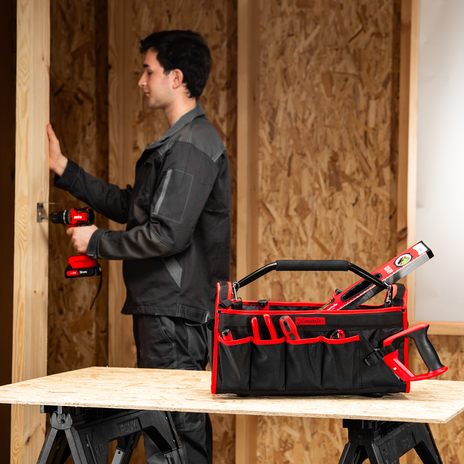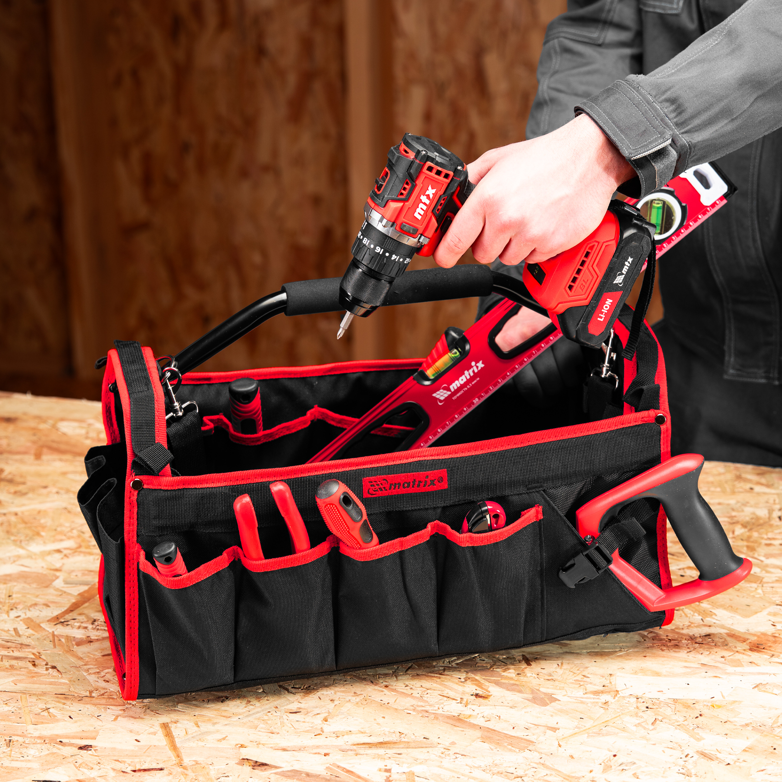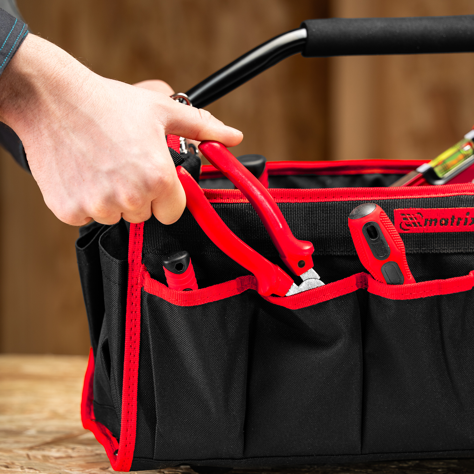 Каркасная переноска Matrix 90258 размером 490 х 230 х 280 мм удобна для перемещения и хранения инструментов. Имеет прочный каркас и весит 1,98 кг, ее легко транспортировать благодаря регулируемому плечевому ремню. В удобных карманах можно расположить все необходимые инструменты. Переноска пригодится дома, в гараже или в поездке.