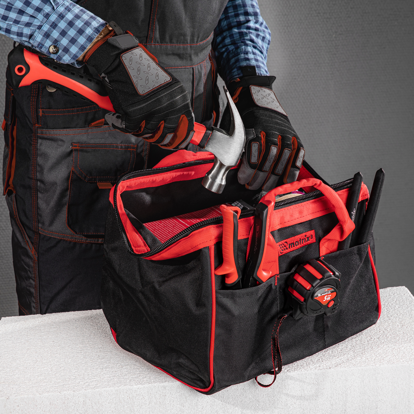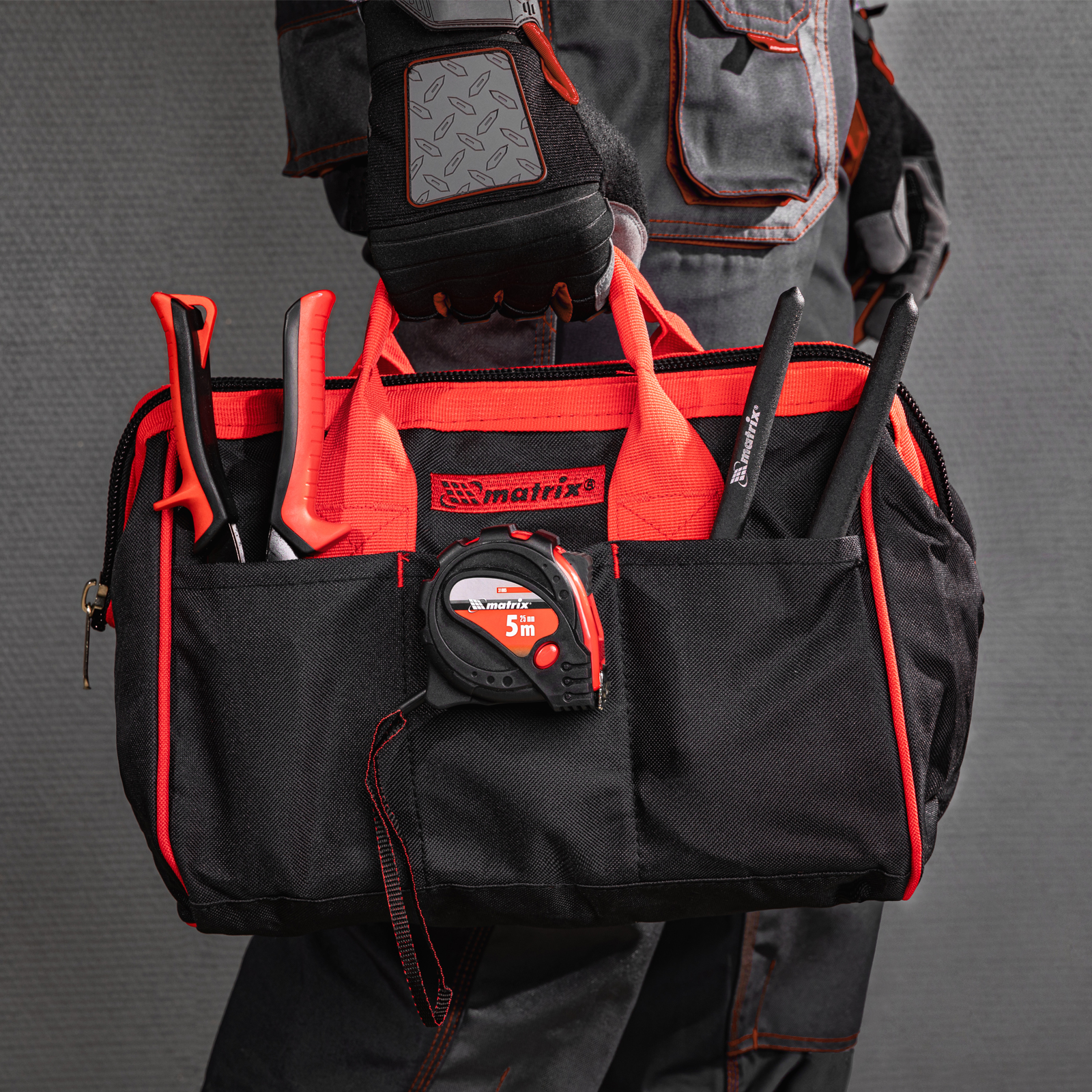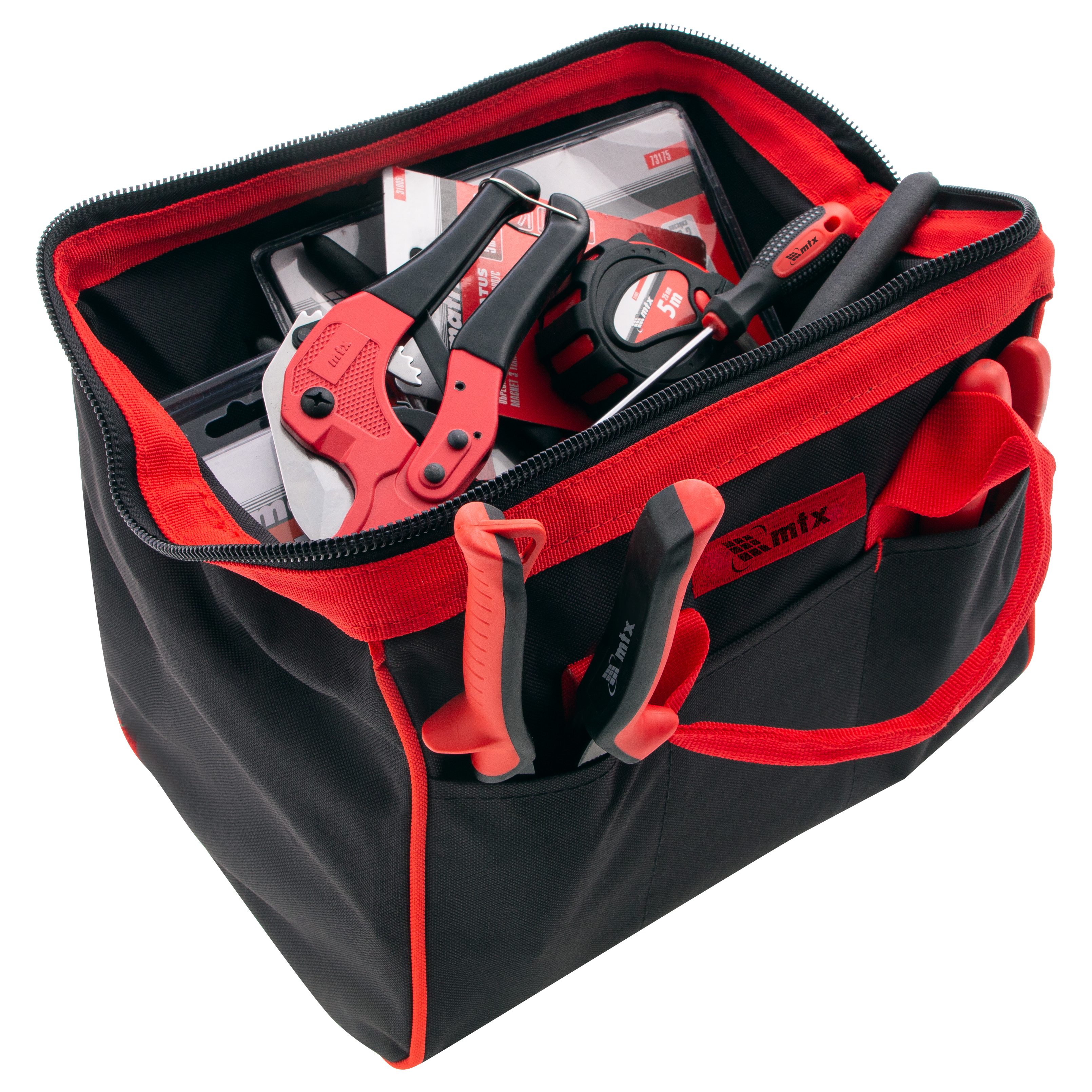 Сумка Matrix 90251 размером 315 х 215 х 225 мм, с 14 карманами, используется для транспортировки и хранения инструментов. 14 карманов и вместительное основное отделение позволяют разместить в сумке инструменты разного размера. Изделие пригодится монтажникам, строителям, будет полезно дома и в поездке.