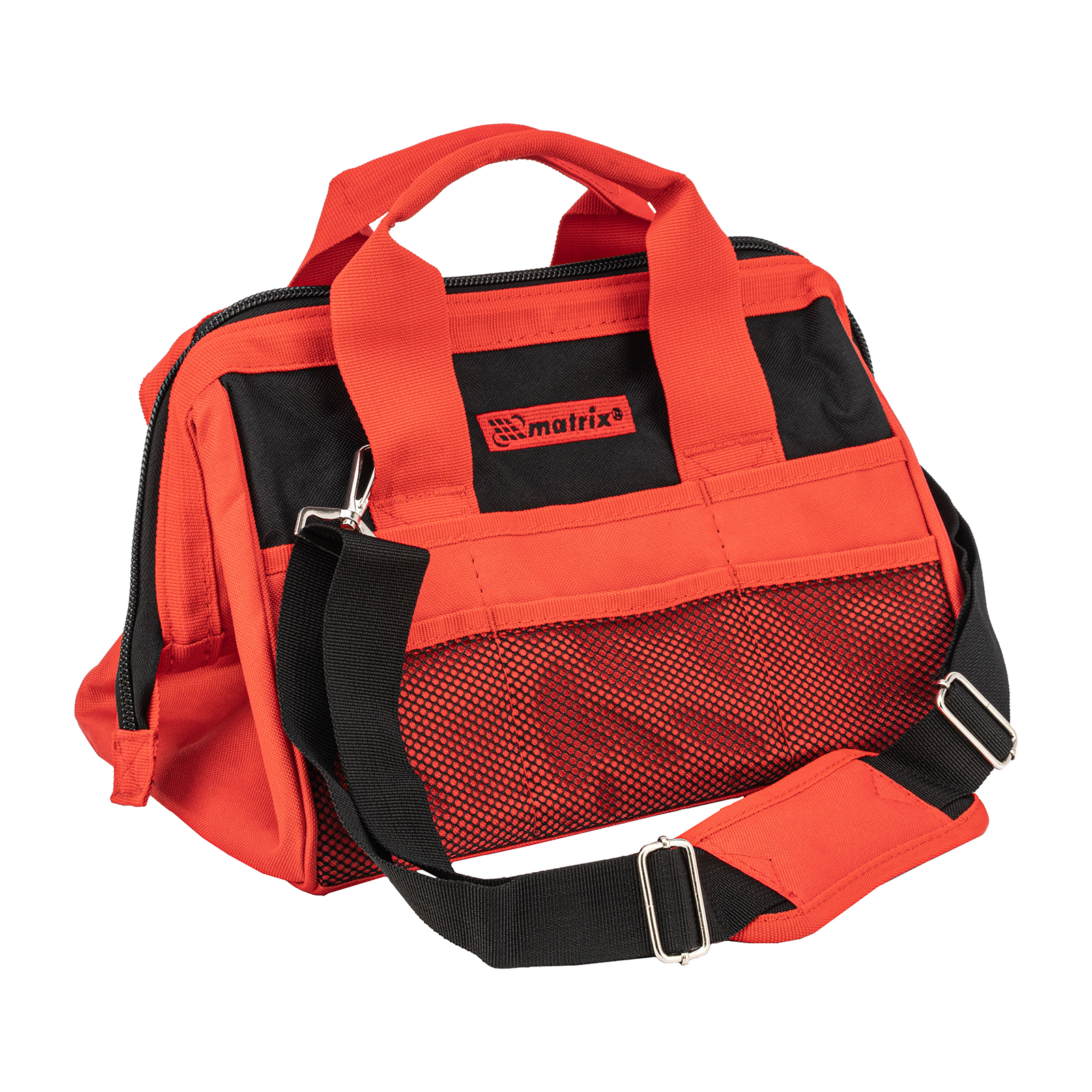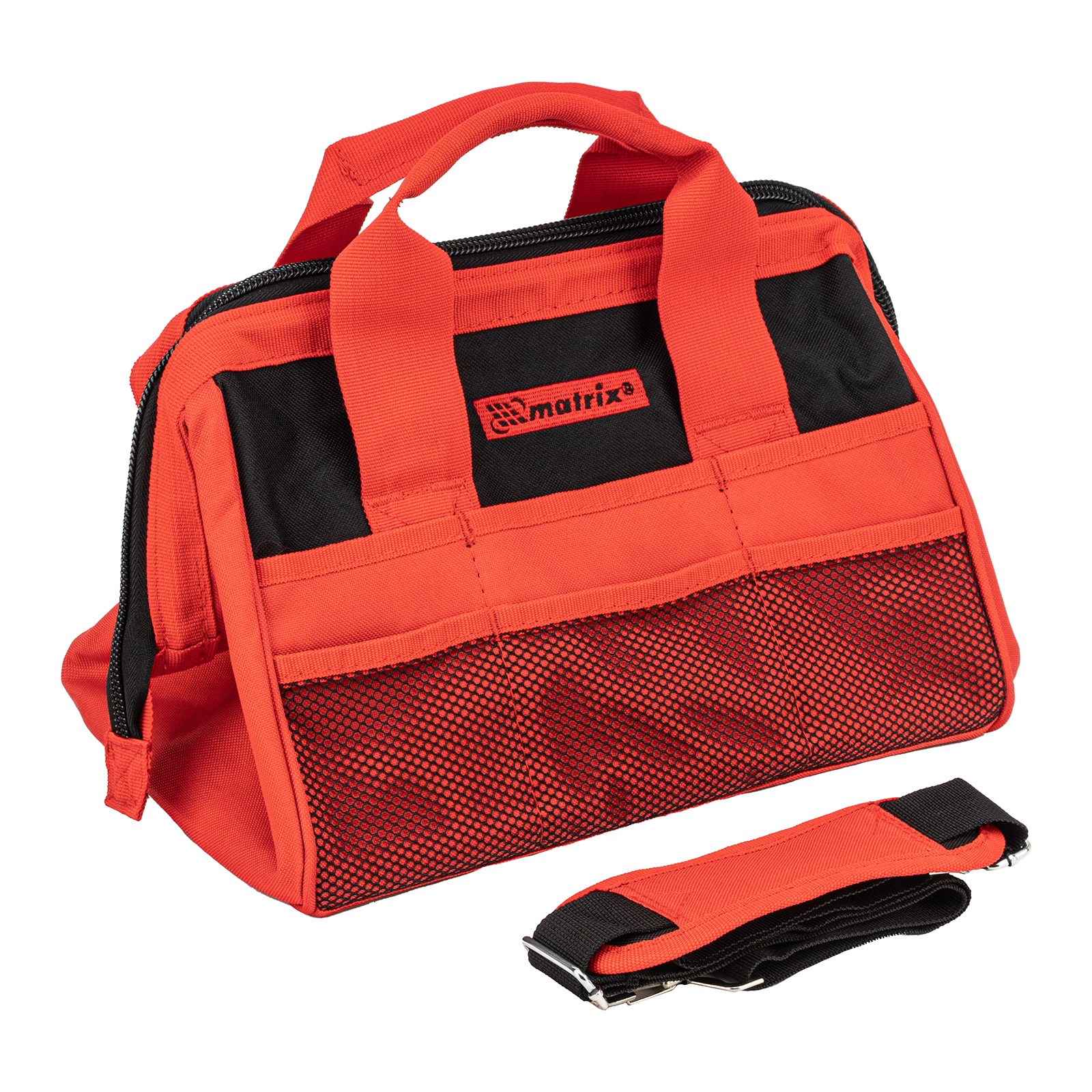 Сумка Matrix 90259 с 18 карманами, размером 320 х 215 х 250 мм, предназначена для транспортировки и хранения слесарных или столярных инструментов. Может использоваться для перевозки автопринадлежностей. В 18 карманах и вместительном основном отделении можно разместить инструменты разного размера. Сумка пригодится монтажнику, слесарю, строителю, будет полезна дома и в поездке.