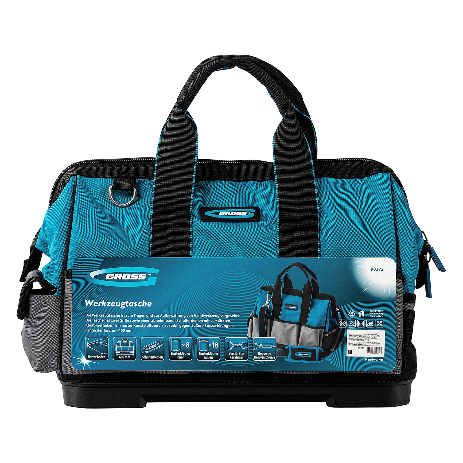 Сумка для инструмента Gross Handwerker 90272 размером 400 х 225 х 310 мм, с 26 карманами, пластиковым дном и наплечным ремнем, будет полезна слесарям, монтажникам, электрикам, а также автомобилистам. В основном отделении, внутренних и внешних карманах поместятся все необходимые инструменты.