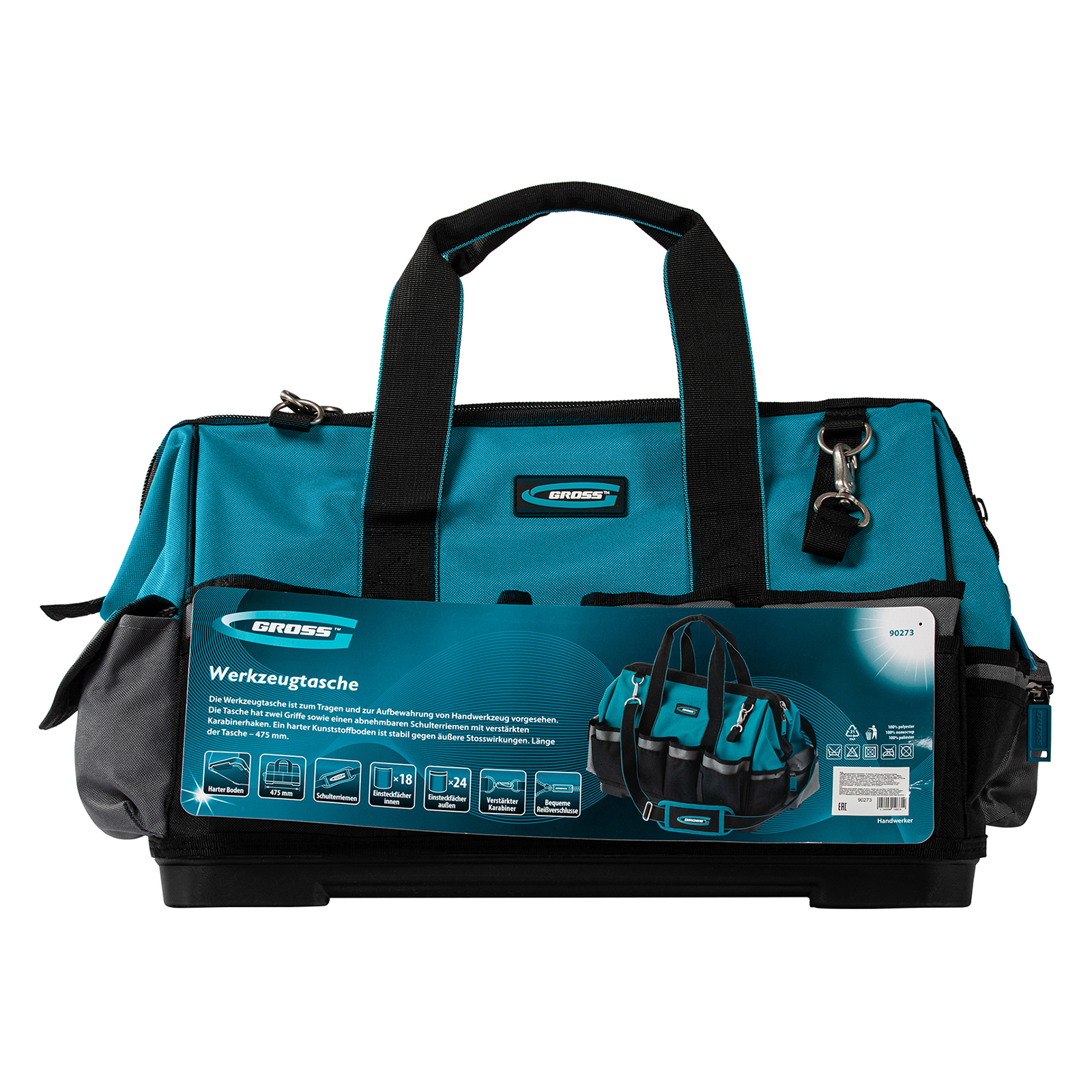 Сумка для инструмента Gross Handwerker 90273 размером 475 х 260 х 360 мм, с 42 карманами, пластиковым дном и наплечным ремнем, будет полезна слесарям, монтажникам, электрикам, а также автомобилистам. В основном отделении, внутренних и внешних карманах поместятся все необходимые инструменты.