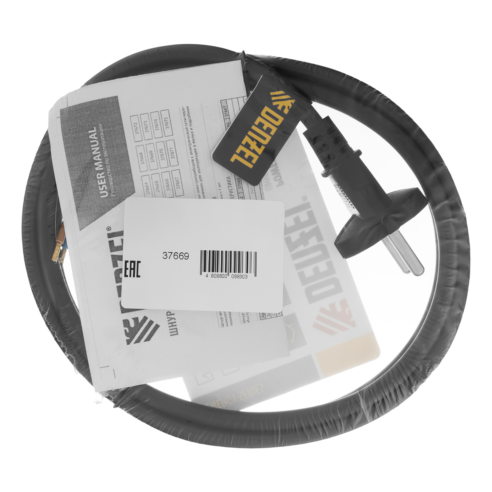 Черный сетевой шнур Denzel Energy Series 37669 с кабелем ПВС сечением 2 x 1,5 мм и длиной 1,5 м, с неразборной вилкой, предназначен для подключения к сети электроприборов мощностью до 3680 Вт. Для смотанного кабеля максимальная мощность потребителя составляет 1840 Вт. Шнур можно использовать для самостоятельного подключения прибора или замены вышедшего из строя провода. Сделано в России.