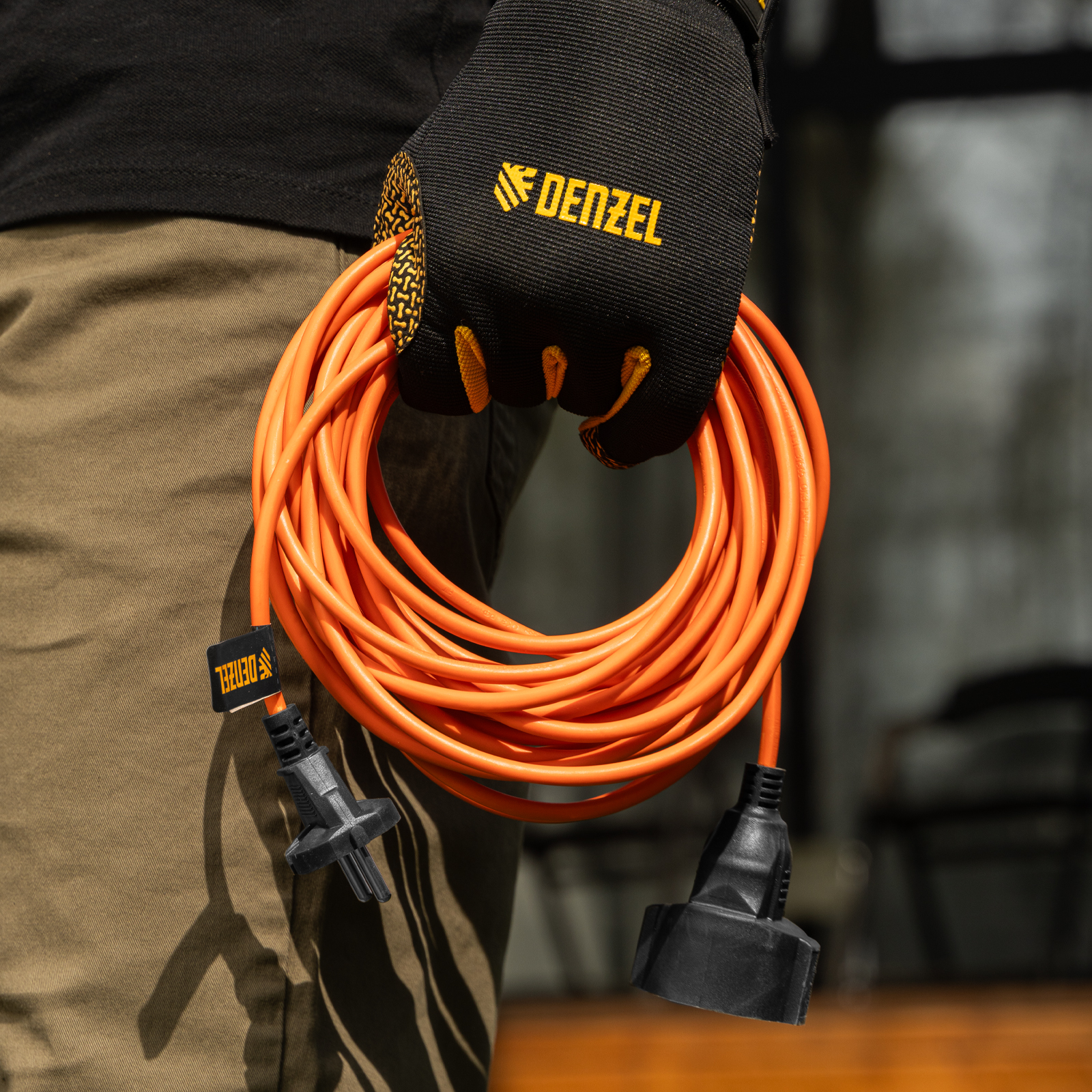 - Хорошая видимость — удлинитель ярко-оранжевого цвета заметен среди прочих предметов и строительного мусора.