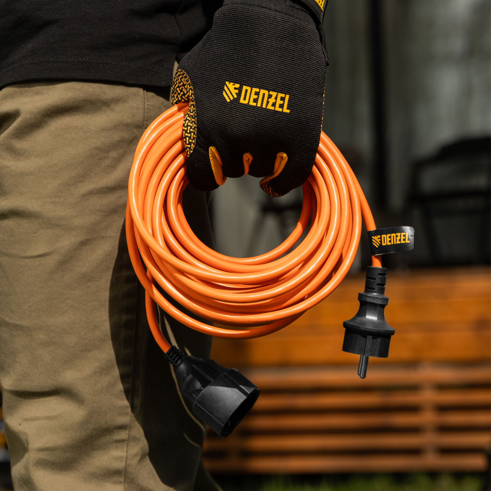 Силовой удлинитель-шнур Denzel Garden Series 37407 с кабелем ПВС сечением 3 x 1,5 мм и 1 розеткой, позволяет подключать приборы к электросети на расстоянии до 10 м от стационарного источника питания. Максимальная мощность потребителя составляет 4400 Вт при полностью размотанном кабеле и 2200 Вт — при смотанном. Удлинитель может использоваться при температуре от +5 до +35 °C. Пригодится дома, на даче, в гараже.