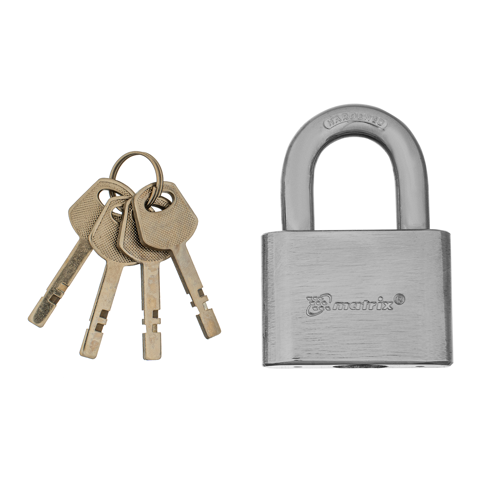 Навесной замок Matrix 91802 шириной 60 мм, с хромированным покрытием, используется для запирания дверей в помещениях с целью защиты собственности. Его можно повесить на дверь склада, гаража, подвала и т.д. Замок навесного типа легко устанавливается с помощью специальных проушин.