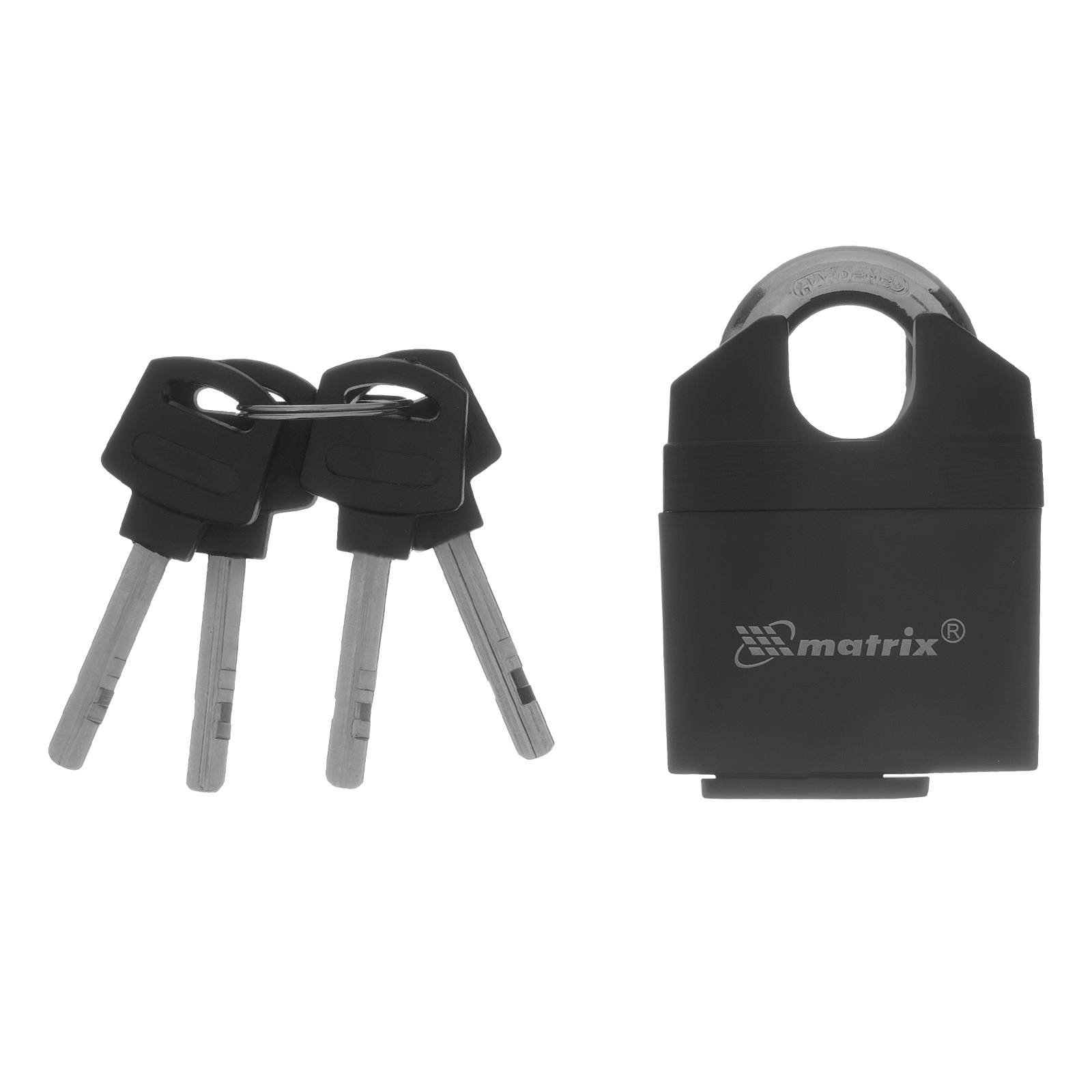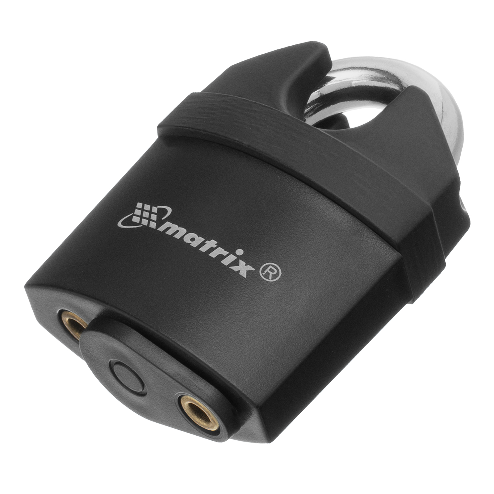 Навесной усиленный всепогодный замок Matrix 91812 шириной 50 мм позволяет закрывать двери помещений для предотвращения взлома и несанкционированного проникновения. Замок можно использовать в любых погодных условиях, т.к. он закрыт пластиковым кожухом, а специальная шторка не допускает попадания влаги на личинку.