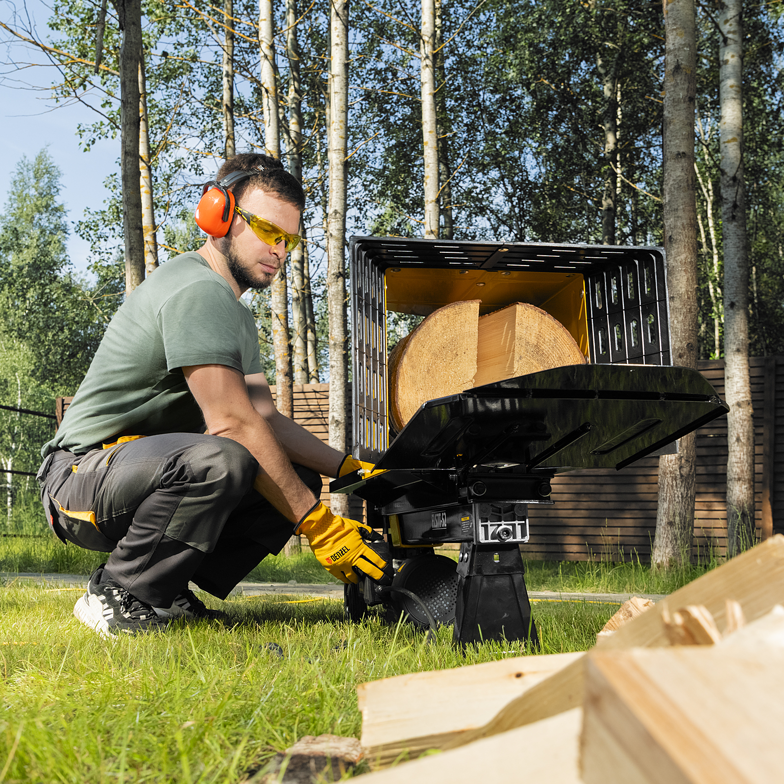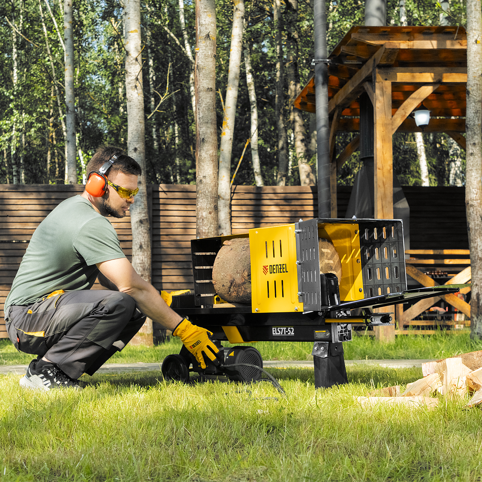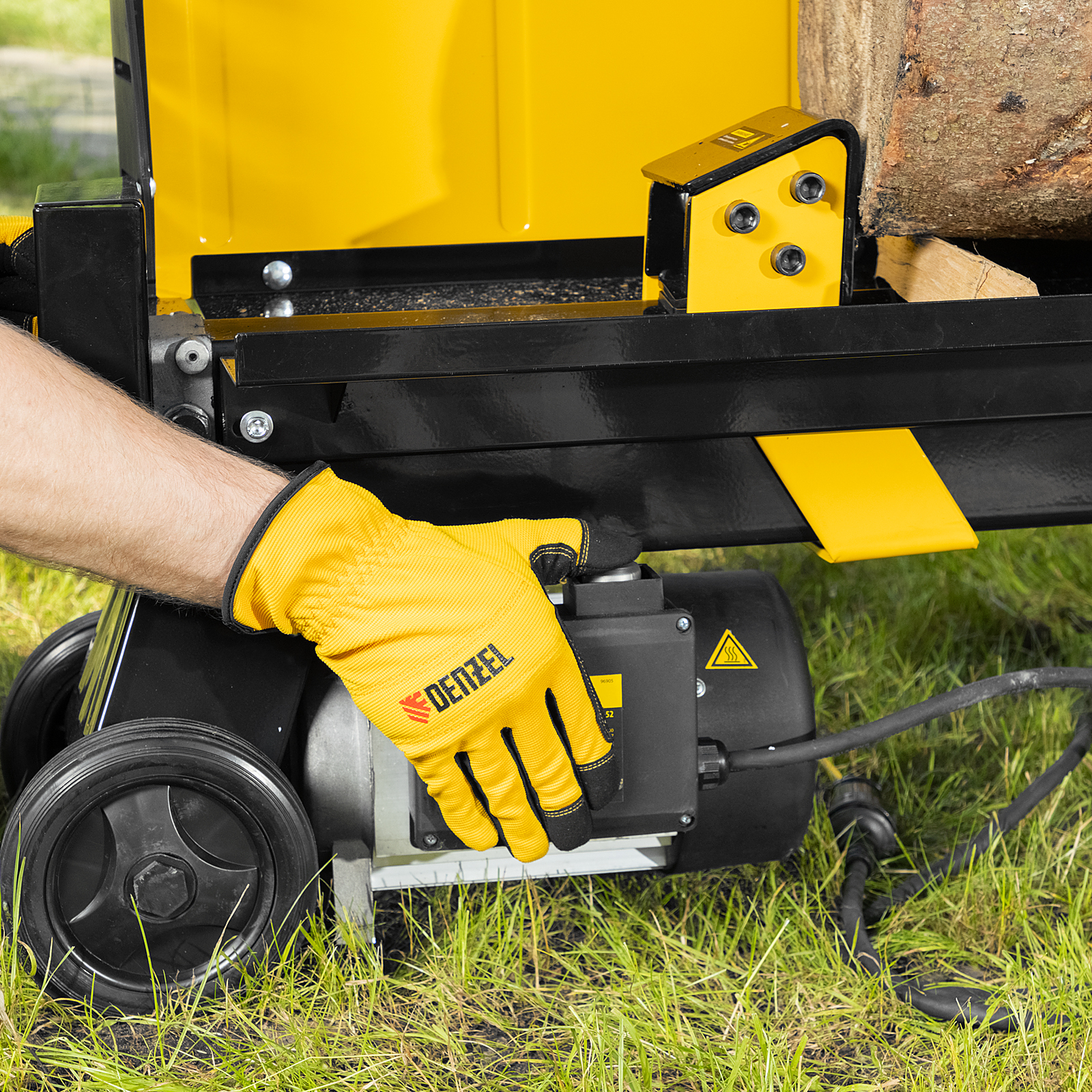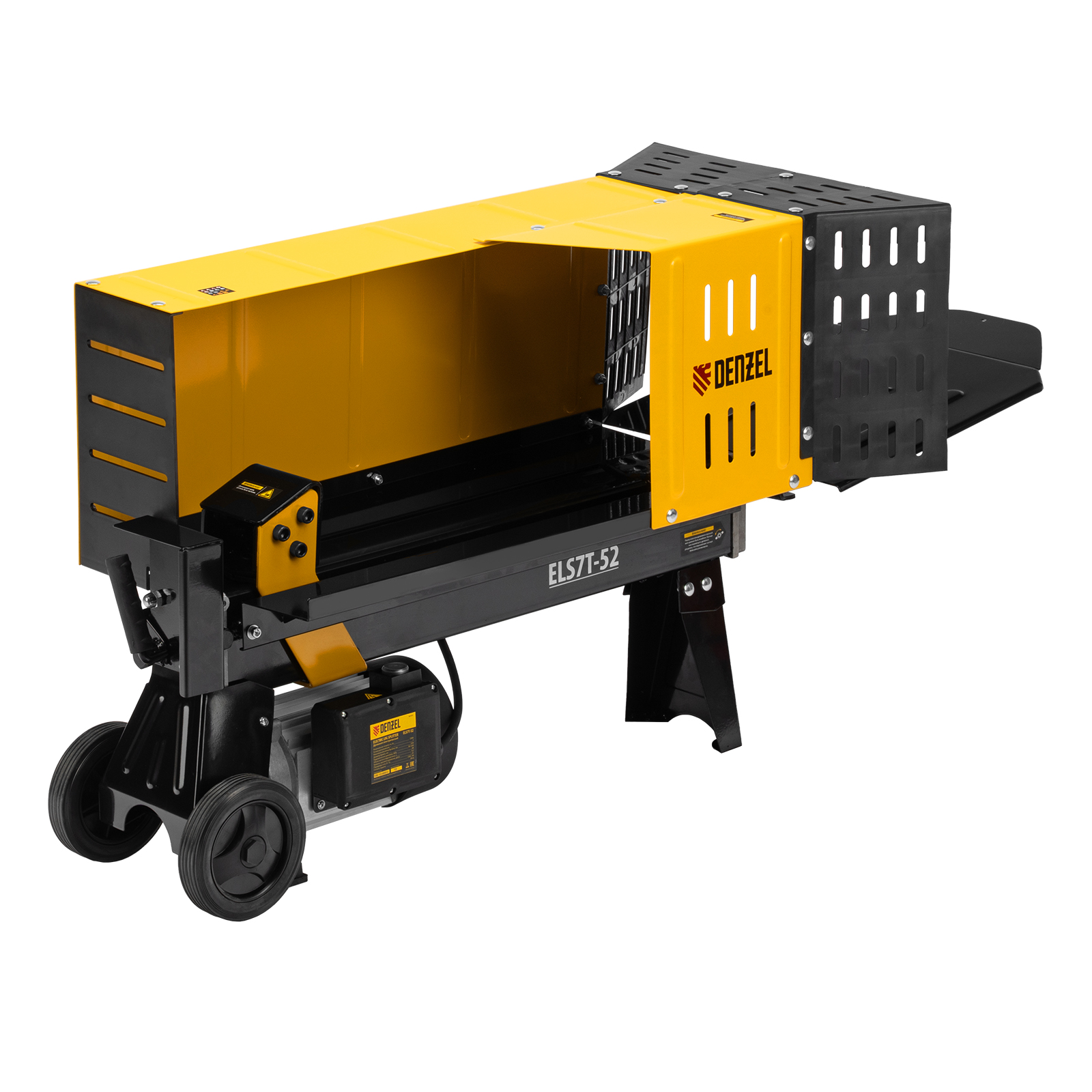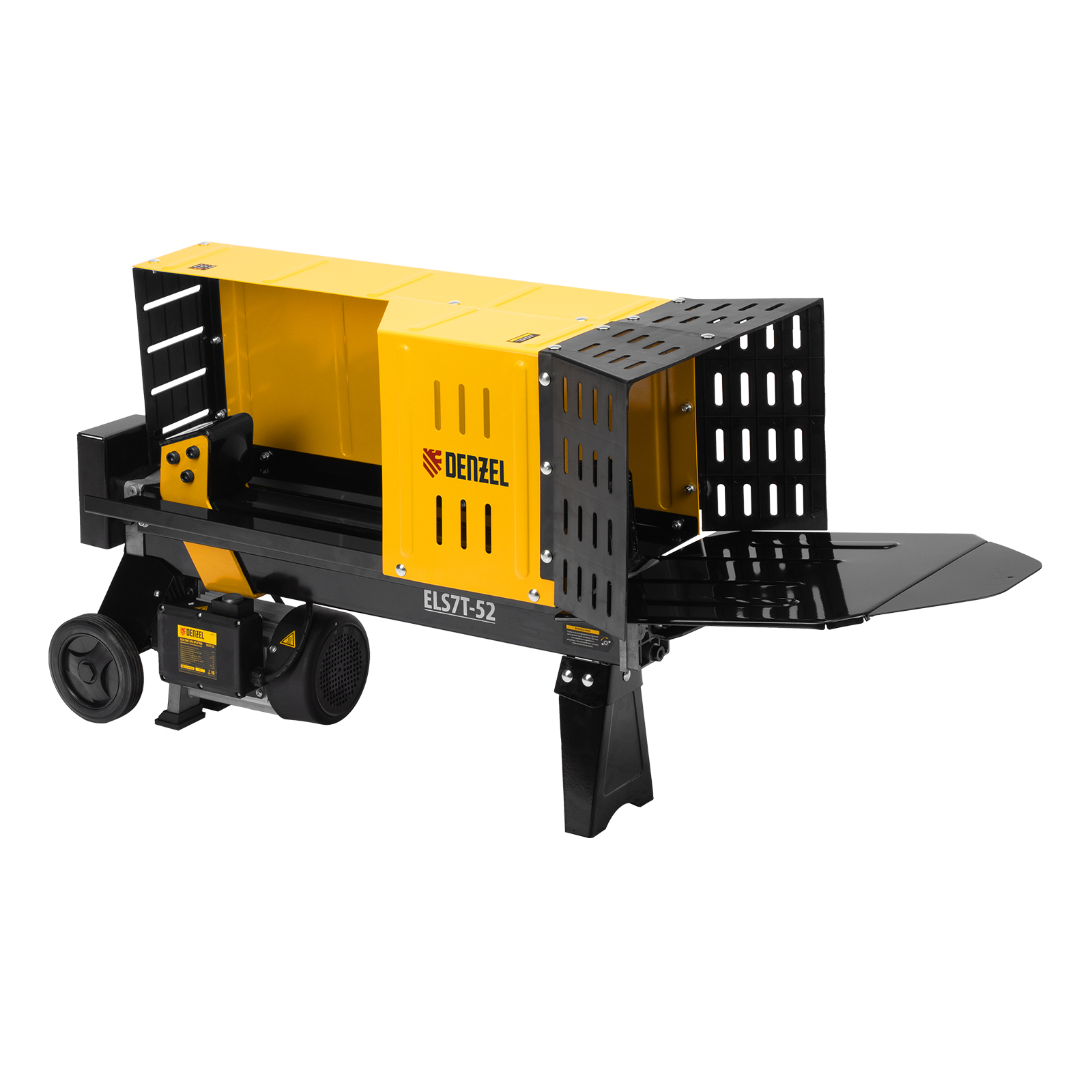 Электрический дровокол Denzel 96905 мощностью 2300 Вт значительно упрощает процесс раскалывания поленьев диаметром 50-250 мм и длиной до 520 мм. Заготовка дров производится быстро и не требует практически никаких усилий от мастера. Дровокол будет полезен владельцам бань и домов с печным отоплением/камином, любителям отдыха на природе, рыбакам и охотникам. Благодаря значительному усилию раскола 7 тонн устройство подходит для полупрофессионального применения, поэтому пригодится работникам коммунальных служб и дровяных котельных., Асинхронный электрический двигатель отличается высоким ресурсом и надежностью. Дровокол подключается к бытовой сети и не требует сложного технического обслуживания — достаточно включить его в розетку, и можно приступать к работе. Колоть дрова можно даже в закрытом помещении, ведь устройство не производит вредных выхлопов.
