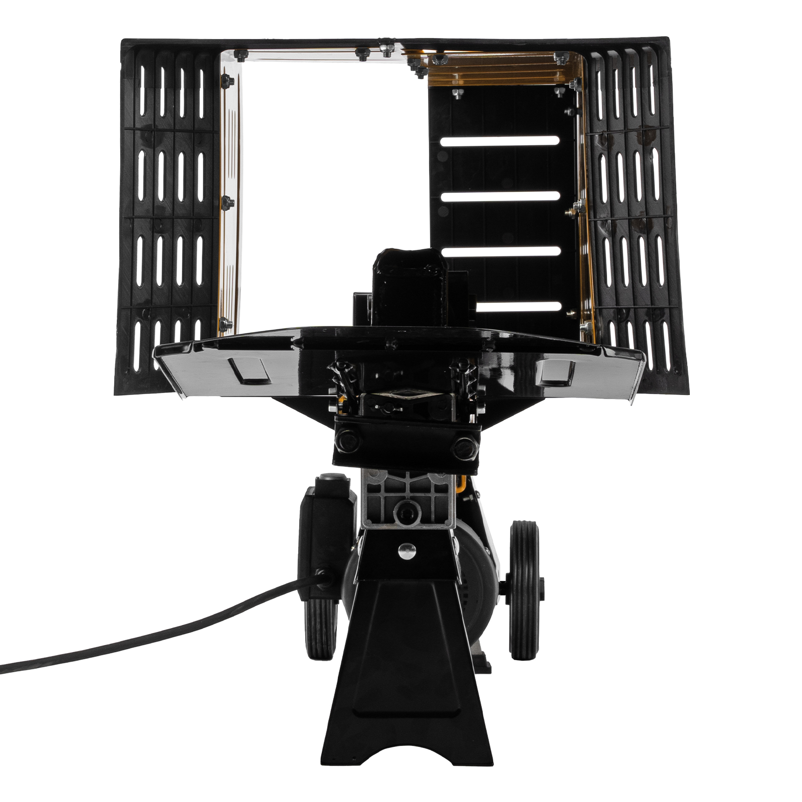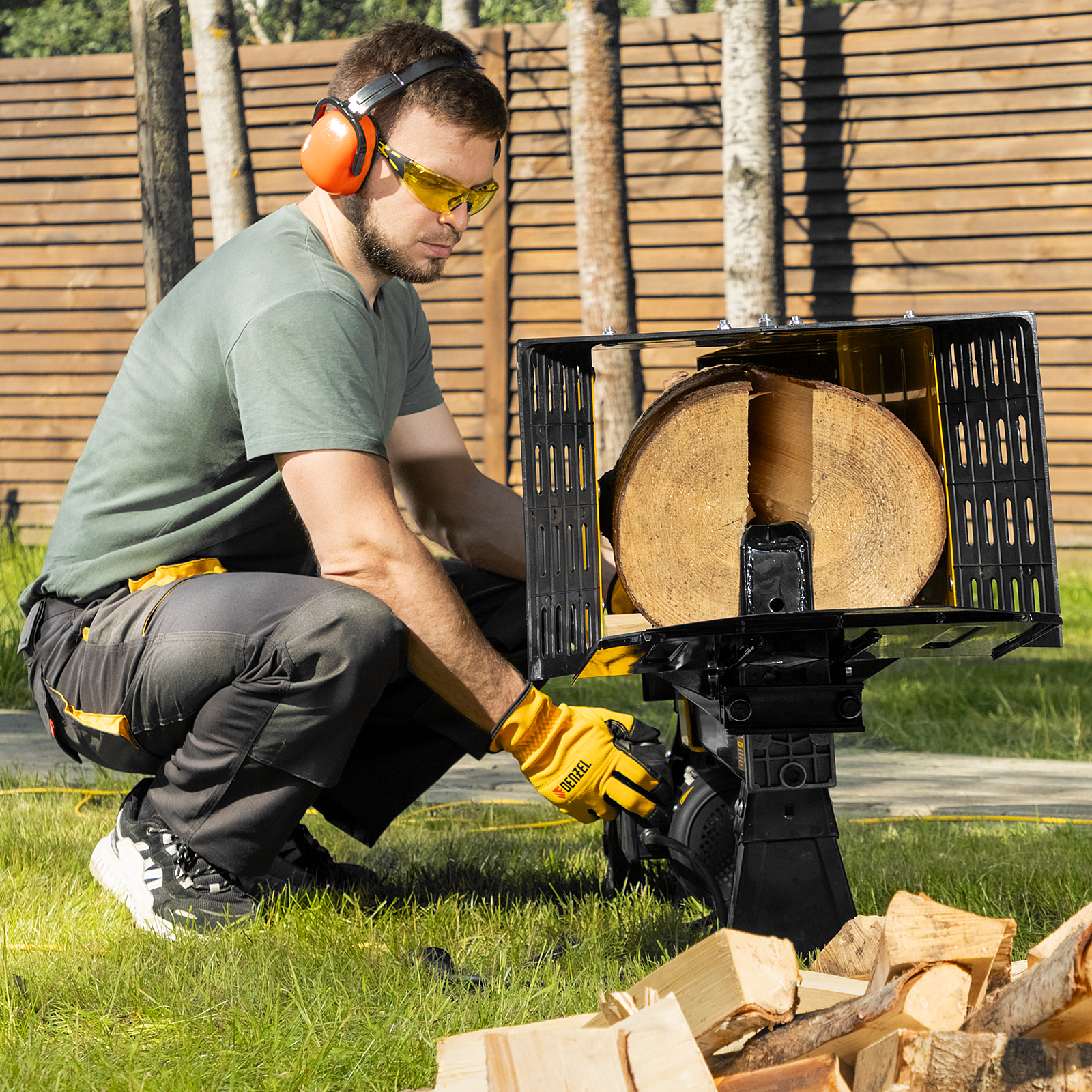 - Устойчивая конструкция — благодаря весу 56 кг и опорам дровокол надежно фиксируется на ровной поверхности и не смещается в процессе работы.