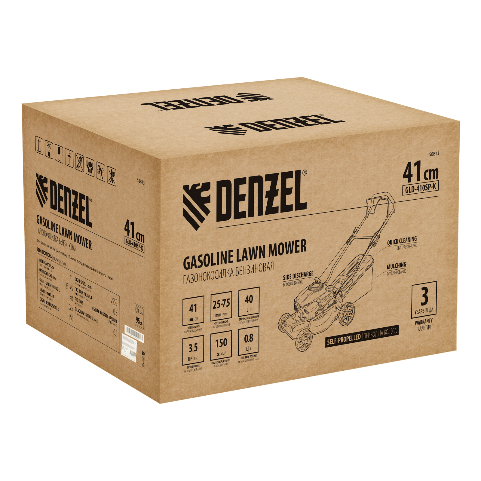 Ключевое отличие газонокосилки Denzel GLD-410SP-K от конкурентов — наличие привода на колеса, функций мульчирования и бокового выброса, а также уникальный дизайн.