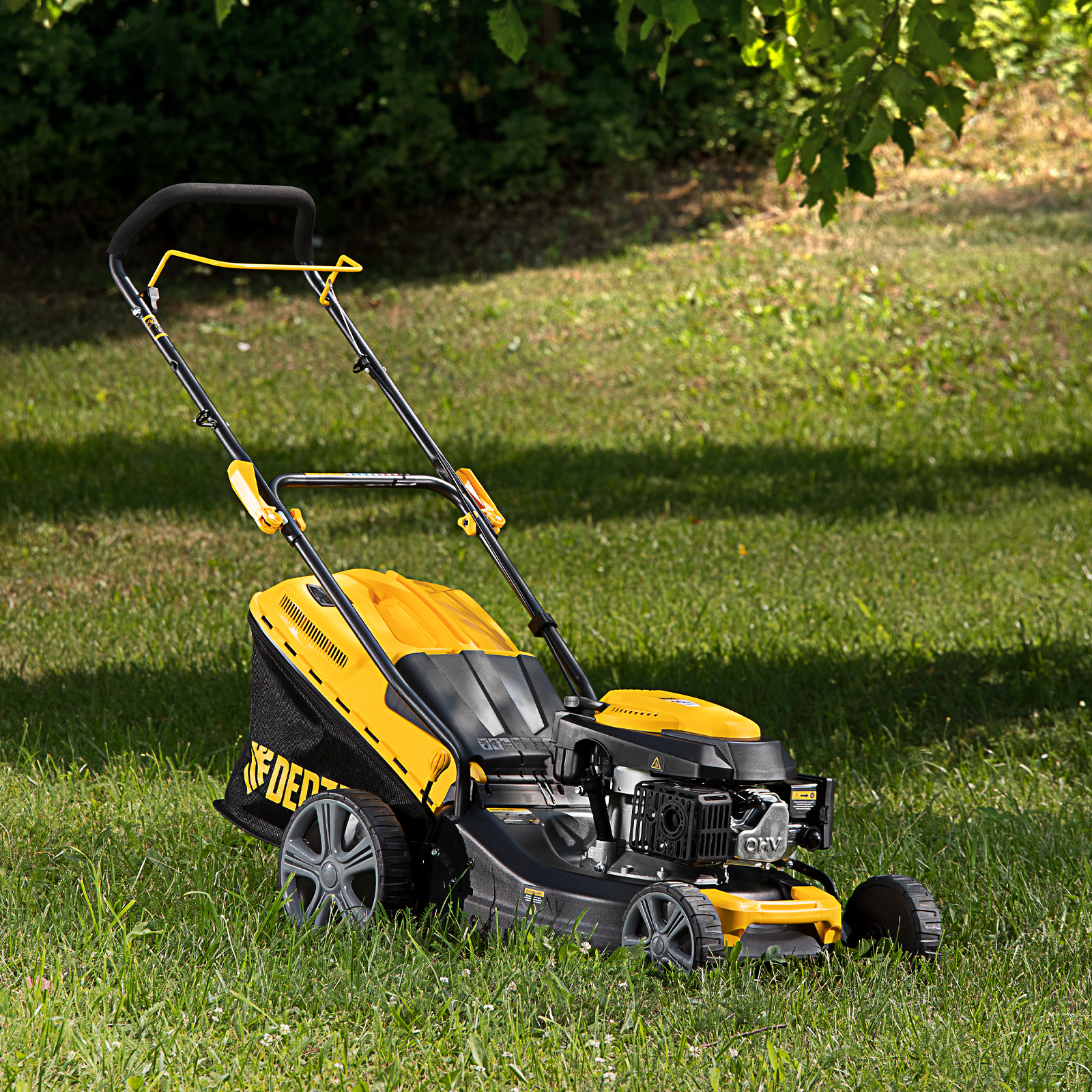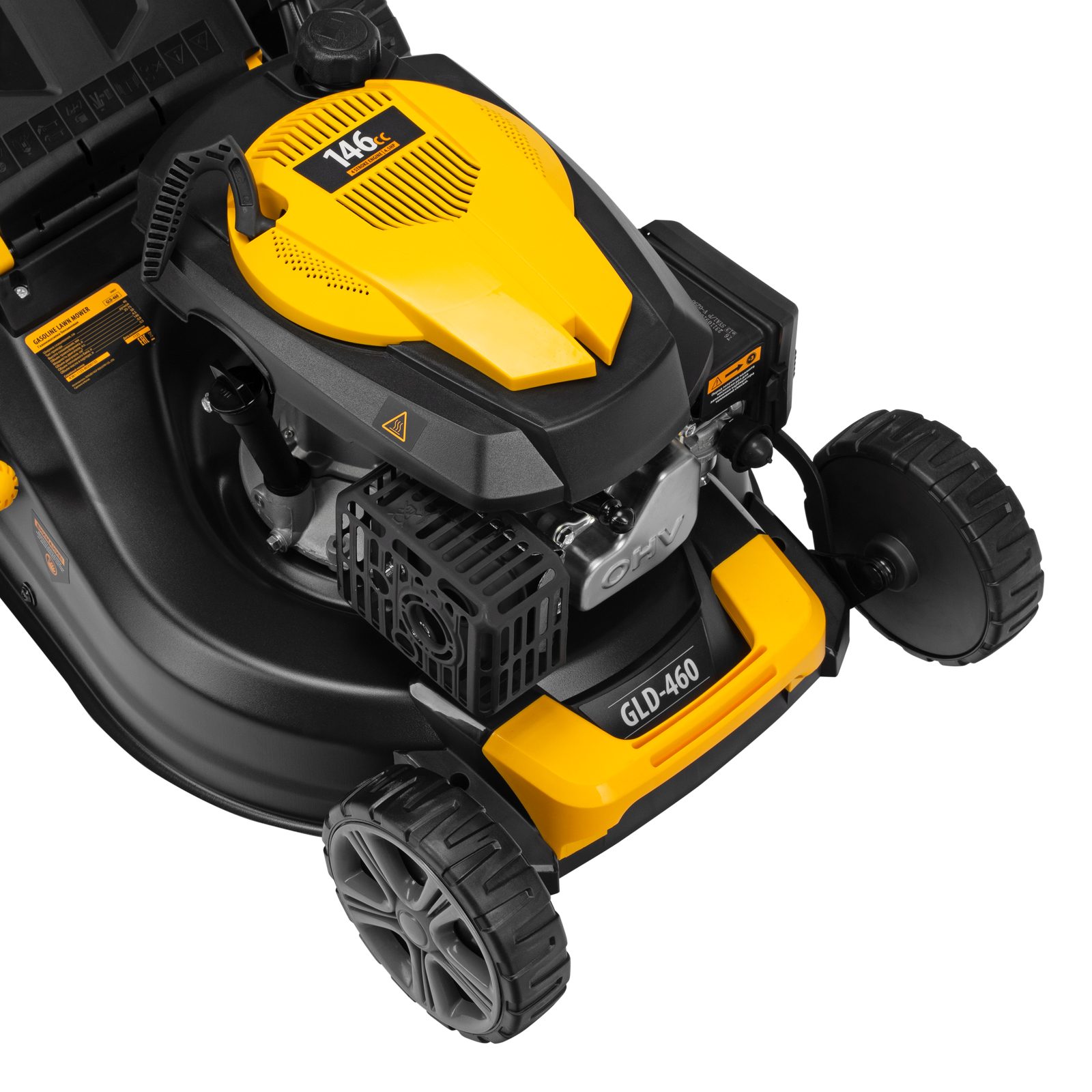 Газонокосилка бензиновая Denzel GLD-460 58802 с двигателем объемом 146 см3, ручным приводом и травосборником на 50 л, с 7 уровнями скашивания и шириной прохода 46 см, предназначена для уходом за молодой травой на приусадебном участке. Благодаря мощности двигателя 4,5 л.с. и ширине скашивания 46 см/проход за 1,5 часа удастся обработать до 2500 м2.