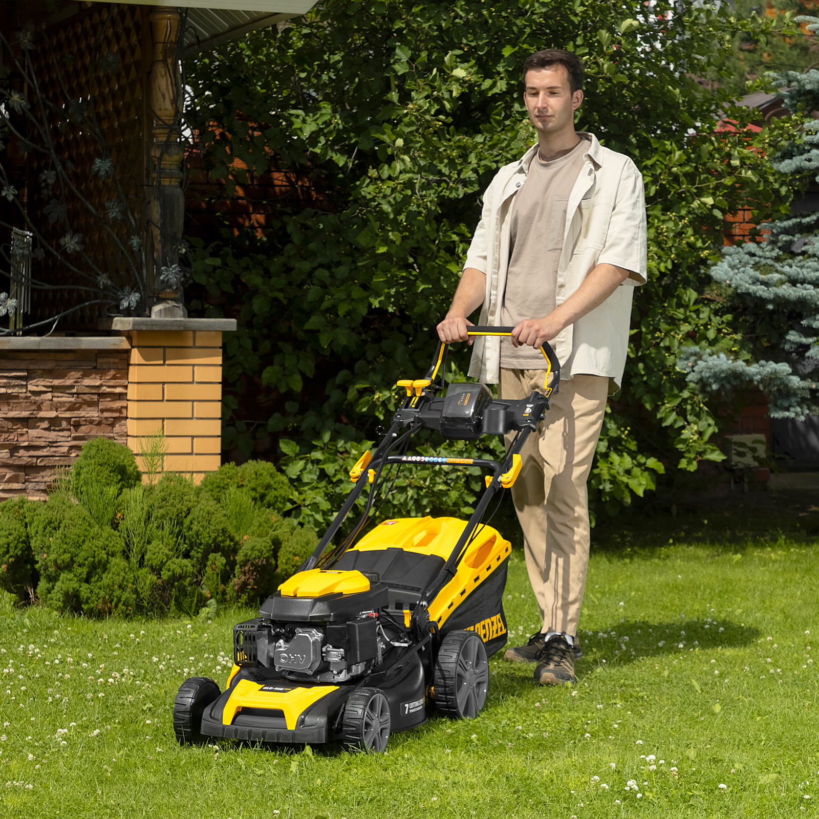 - Режим мульчирования — трава измельчается и возвращается в виде удобрения на газон.