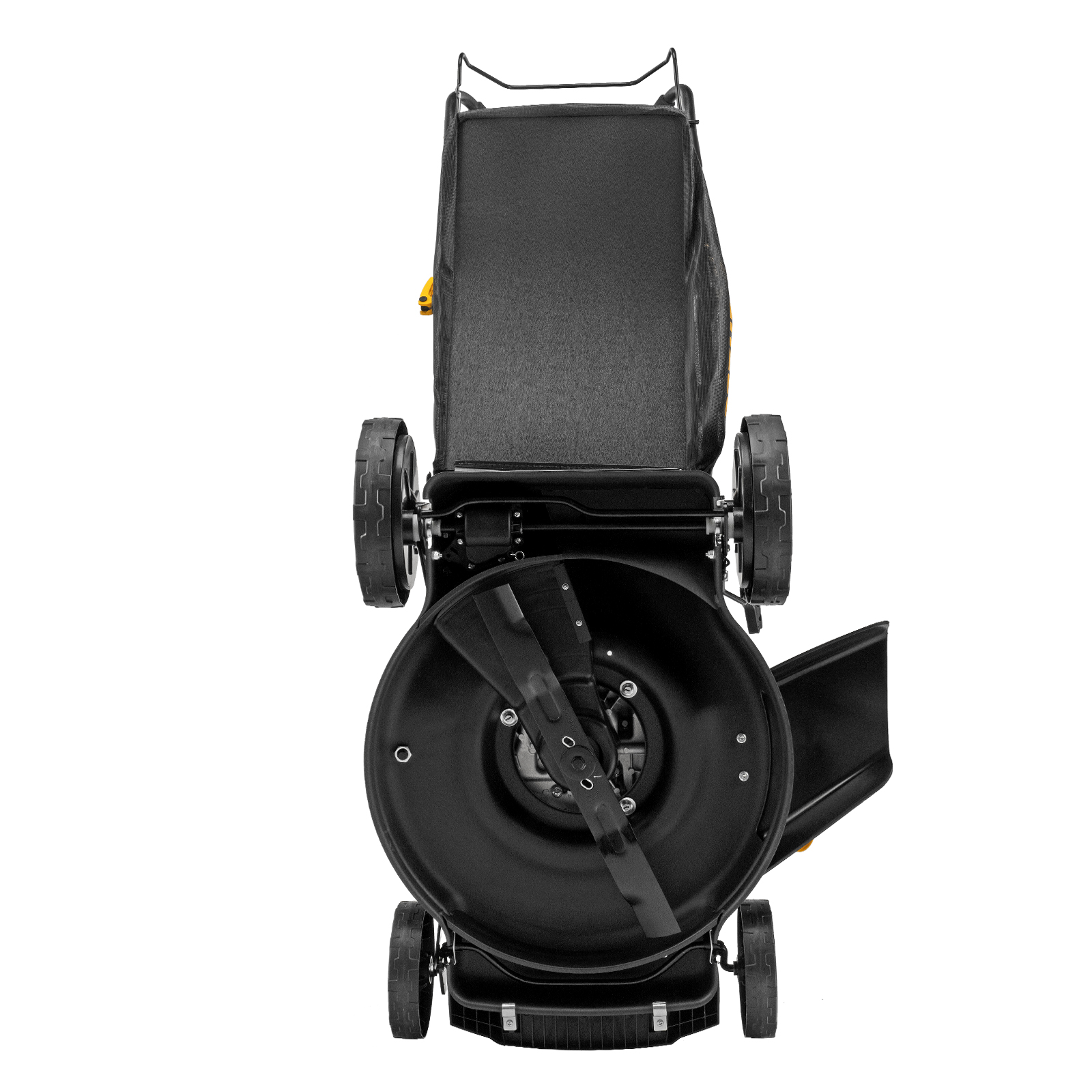 - Оптимизированная геометрия деки — прочный корпус изготовлен таким образом, чтобы срезанная трава быстрее и легче попадала в травосборник.
