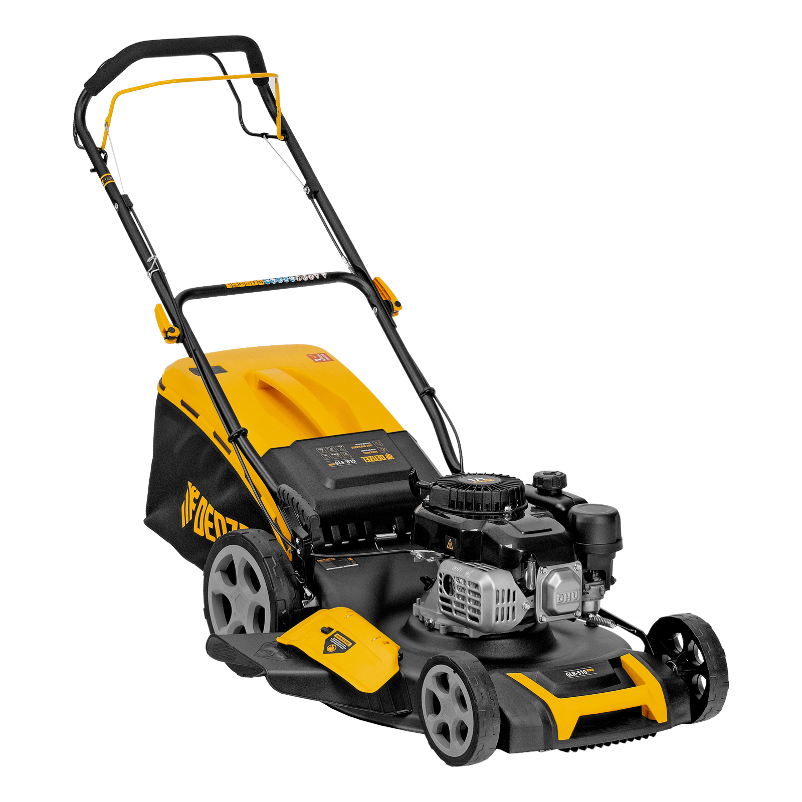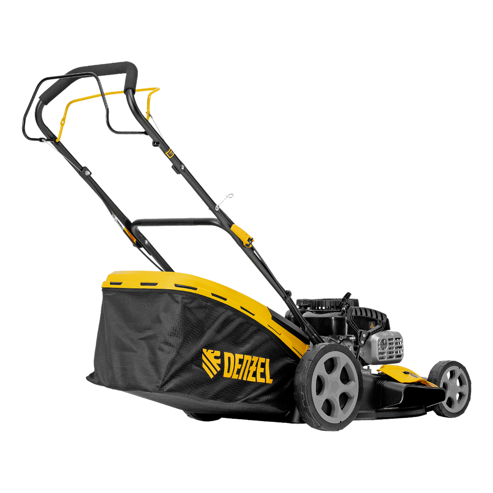 Бензиновая газонокосилка Denzel GLR-510SP-ZS 58825 с приводом на колеса и травосборником вместимостью 65 л, с надежным и экономичным 4-тактным двигателем объемом 171 см3, обеспечивает ширину прохода 51 см. Предназначена для стрижки газонов и скашивания травы в саду, будет полезна для ухода за дачным участком или придомовой территорией большой площади. Высота скашивания легко регулируется одним рычагом в диапазоне 25-70 мм (предусмотрено 8 уровней).