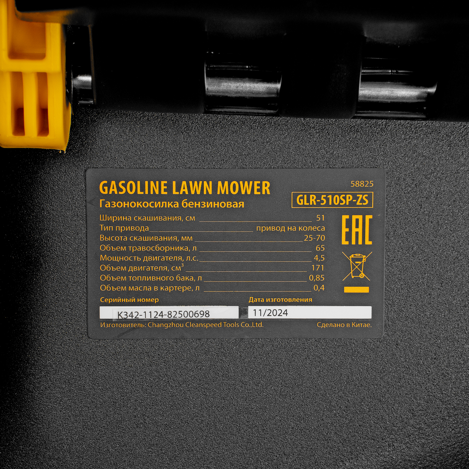 - Комбинированный травосборник на 65 л — сочетание пластика и мягкой ткани делает его легким и простым в уходе, трава в нем не перегнивает.