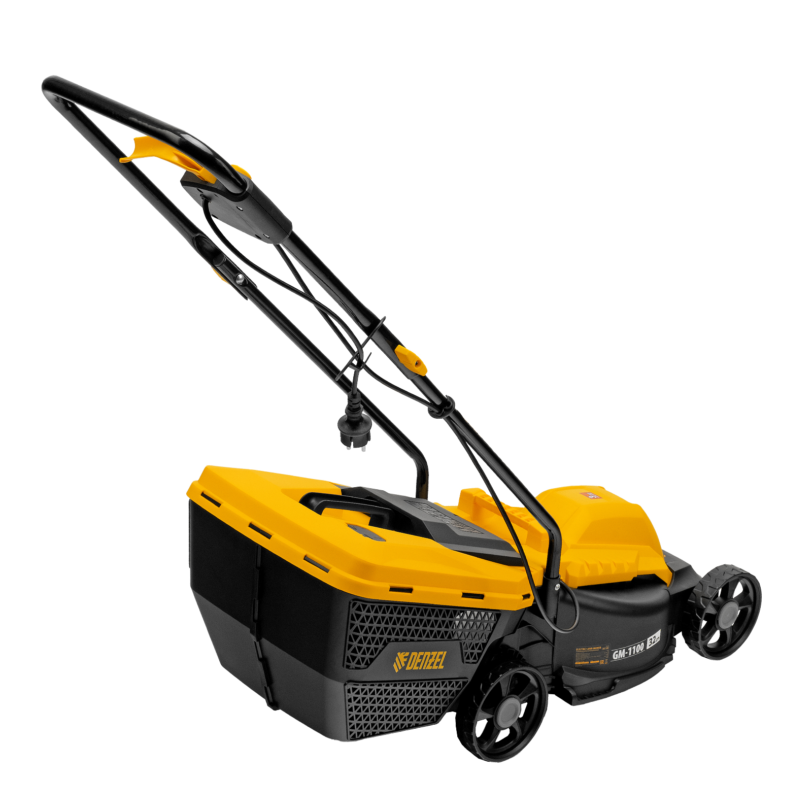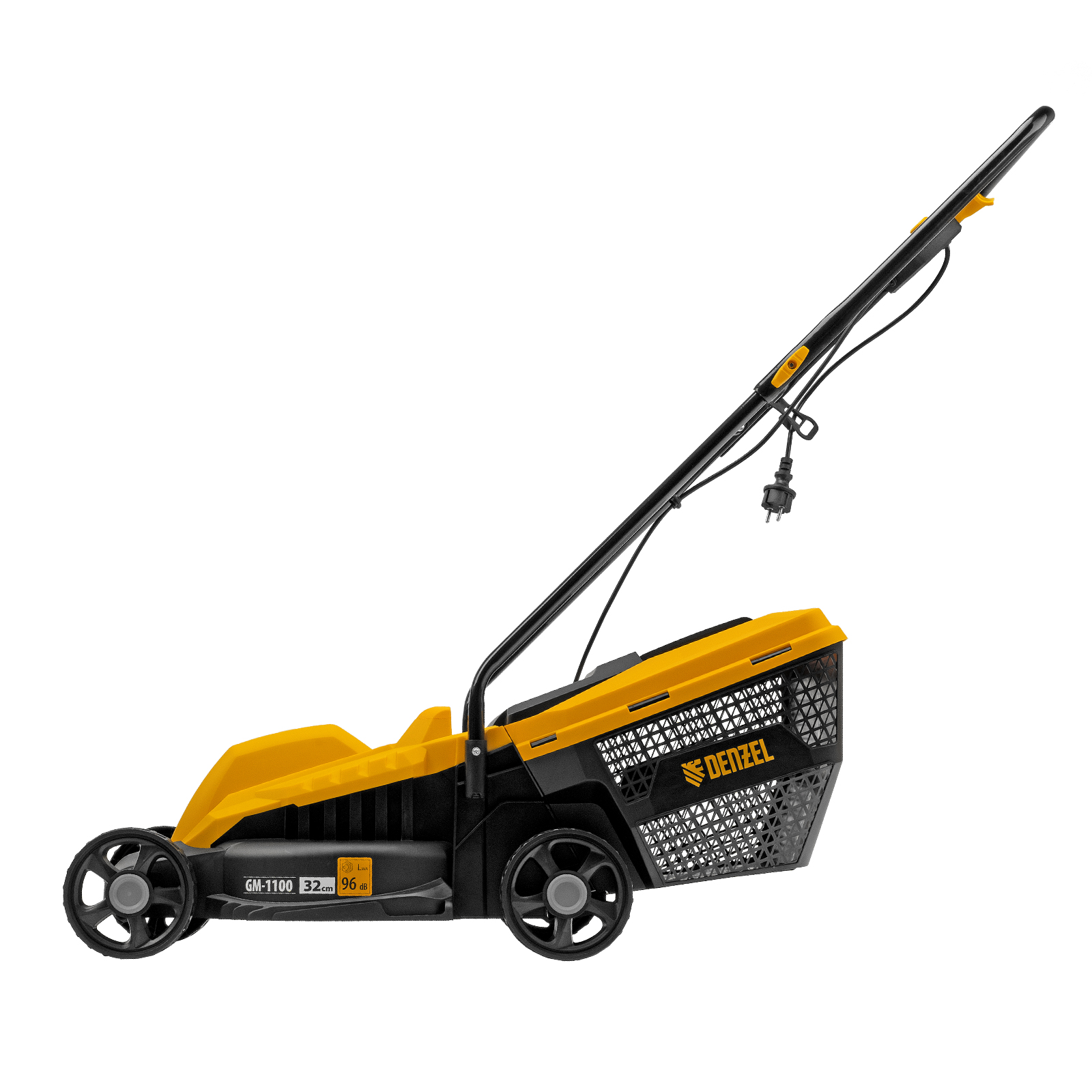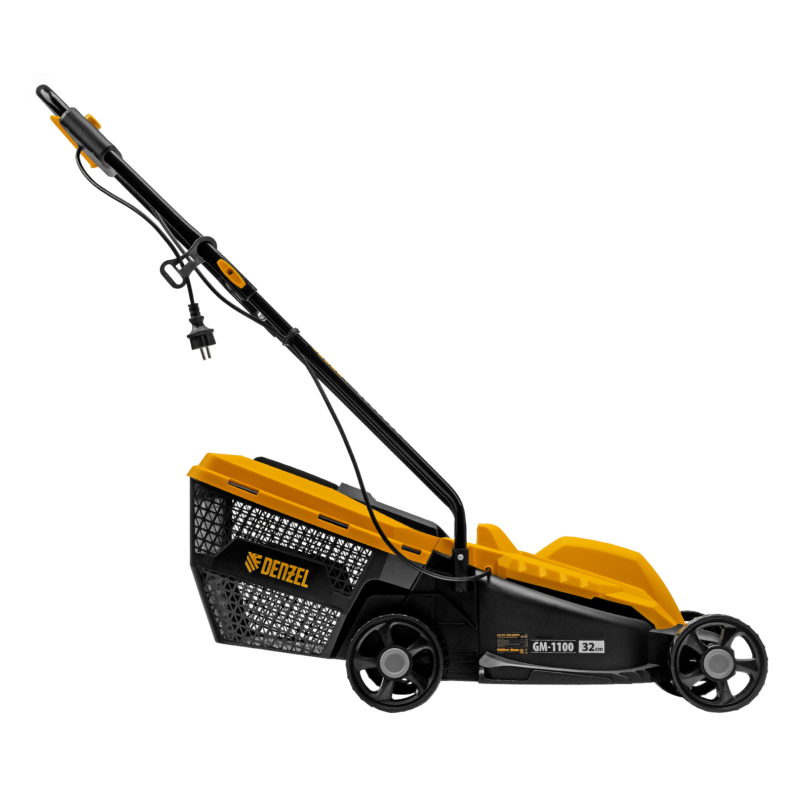 Газонокосилка электрическая Denzel GM-1100 96626 мощностью 1100 Вт, с травосборником объемом 30 л и 3 уровнями скашивания, обеспечивает ширину прохода 32 см и предназначена для стрижки газонов, кошения травы в саду и на небольшом приусадебном участке. Высота скашивания устанавливается на уровне 30, 50 или 70 мм в зависимости от типа газона. Газонокосилка проста в управлении и обслуживании, с ней легко справится неопытный пользователь.