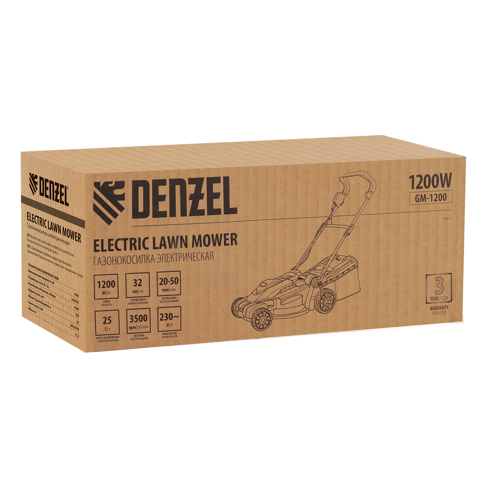 Электрическая газонокосилка Denzel GM-1200 96615 с 3 уровнями скашивания и травосборником на 25 л — маневренная и простая в управлении техника, обеспечивающая ширину скашивания 32 см. Быстро справляется с работой на площади примерно 2 сотки, помогает оформлять аккуратный газон на дачном участке. Для достижения наилучшего результата предусмотрено 3 уровня скашивания травы: 20 мм, 35 мм и 50 мм.,Косилка не требует особых навыков и сложного технического обслуживания — не нужно менять масло и свечи, заливать и сливать бензин, долго заводить и прогревать двигатель. Электродвигатель мощностью 1200 Вт работает тихо и без вредных выхлопов, он экологичен и экономичен.