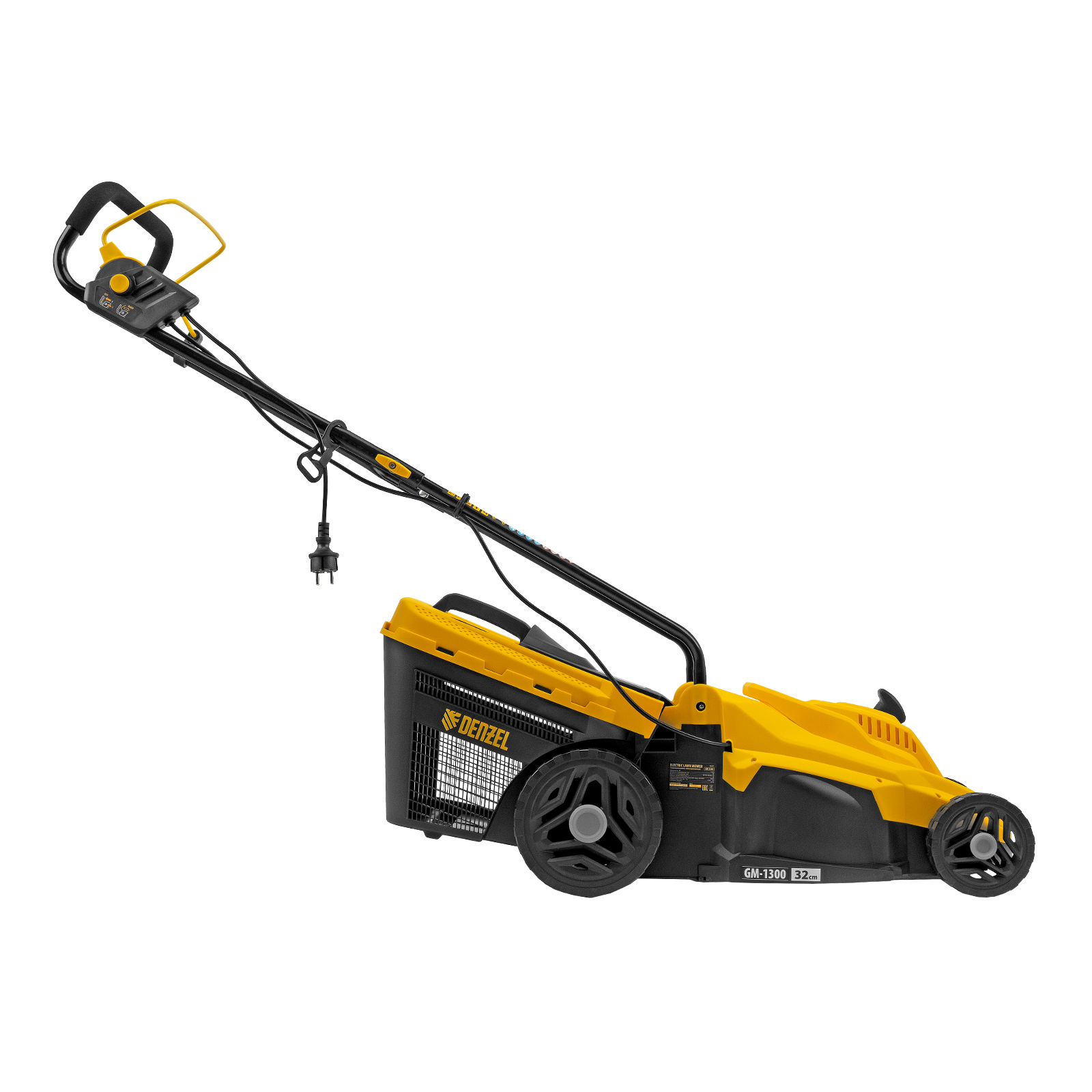 Газонокосилка электрическая Denzel GM-1300 96627 мощностью 1300 Вт, с травосборником объемом 35 л и 5 уровнями скашивания, обеспечивает ширину прохода 32 см и предназначена для стрижки газонов, кошения травы в саду и на небольшом приусадебном участке. Предусмотрена 5-ступенчатая регулировка высоты скашивания (от 30 до 70 мм) в зависимости от типа газона. Газонокосилка проста в управлении и обслуживании, с ней легко справится неопытный пользователь.