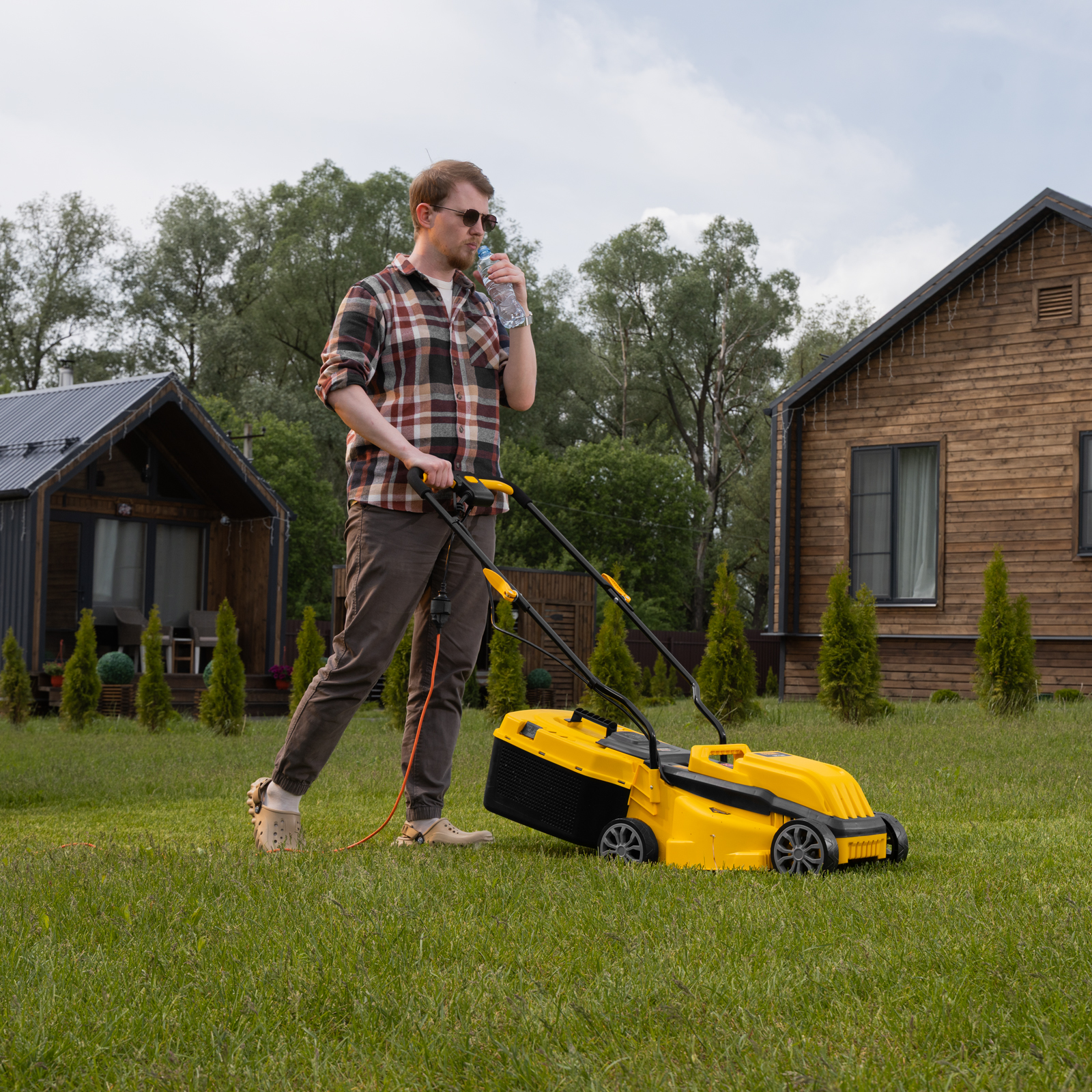 - Комфортная транспортировка — газонокосилку удобно перемещать при помощи специальной рукоятки.