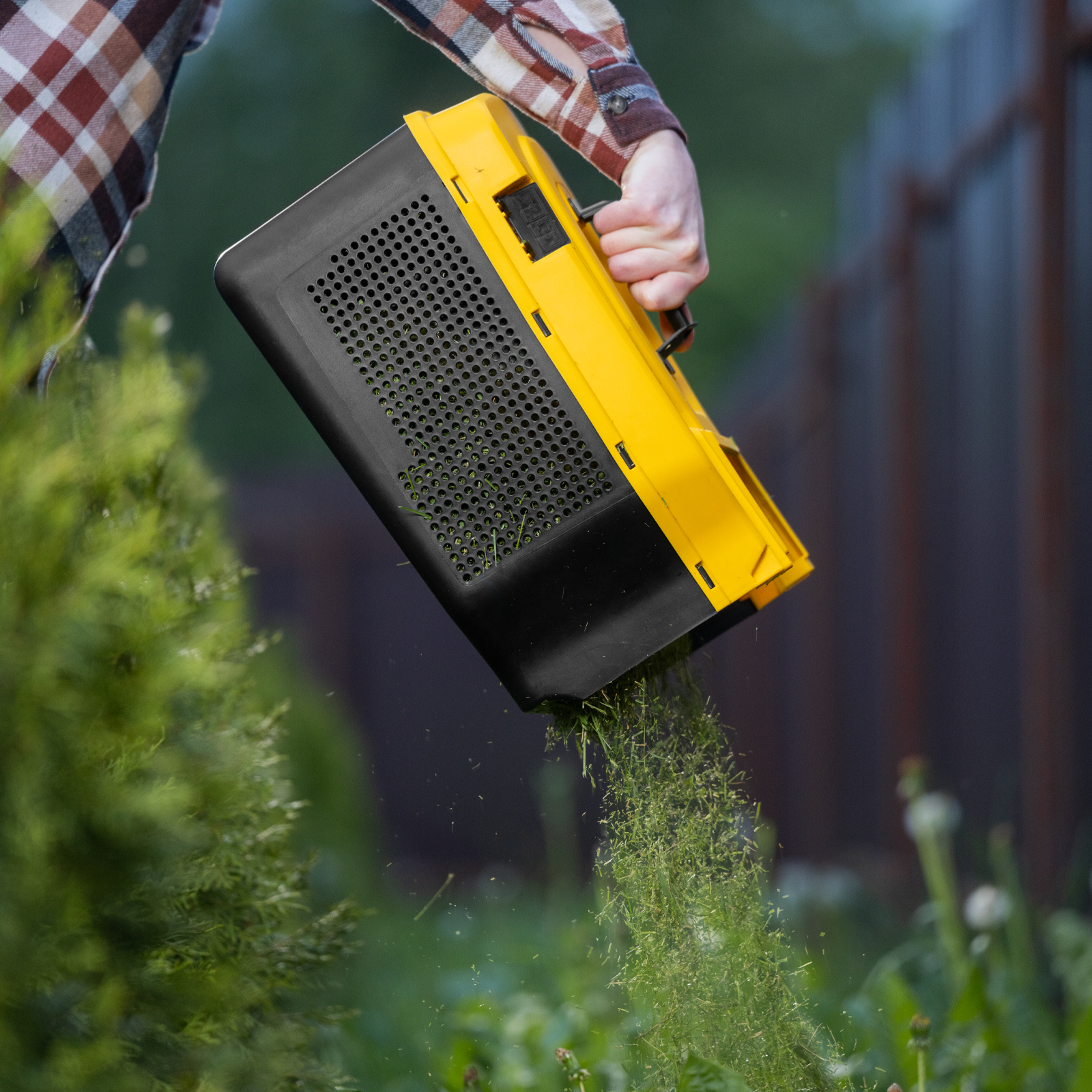 - Простое обслуживание — пластиковый травосборник удобно опустошать и очищать.