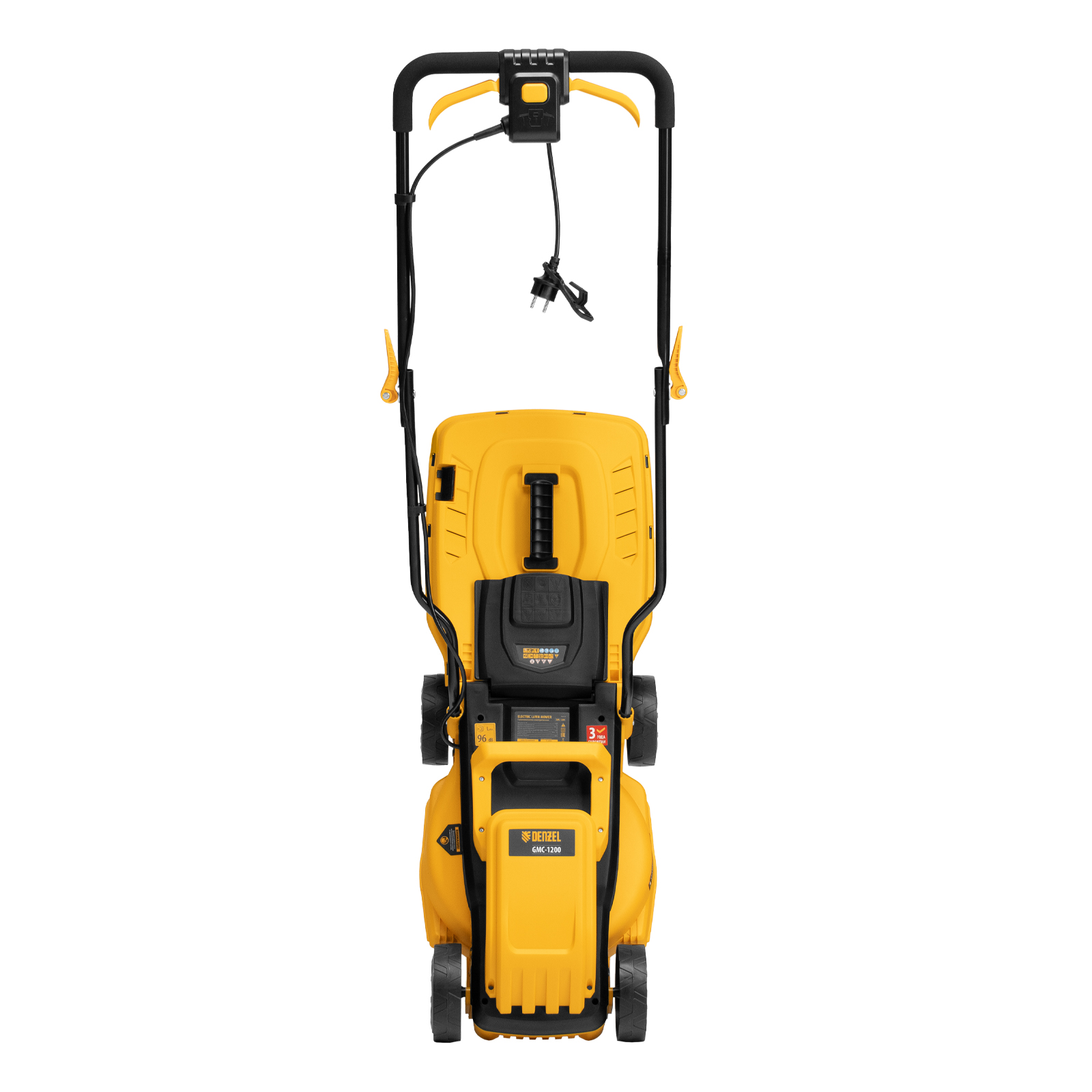 Электрическая газонокосилка Denzel GMC-1200 96628 мощностью 1200 Вт, с травосборником объемом 30 л, обеспечивает ширину скашивания 32 см и позволяет регулировать высоту скашивания — предусмотрено 3 уровня. Предназначена для ухода за газоном и садом, оптимальна для бытового применения. Можно выбрать тип травяного покрытия, установив 1 из 3 уровней высоты в диапазоне от 25 до 65 мм. Газонокосилка пригодится владельцам небольших дачных участков.