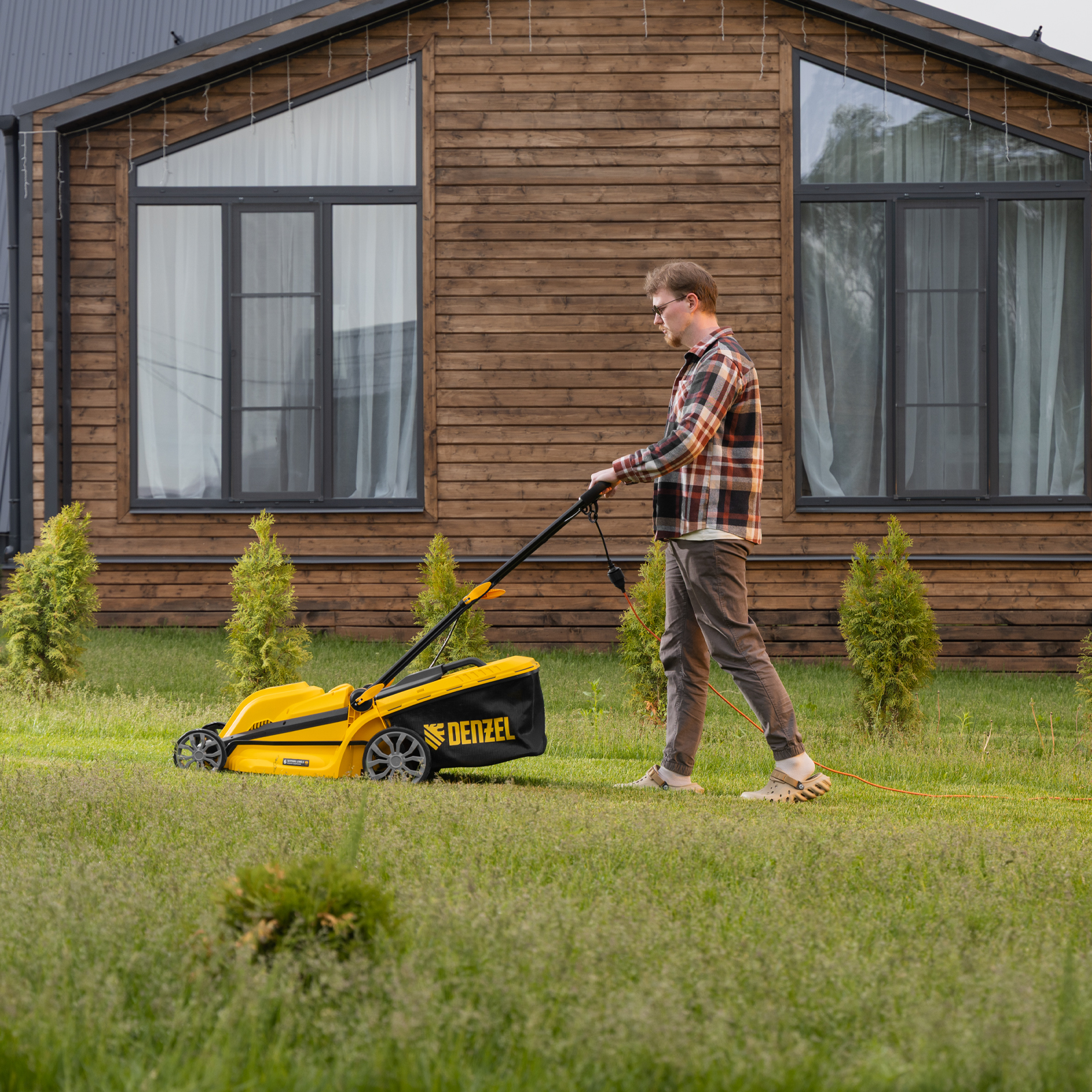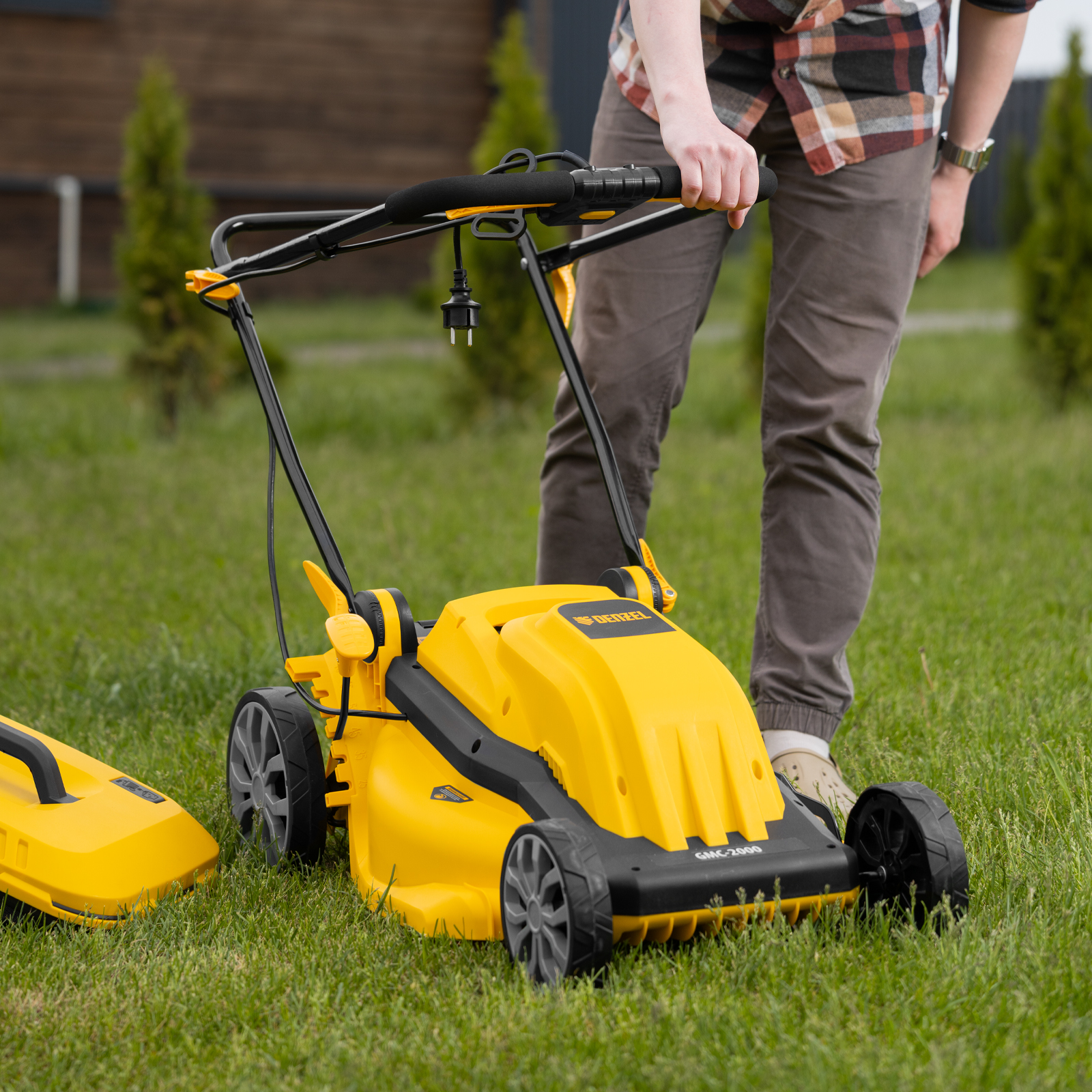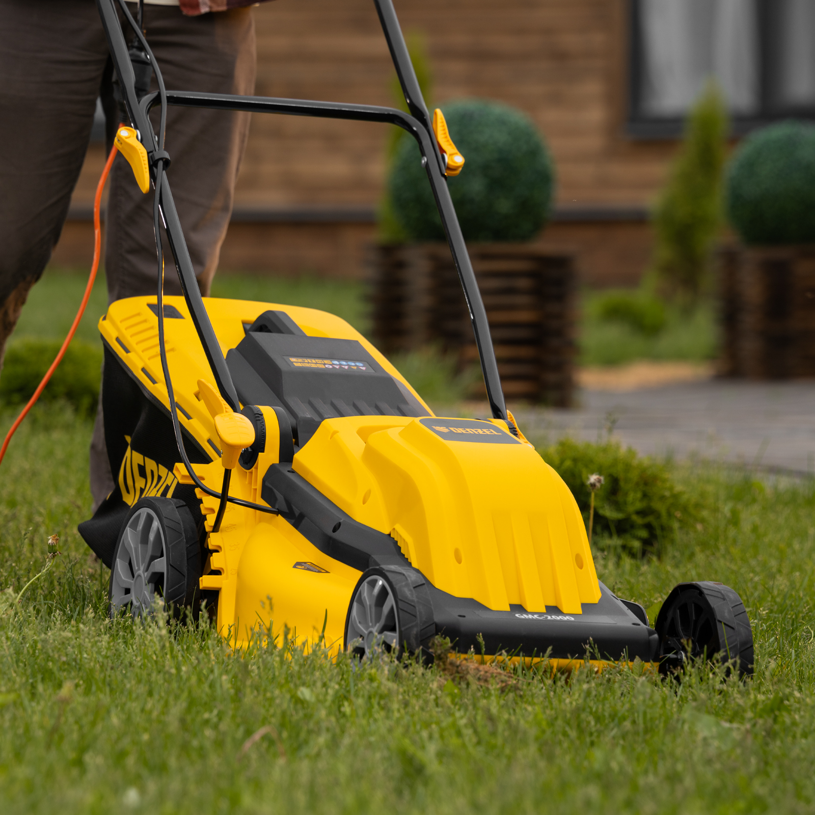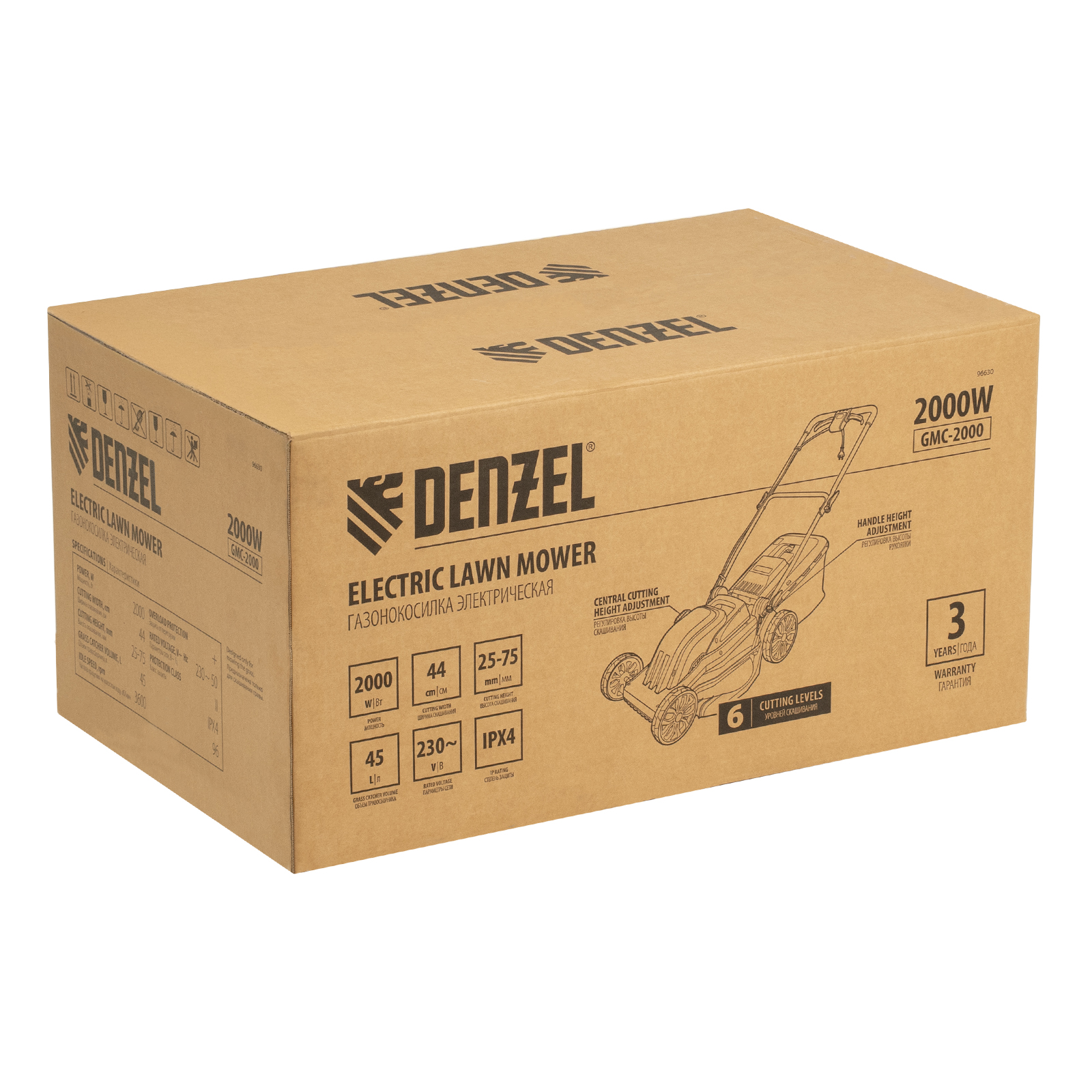 Электрическая газонокосилка Denzel GMC-2000 96630 мощностью 2000 Вт, с травосборником объемом 45 л, обеспечивает ширину скашивания 44 см и позволяет регулировать высоту скашивания — предусмотрено 6 уровней. Предназначена для ухода за газоном и садом, оптимальна для бытового применения. Можно выбрать тип травяного покрытия, установив 1 из 6 уровней высоты в диапазоне от 25 до 75 мм. Газонокосилка пригодится владельцам небольших дачных участков.