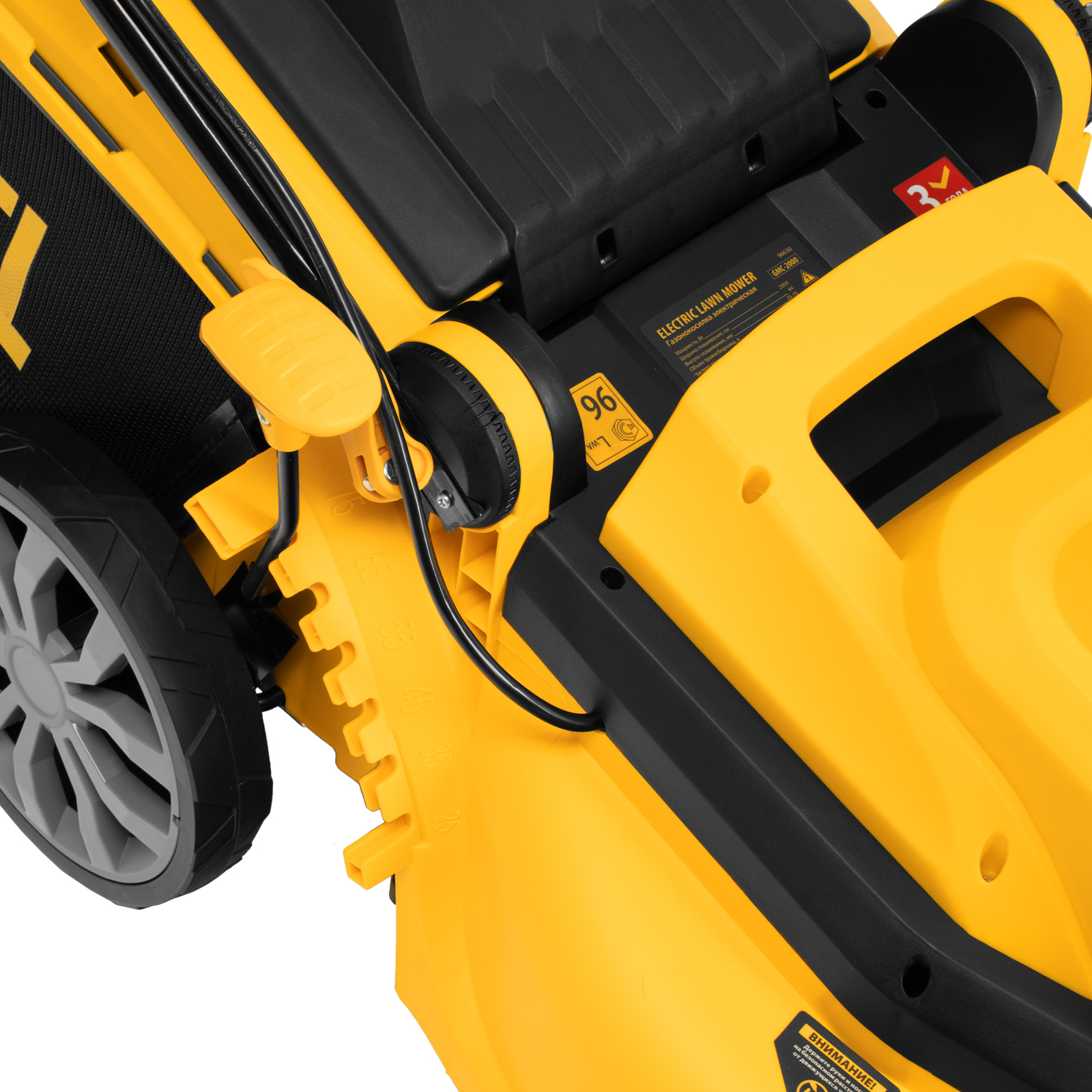 - Гарантия 3 года — высокое качество газонокосилки подтверждено производителем.