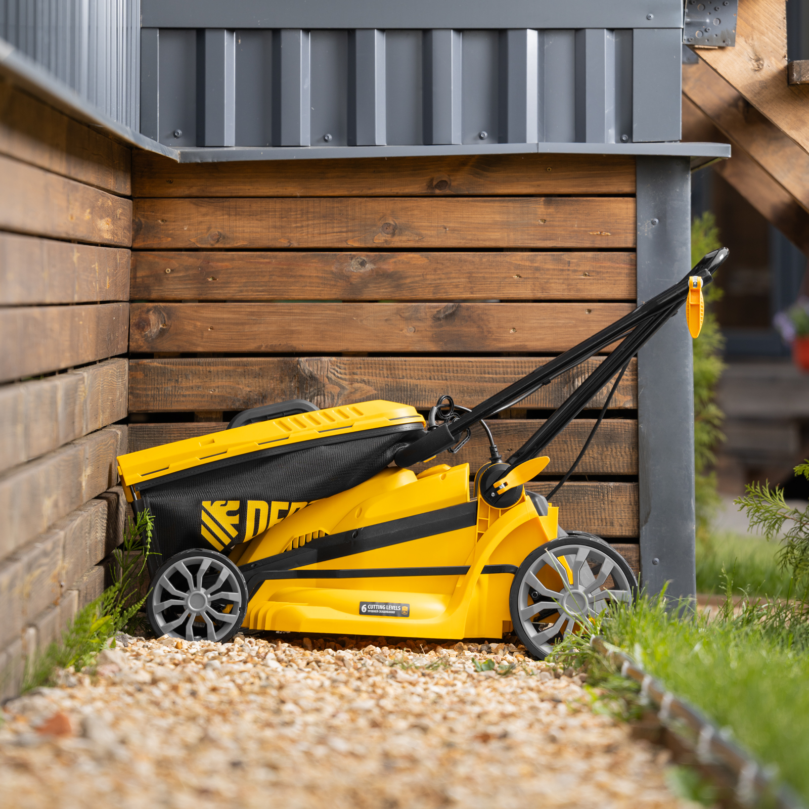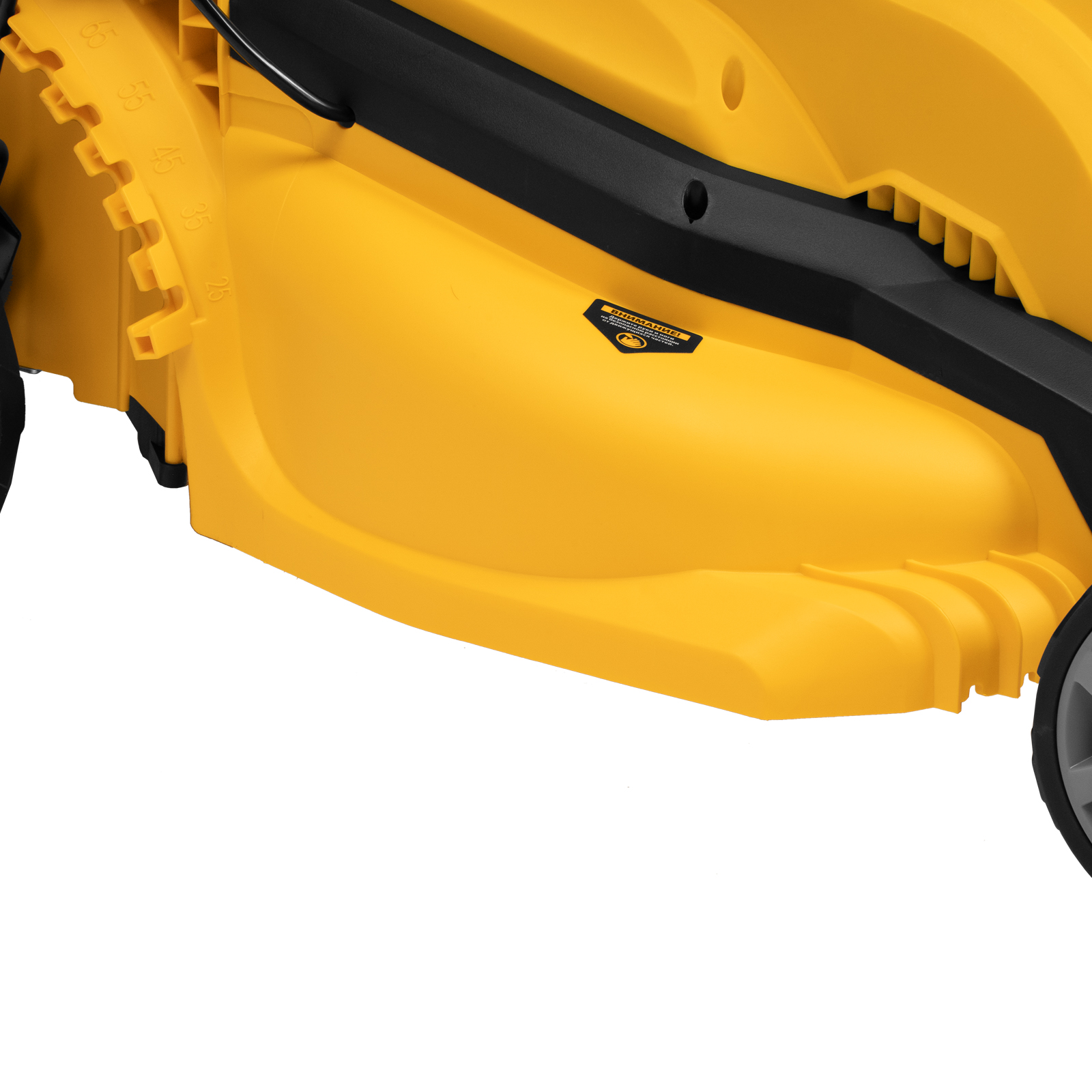 - Комфортная транспортировка — газонокосилку удобно перемещать при помощи специальной рукоятки.