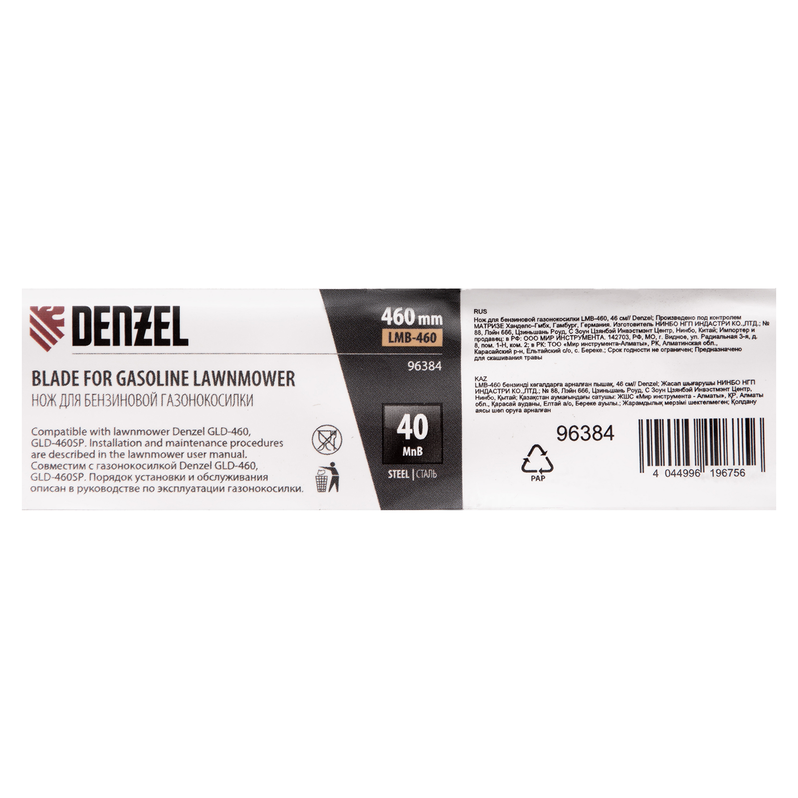 Нож Denzel 96384 длиной 46 см — сменный режущий элемент для бензиновых газонокосилок GLD-460 и GLD-460SP. Используется для скашивания травы на дачных газонах, кортах, а также для ухода за садовыми и парковыми территориями. Эффективно срезает траву, особенно удобен для работы на небольших участках, например, ограниченных строениями или деревьями. Нож для газонокосилки пригодится владельцам дачных участков и работникам коммунальных служб.