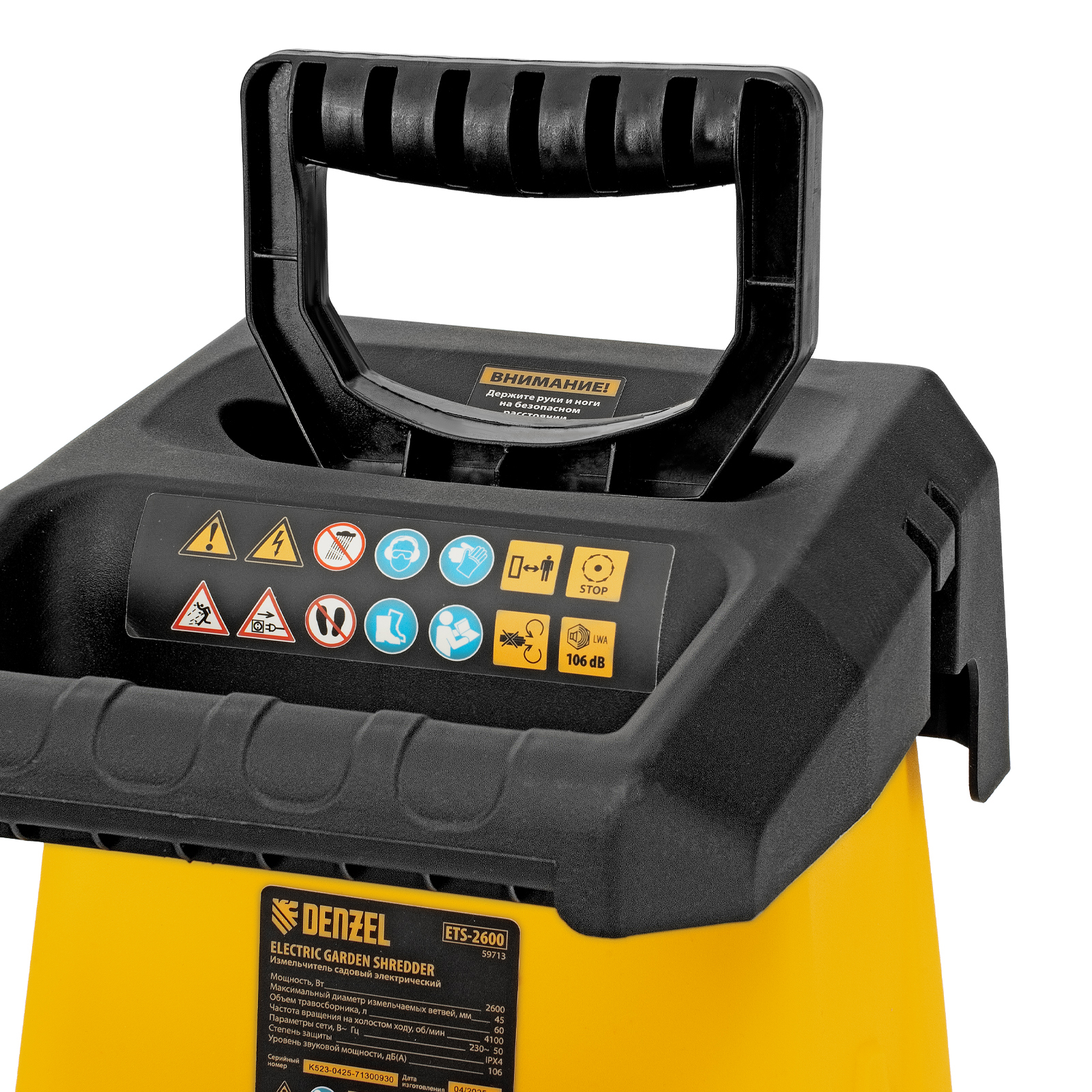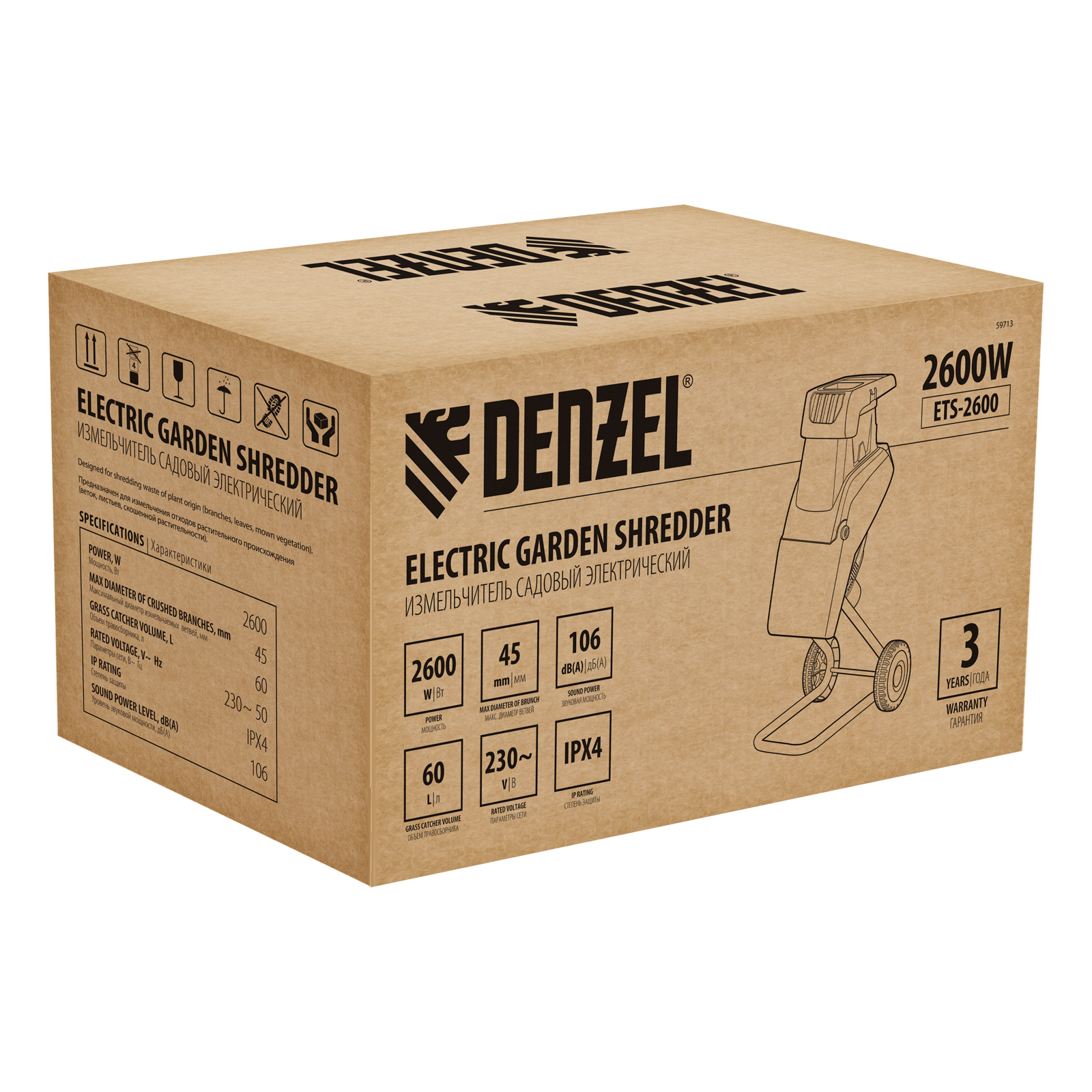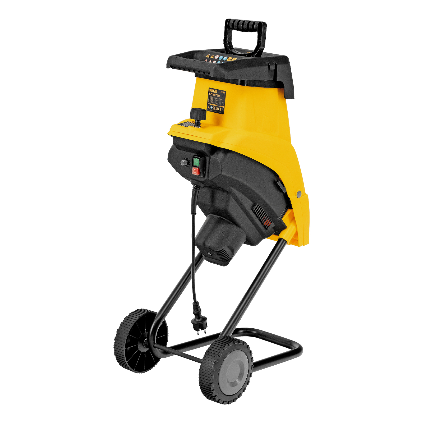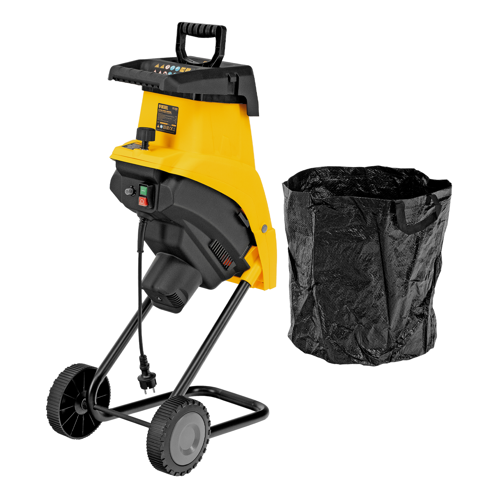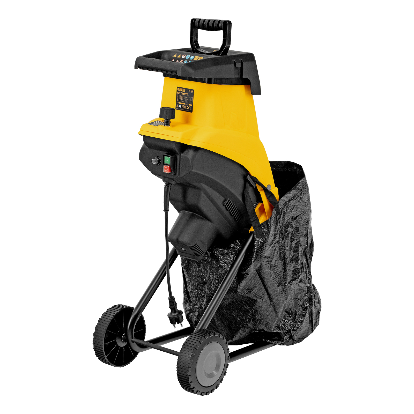 Садовый электрический измельчитель Denzel ETS-2600 59713 мощностью 2600 Вт предназначен для переработки веток диаметром до 45 мм. Полученную щепу можно использовать в качестве мульчи или сырья для компоста. Измельченные ветки попадают в мягкую подвесную сумку-травосборник объемом 60 л, которую не нужно часто опустошать. Мощный двигатель обеспечивает частоту вращения на холостом ходу 4500 об/мин, что позволяет быстро и эффективно справляться с работой. Измельчитель будет полезен на дачном участке.