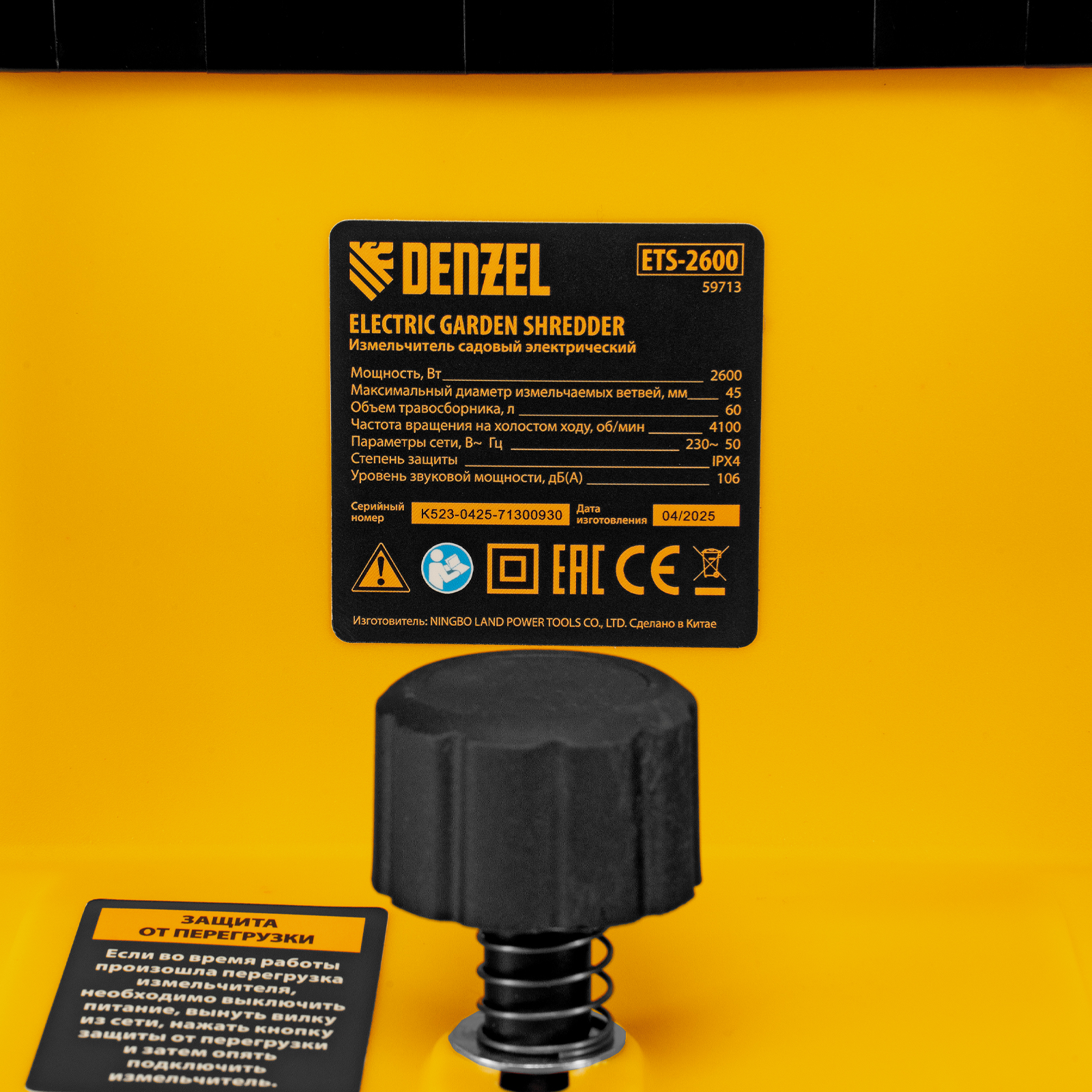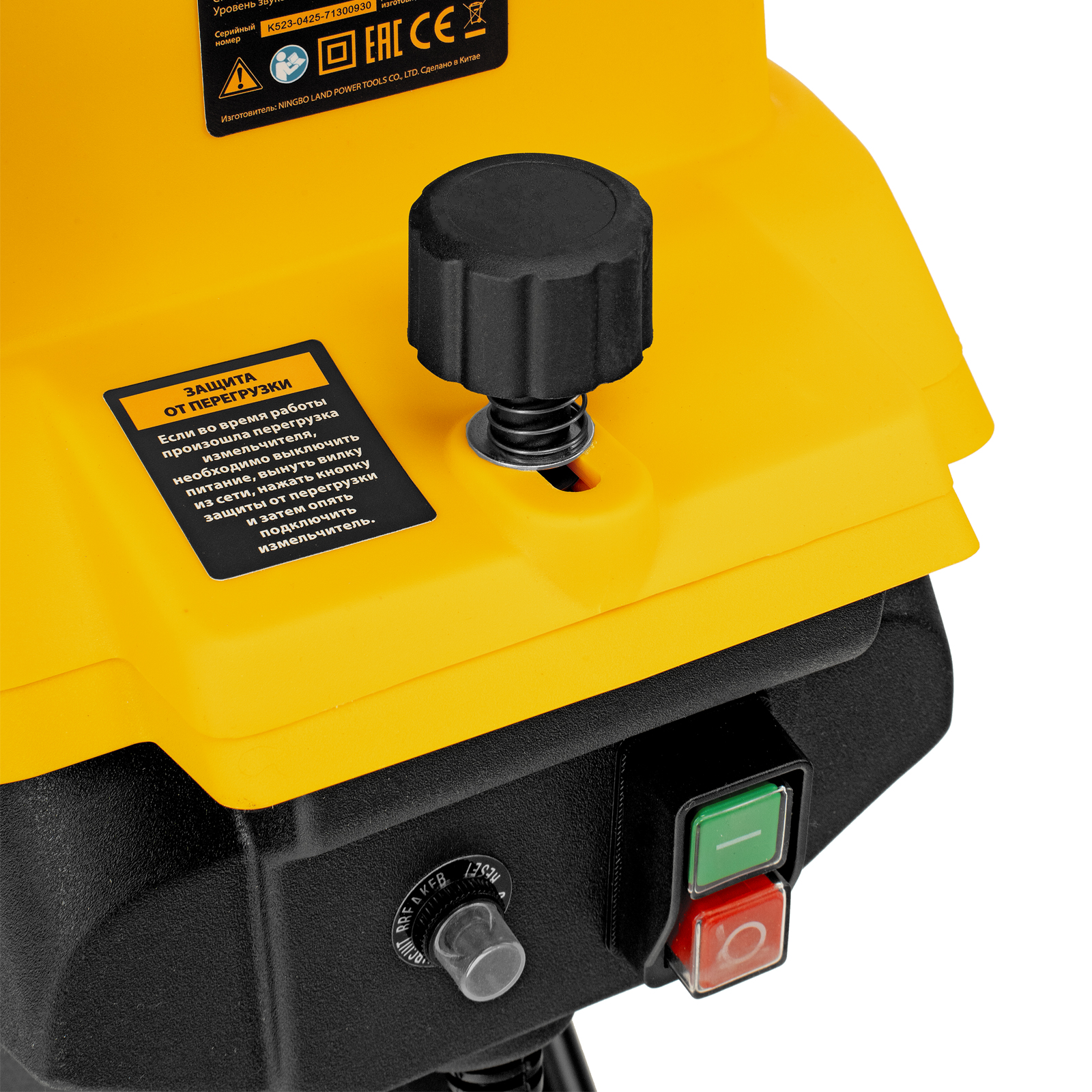 - Защита двигателя — в случае перегрузки срабатывает предохранитель и измельчитель отключается для предотвращения поломки.