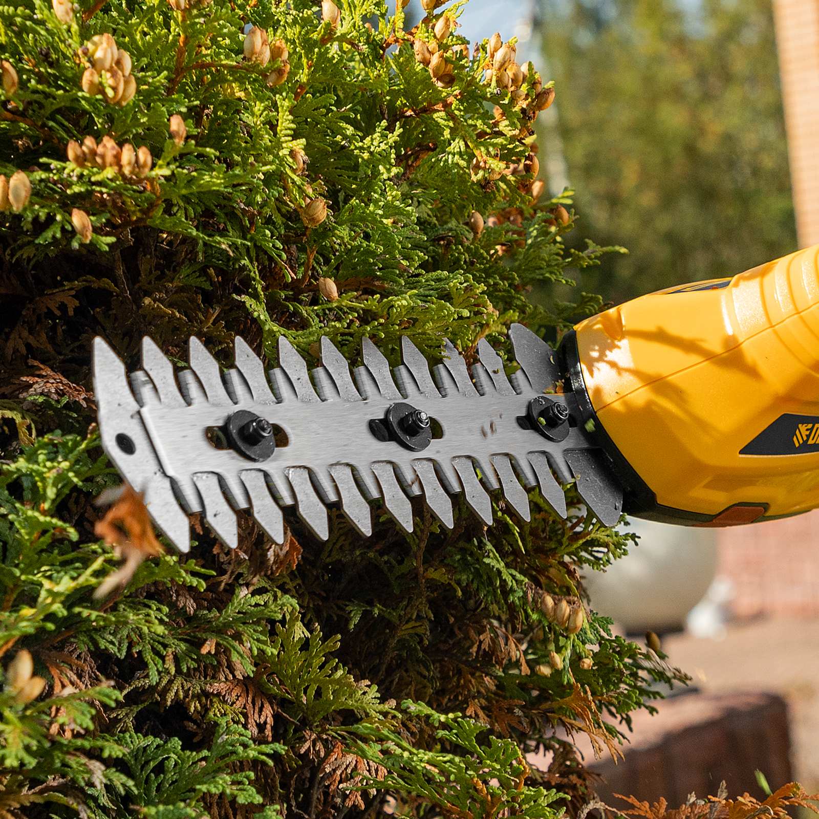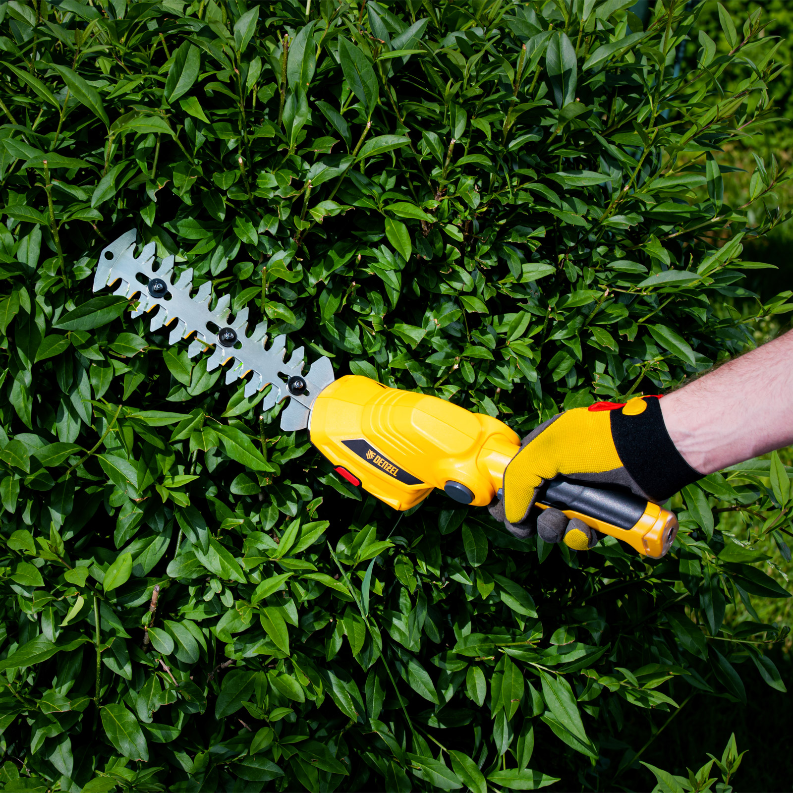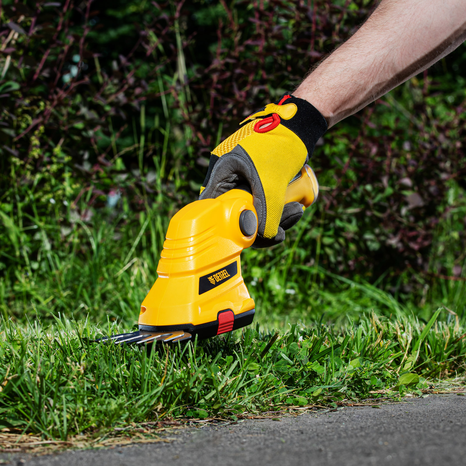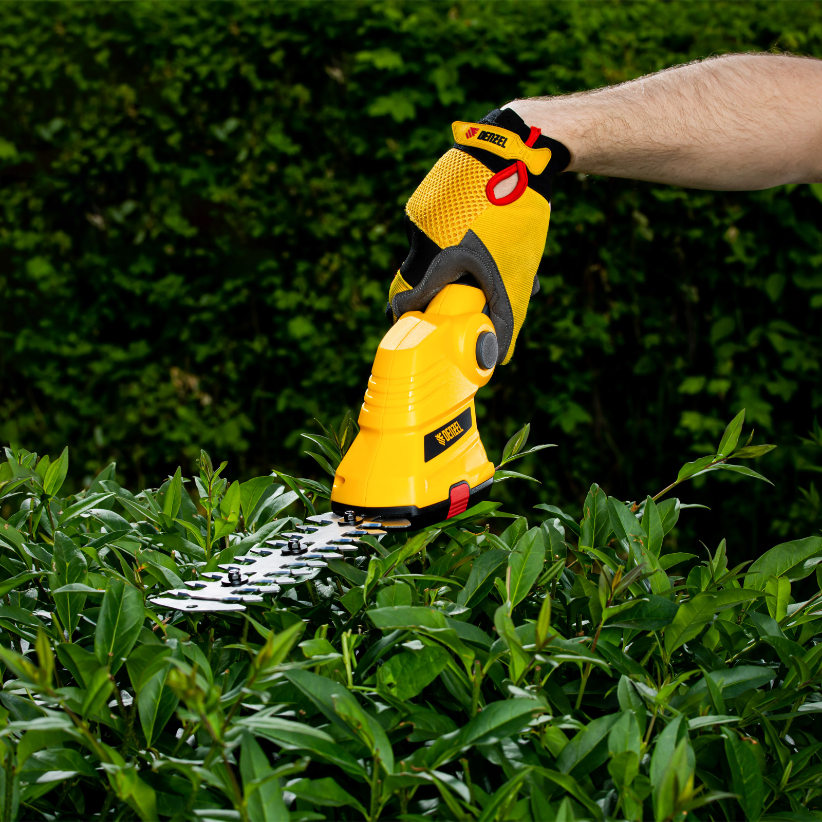 - Долговечность — медная обмотка двигателя устойчива к перегреву и обеспечивает стабильную работу ножниц-кустореза даже при высоких нагрузках.