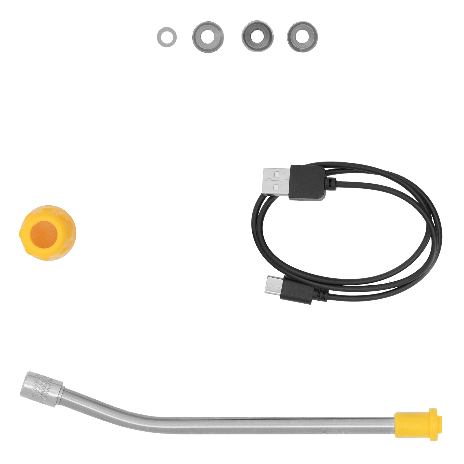 - Обработка отдаленных участков и высоких растений — опрыскиватель поставляется с двумя удлиненными насадками.