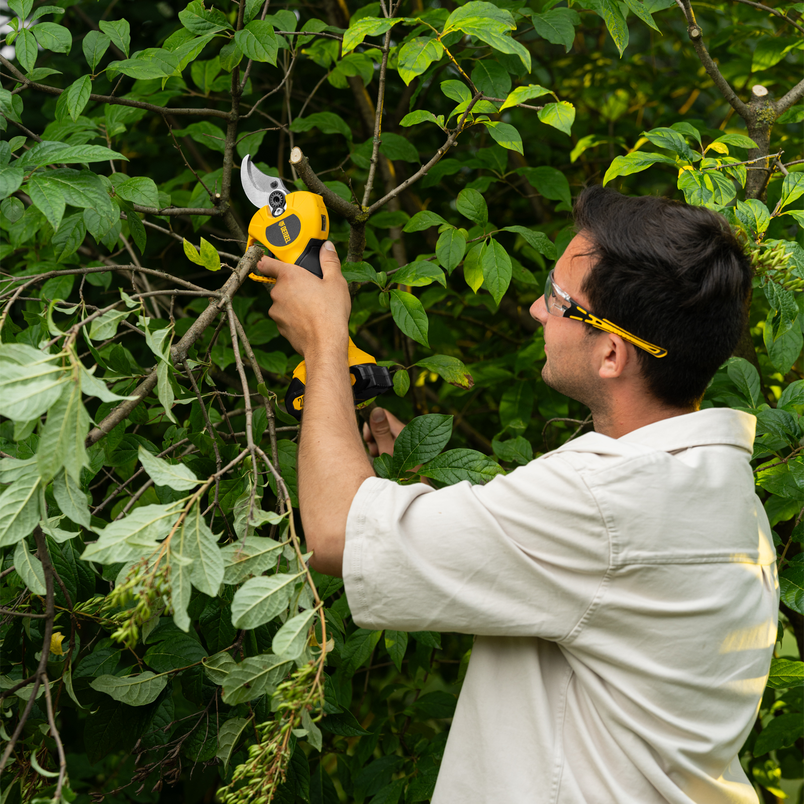 - Высокий ресурс — ячейки аккумулятора 10С с более высоким выходным током позволяют секатору хорошо справляться с большими нагрузками и обеспечивают длительный срок службы.