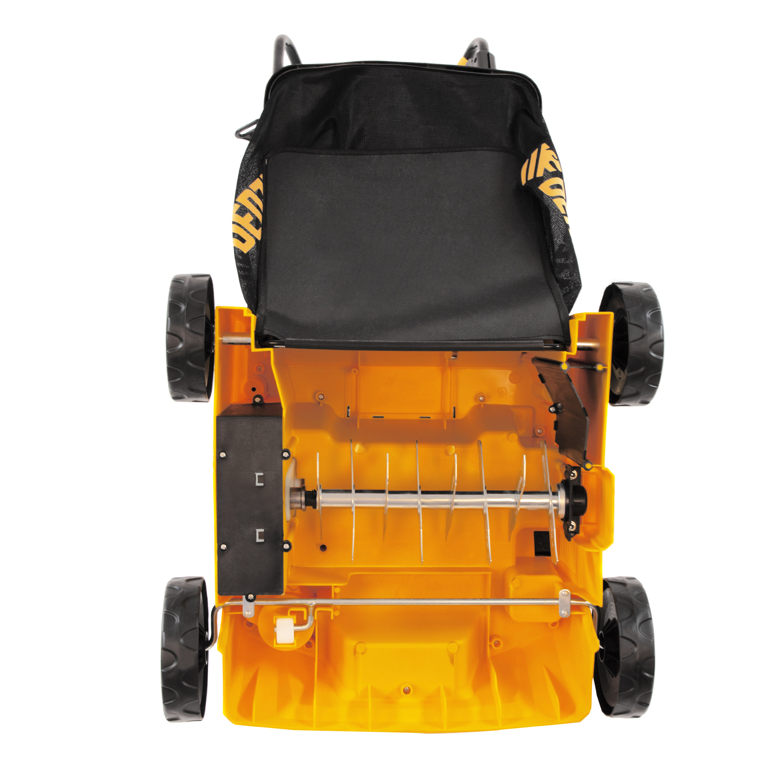 - Маневренность — скарификатор-аэратор весит всего 10 кг, а колеса размером 160/140 см облегчают передвижение по участку со сложным грунтом.