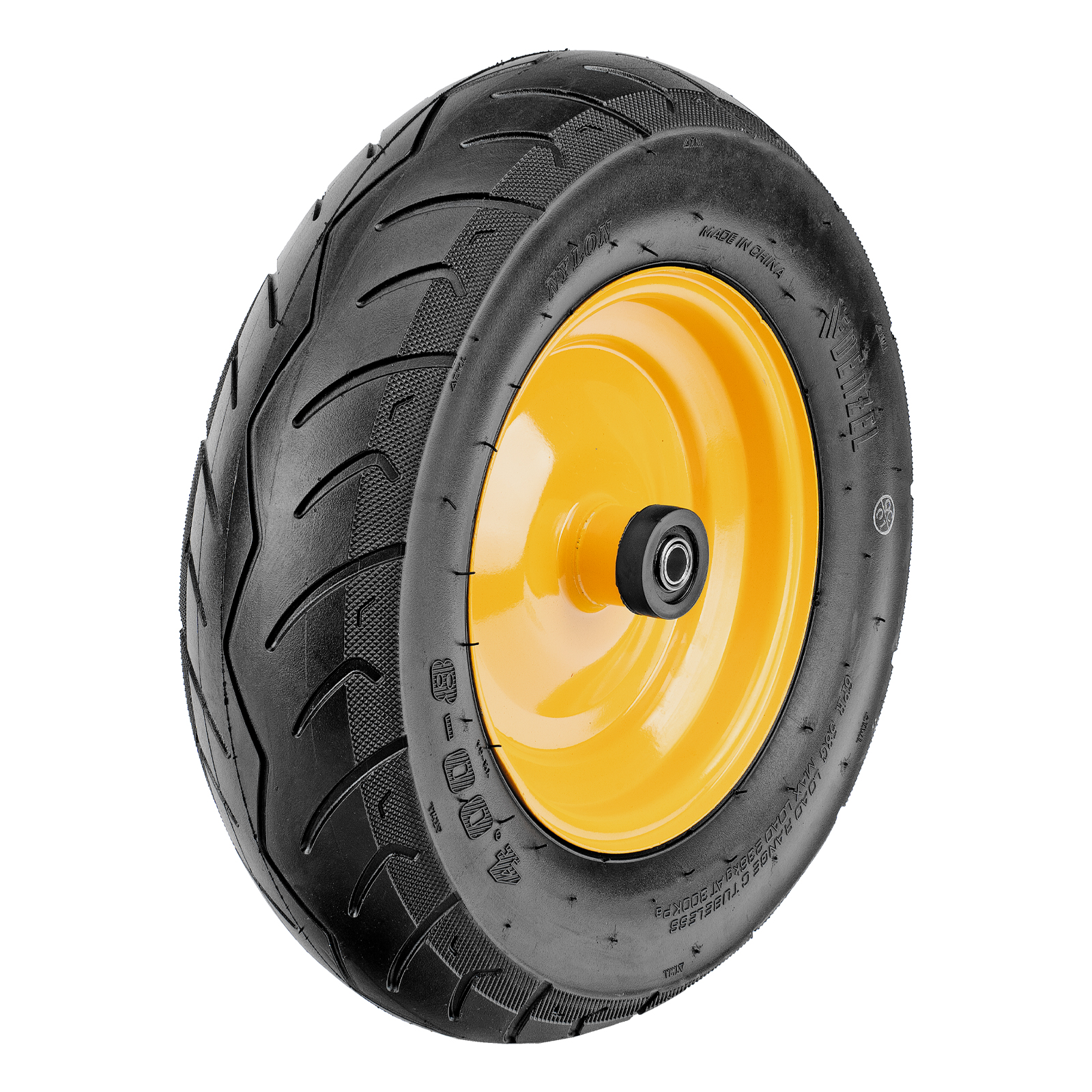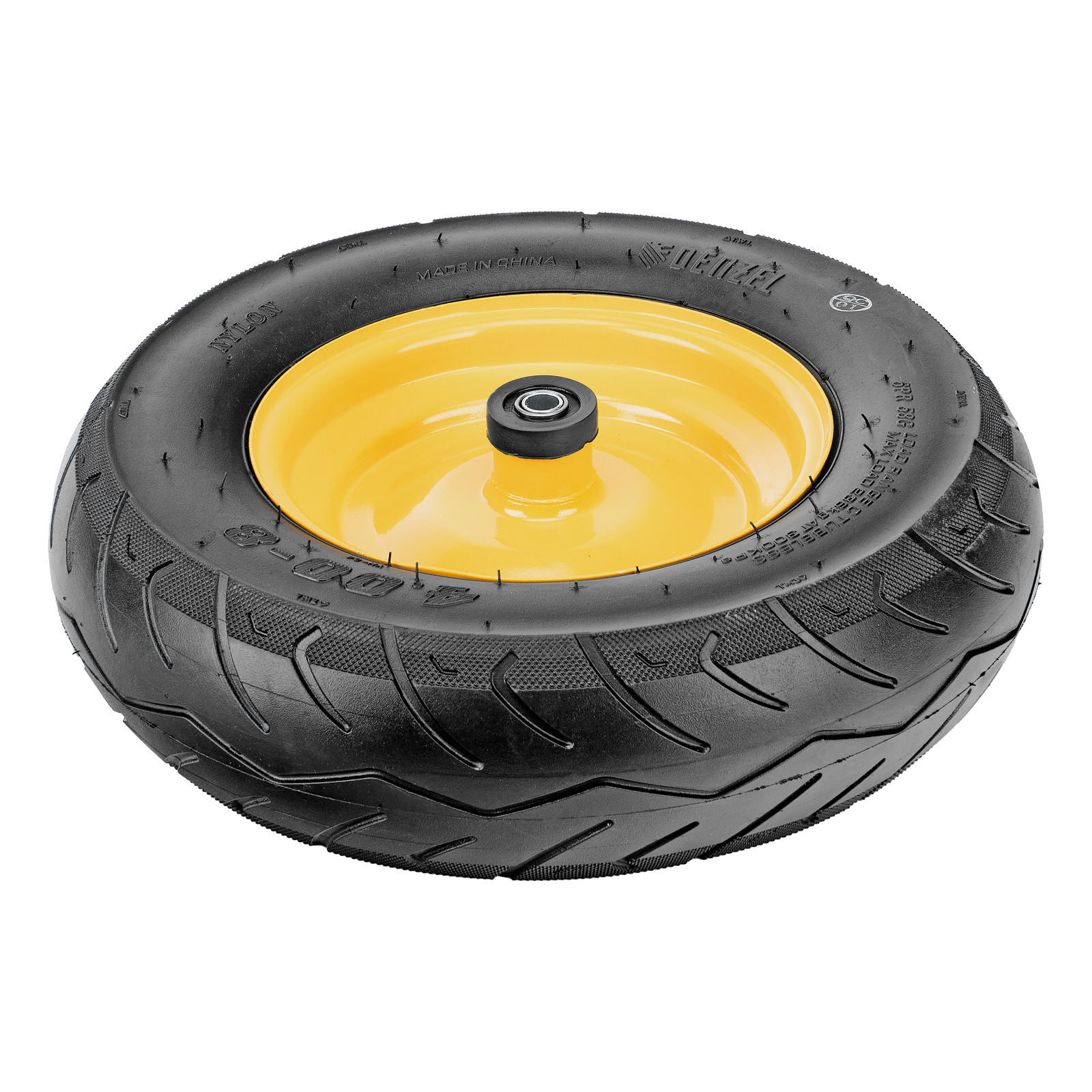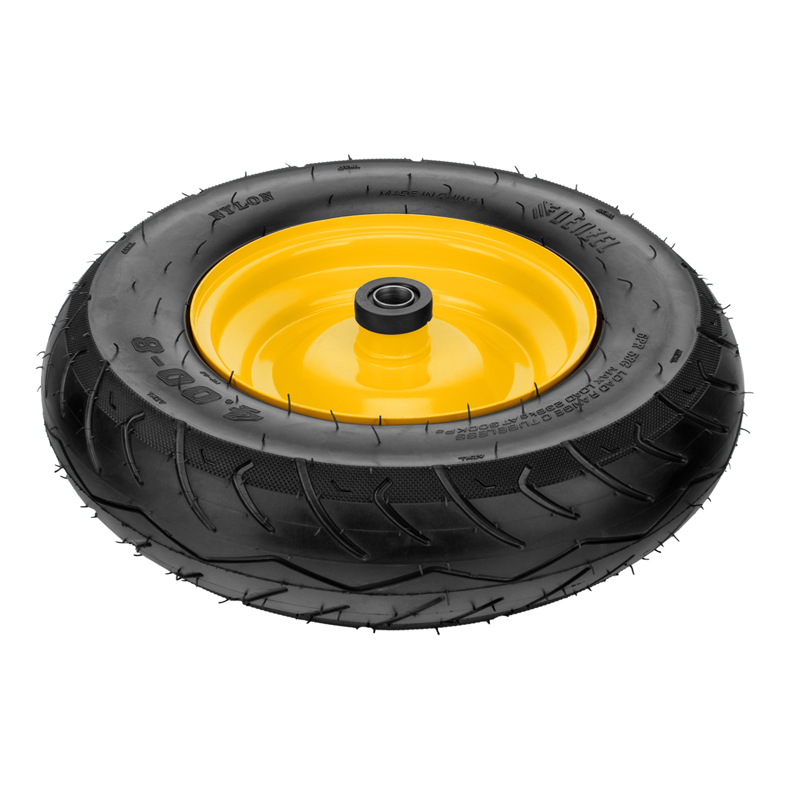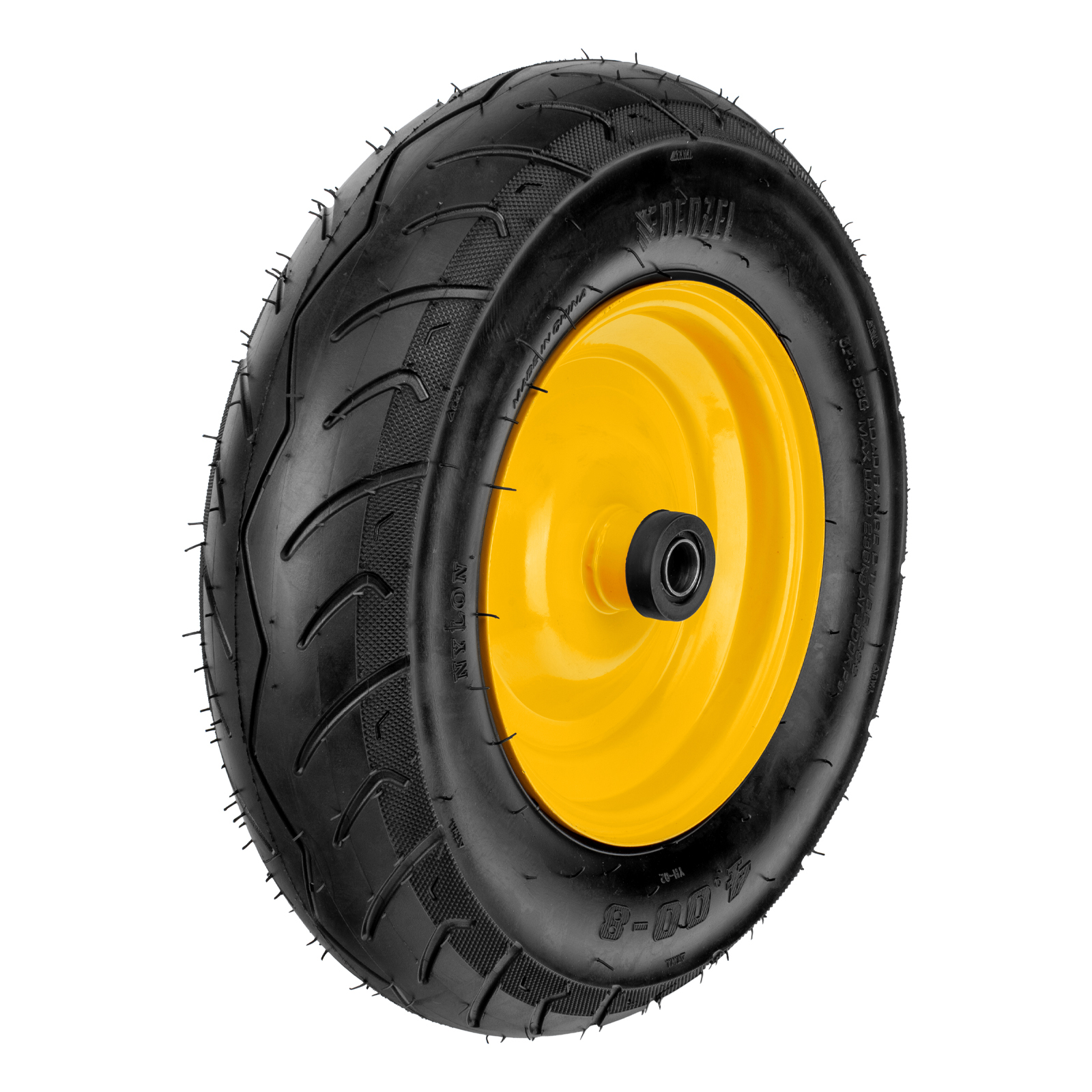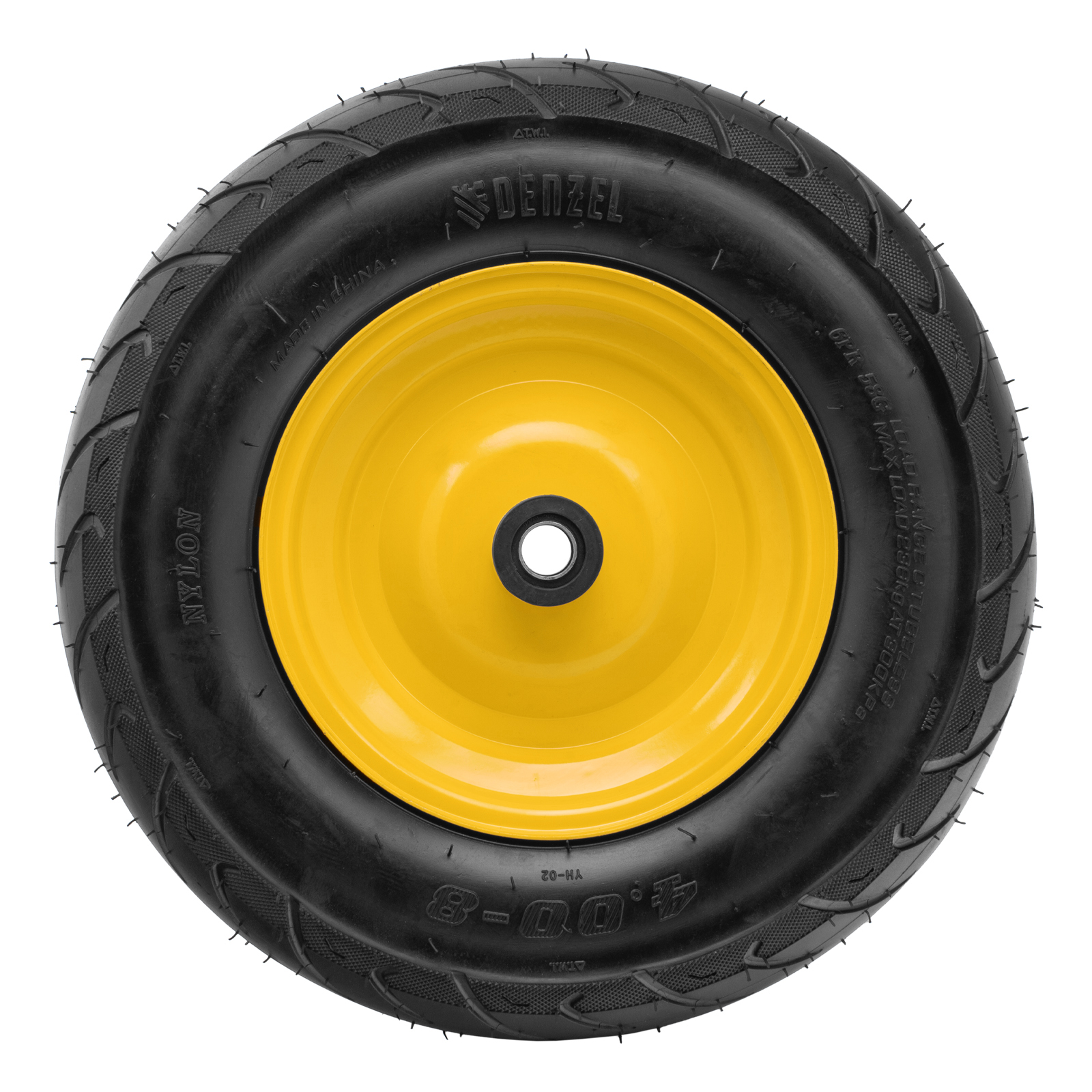 Пневматическое бескамерное колесо Denzel 689535 размером 16 х 4.00-8 и диаметром 410 мм, с длиной оси 104 мм и посадочным диаметром 20 мм, совместимо с тачкой Denzel 689365. Обеспечивает плавный ход и выдерживает высокие нагрузки при перемещении тяжелых грузов, подходит для интенсивного использования.