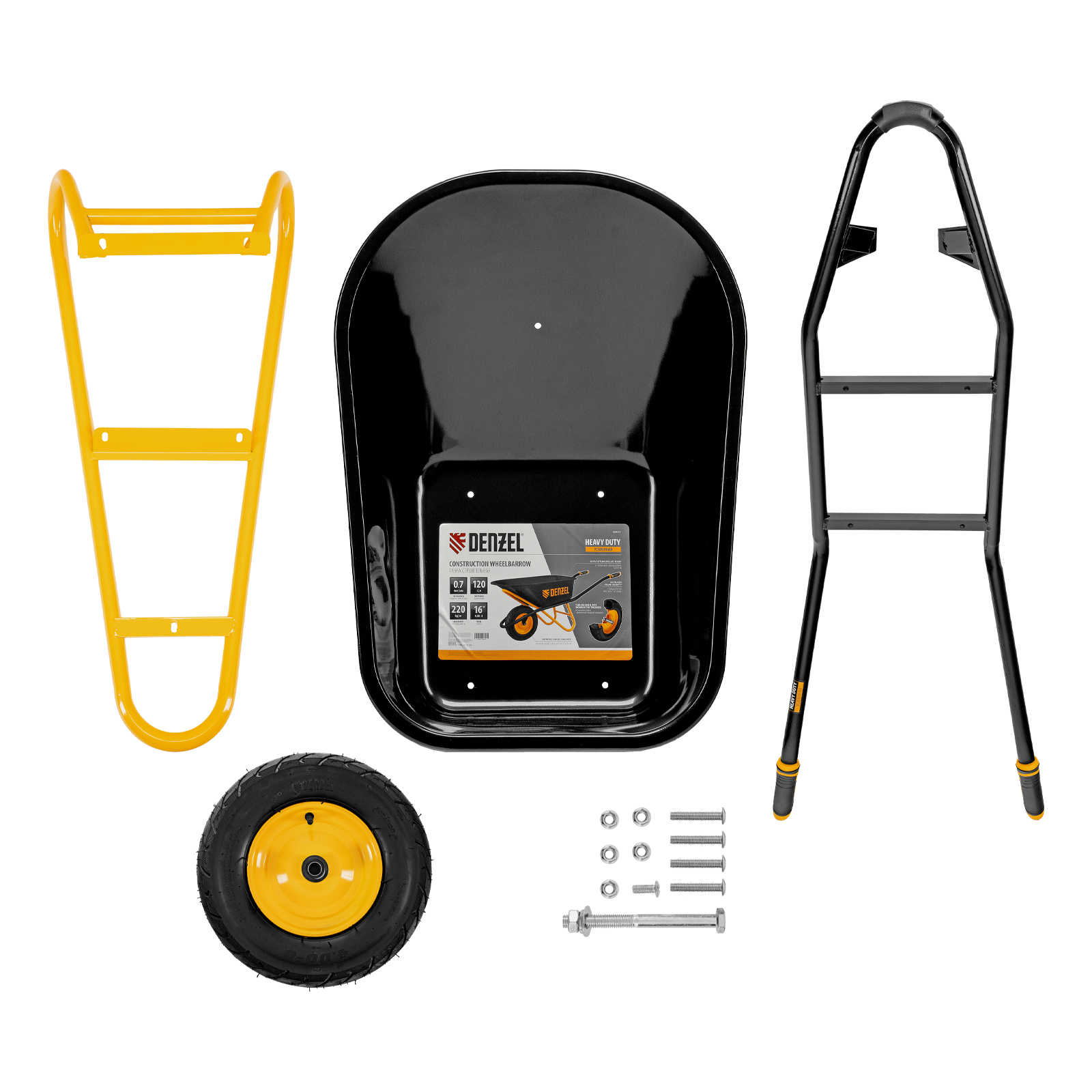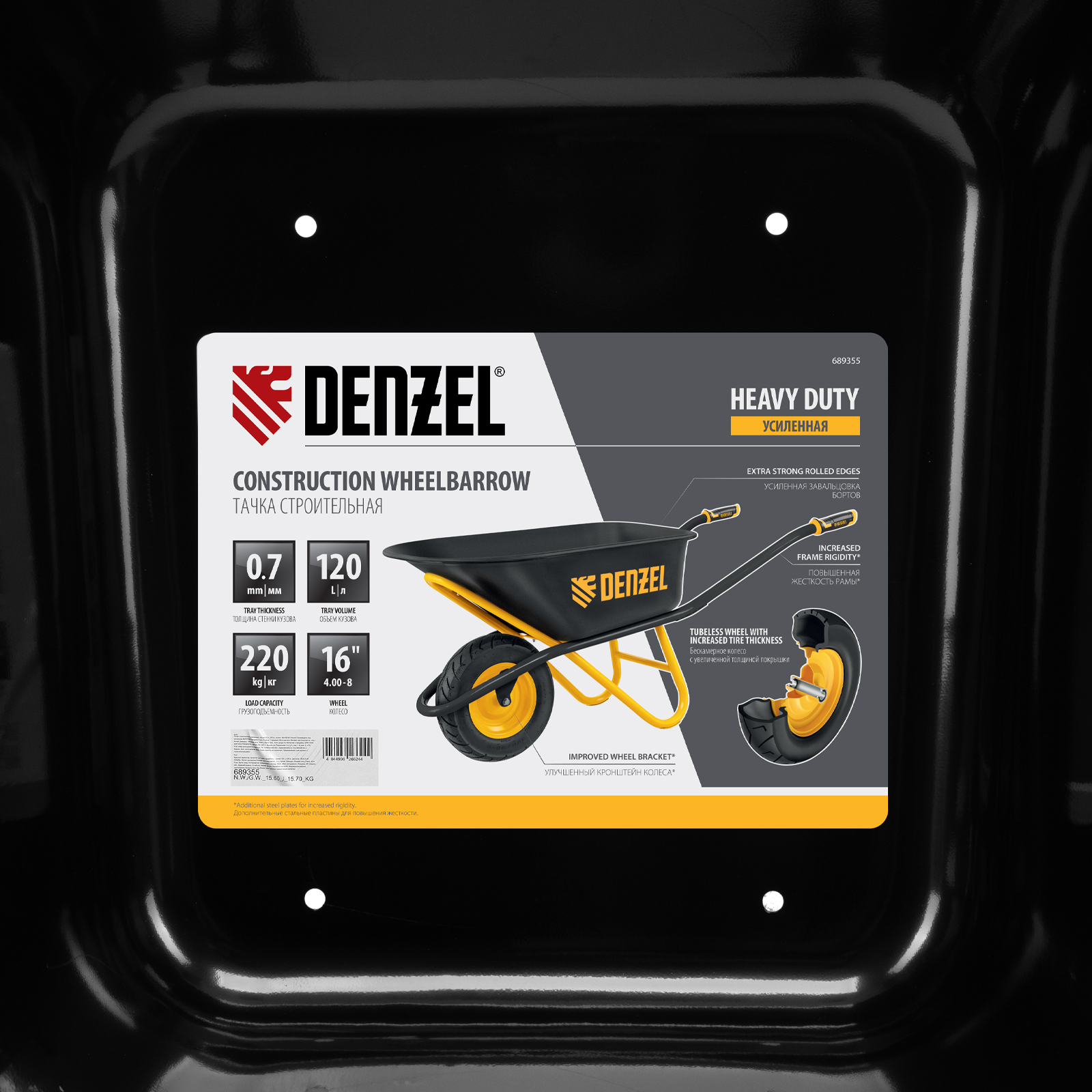 Усиленная строительная тачка Denzel 689355 с кузовом объемом 120 л и колесом размером 16 х 4.00-8 предназначена для транспортировки грузов массой до 220 кг. Позволяет перемещать строительные материалы, грунт, удобрения, садовый мусор, пригодится также во время сбора урожая. Усиленная конструкция выдерживает повышенные нагрузки, грузоподъемность 220 кг оптимальна для эффективного выполнения большого объема работ. Благодаря переднему упору удобно производить фронтальную разгрузку. Тачка незаменима на строительной площадке и на приусадебном участке, рекомендована для профессионального использования.