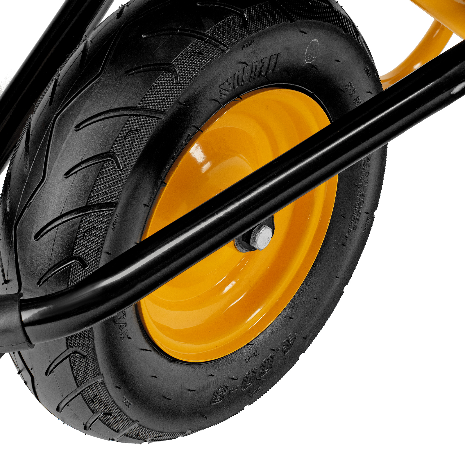 - Продуманная конструкция — промышленный двухрядный подшипник закрытого типа обеспечивает плавный ход, а также защищен от попадания влаги и грязи, что продлевает срок службы тачки.
