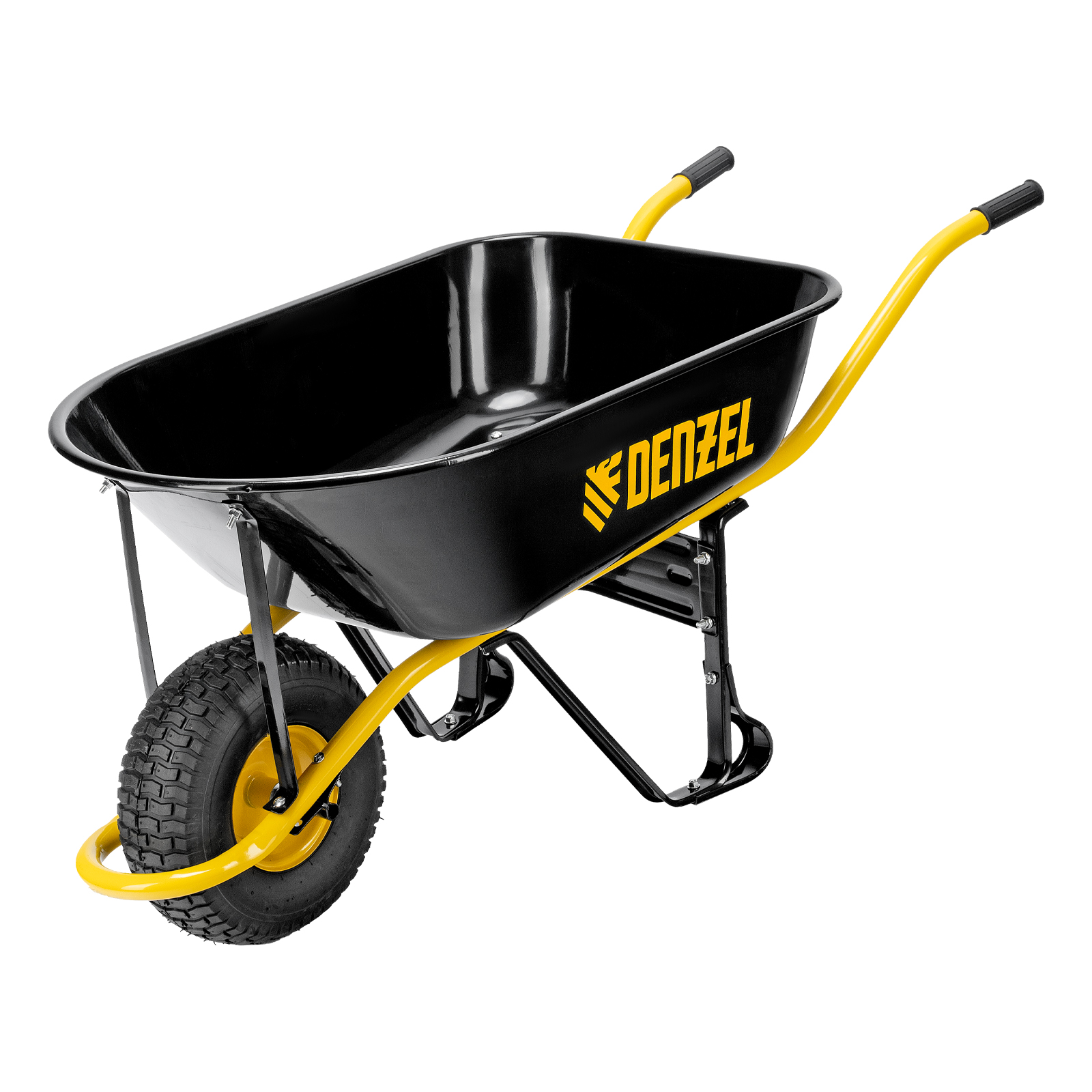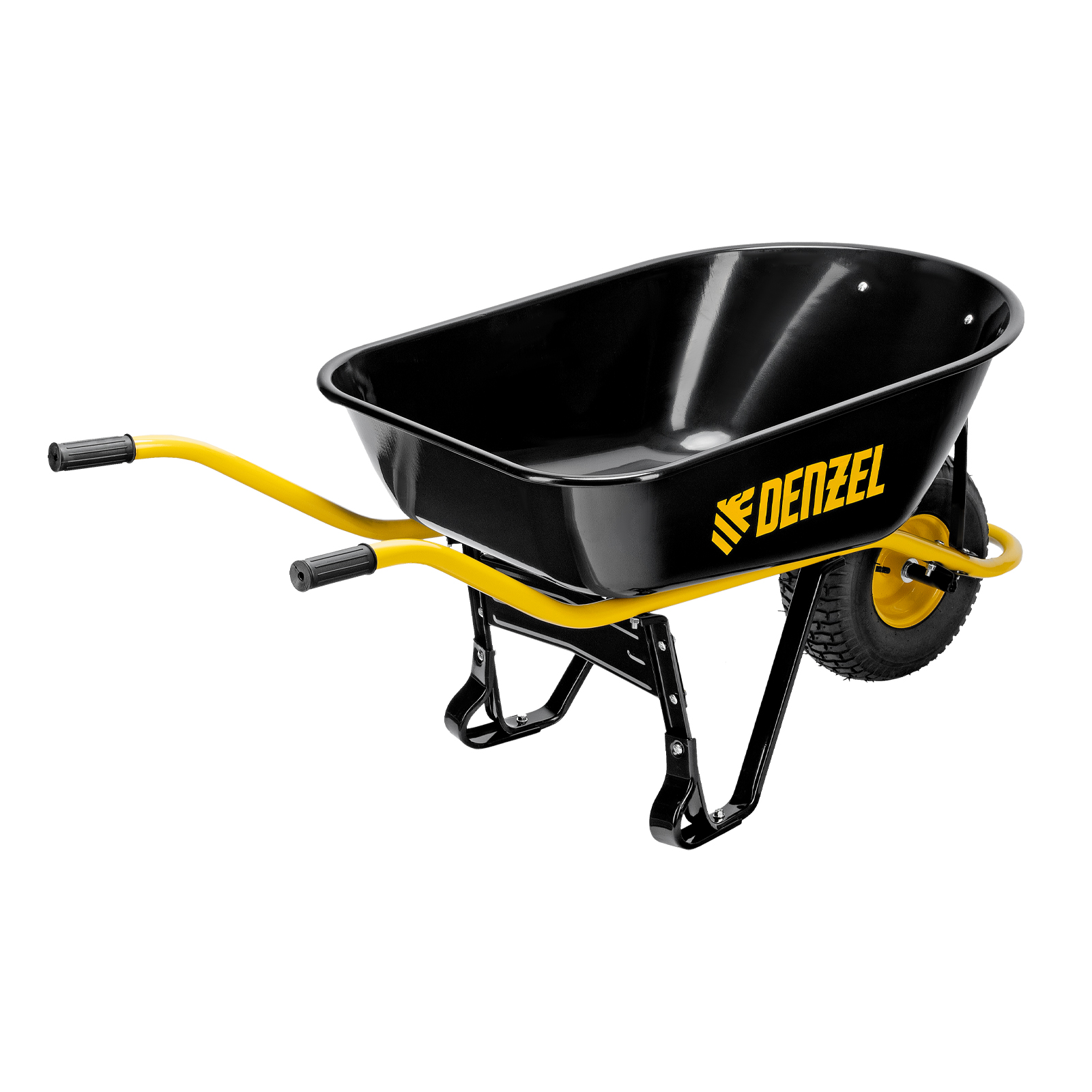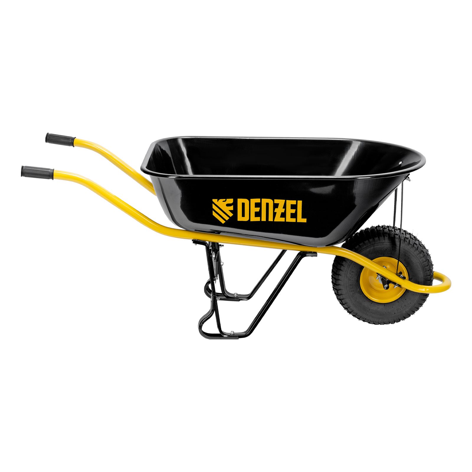 - Устойчивость — тачка не проваливается в грунт благодаря широкому пневматическому колесу и подпятникам на ножках.