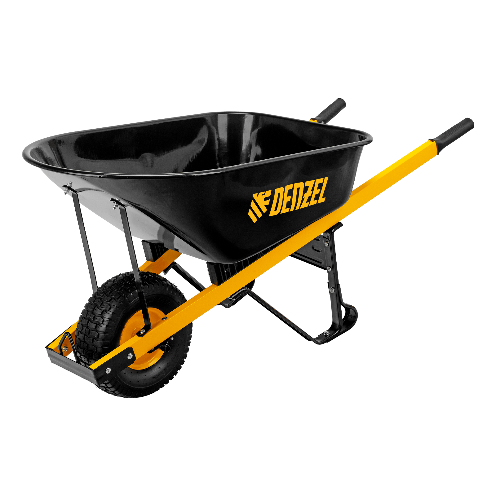 Усиленная строительная тачка Denzel 68999 с колесом 15 х 6,00-6, грузоподъемностью до 230 кг, с объемом кузова 140 л, предназначена для профессионального использования на строительной площадке и в сельском хозяйстве. С ее помощью можно транспортировать строительные грузы и различные сыпучие материалы.