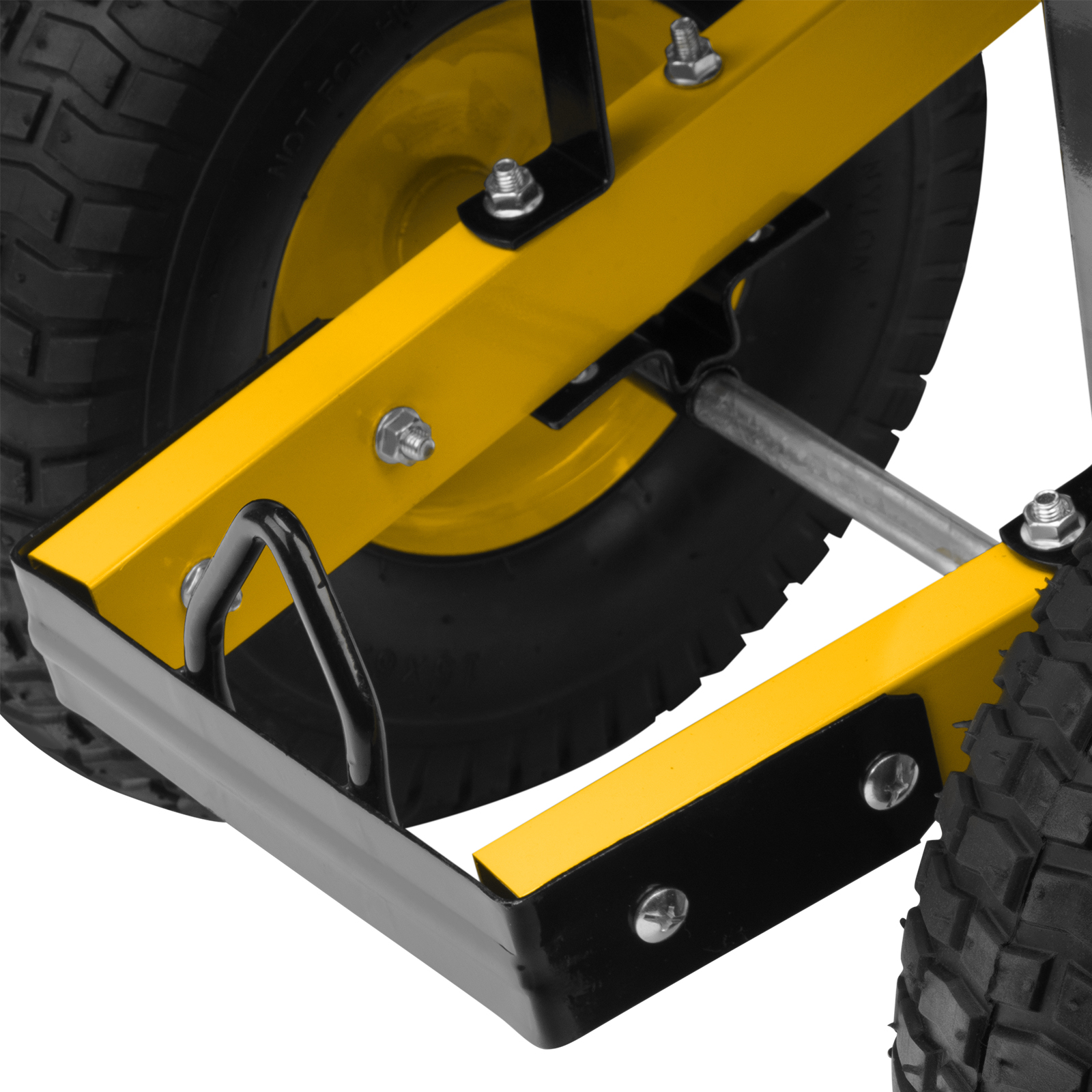 - Дополнительные возможности — специальная петля на раме облегчает транспортировку тачки при полной загрузке и позволяет второму человеку буксировать ее при необходимости.