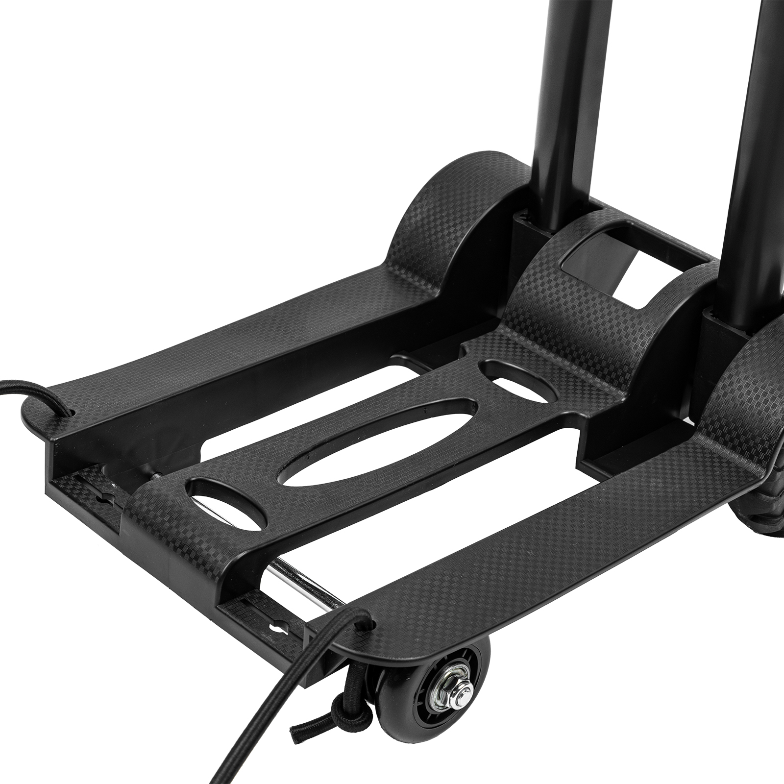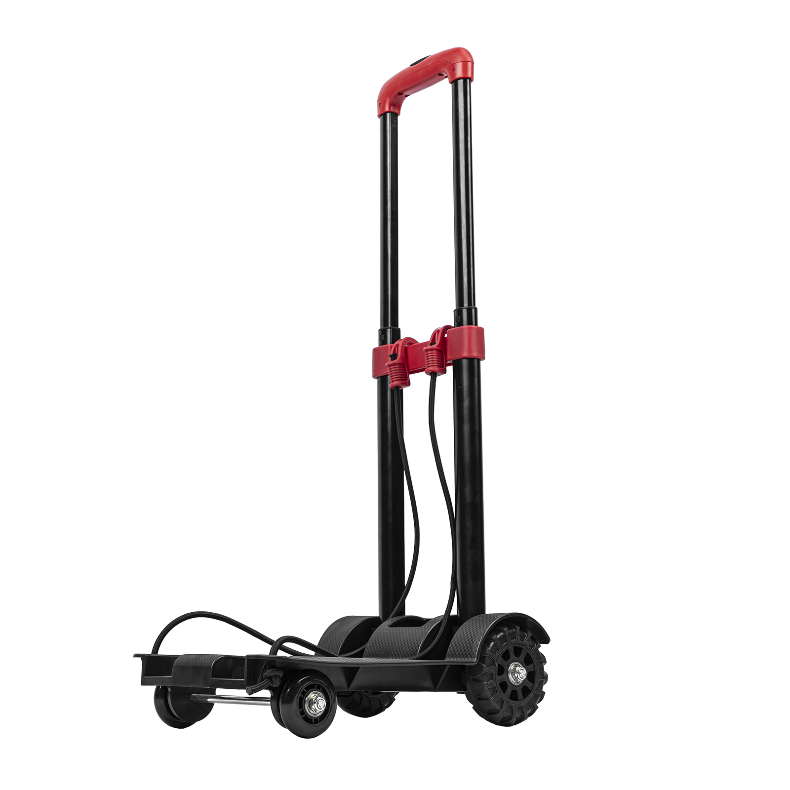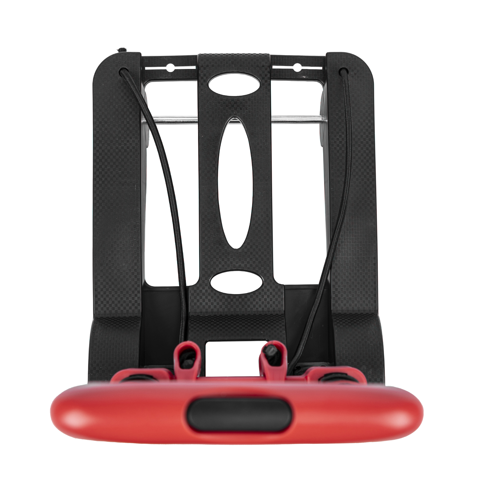 - Надежная фиксация груза — крепкие багажные резинки удерживают его на платформе.