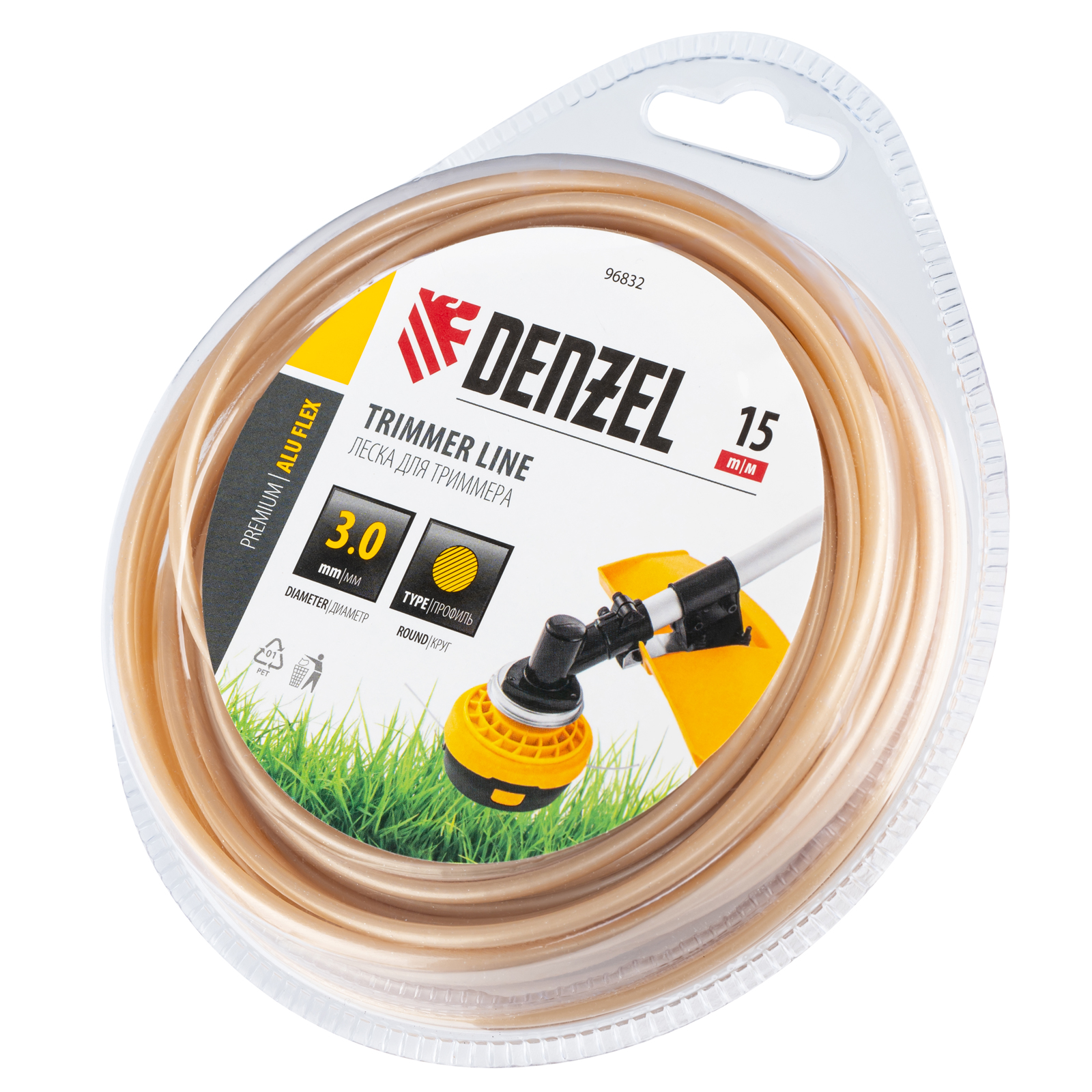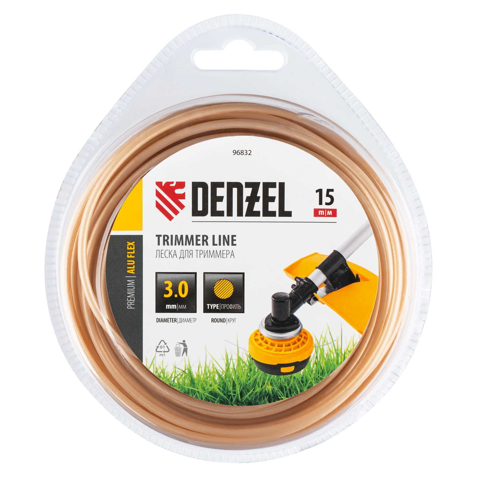 Армированная алюминием леска для триммера Denzel ALUFLEX 96832 круглого сечения, диаметром 3,0 мм и длиной 15 мм, в блистере, предназначена для скашивания густой травы и растений с толстыми стеблями. Отличается повышенной износостойкостью. Заправляется в катушку бензотриммера с объемом двигателя 25-52 см3. Леска будет полезна владельцам дачных участков.