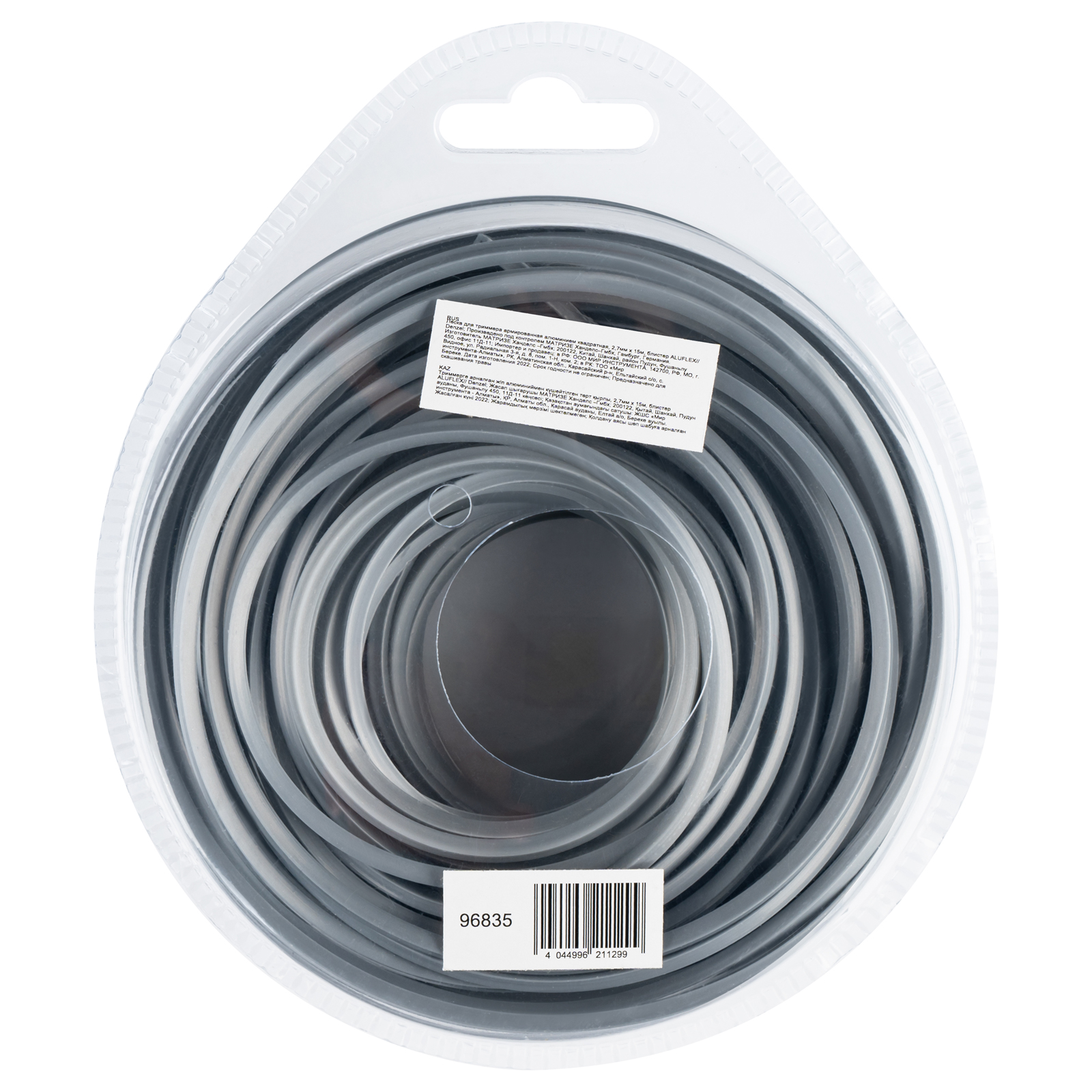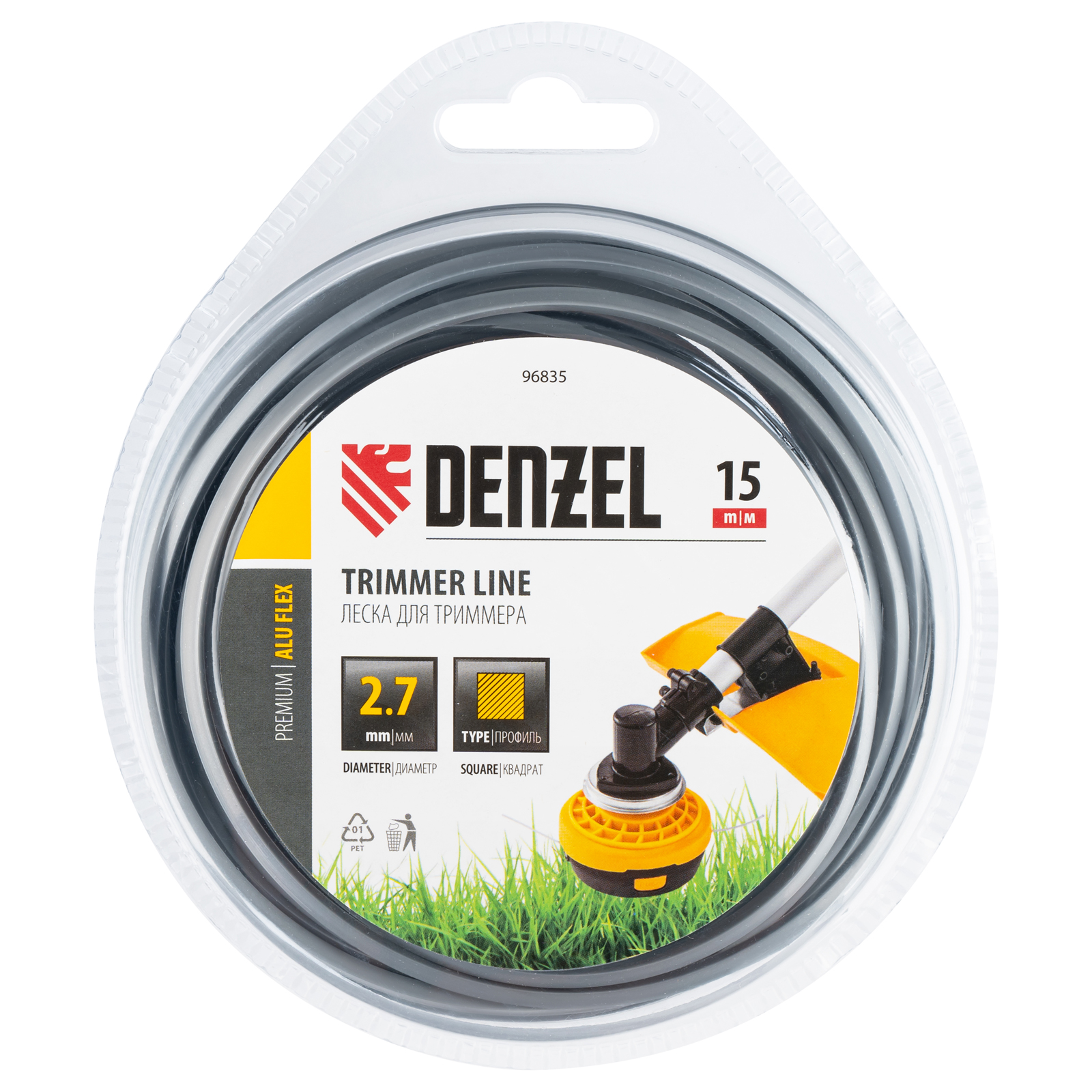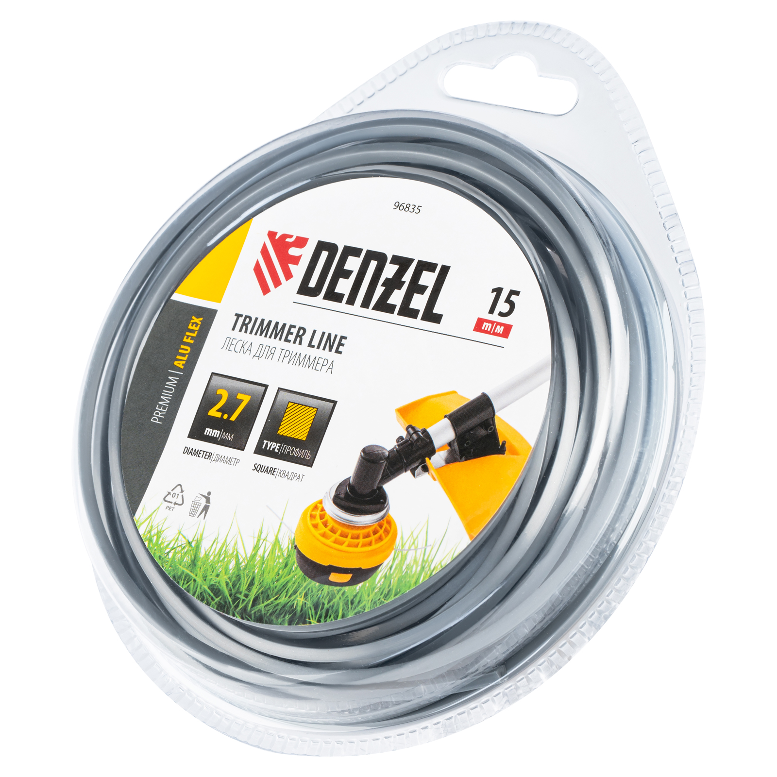 Армированная алюминием леска для триммера Denzel ALUFLEX 96835 квадратного сечения, толщиной 2,7 мм и длиной 15 мм, в блистере, предназначена для скашивания густой травы и растений с толстыми стеблями. Отличается повышенной износостойкостью. Заправляется в катушку бензинового триммера с объемом двигателя 25-52 см3. Леска будет полезна владельцам дачных участков.