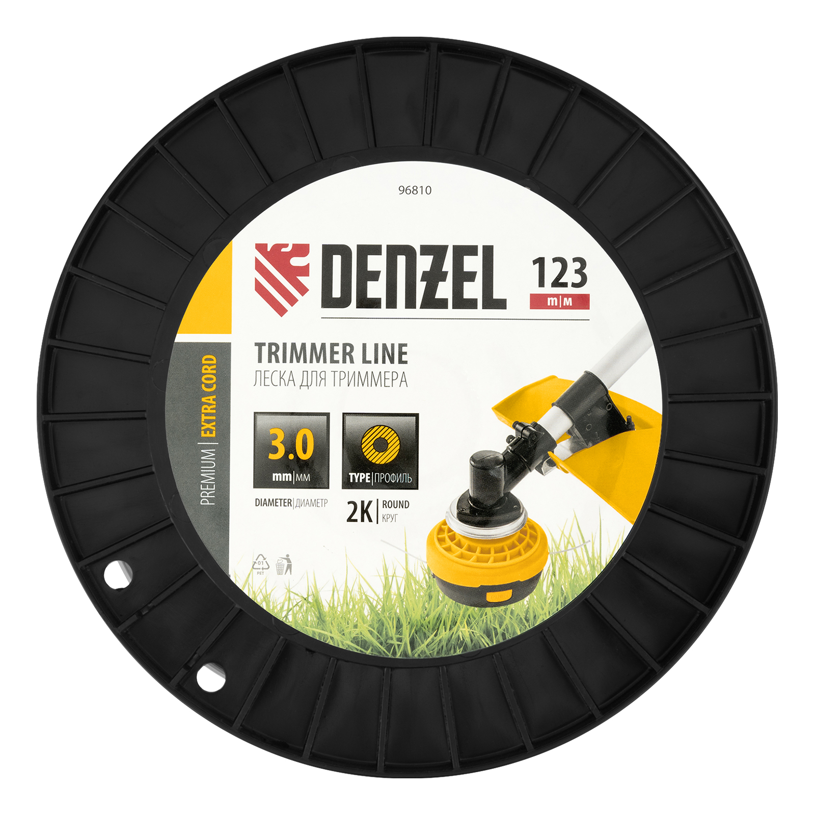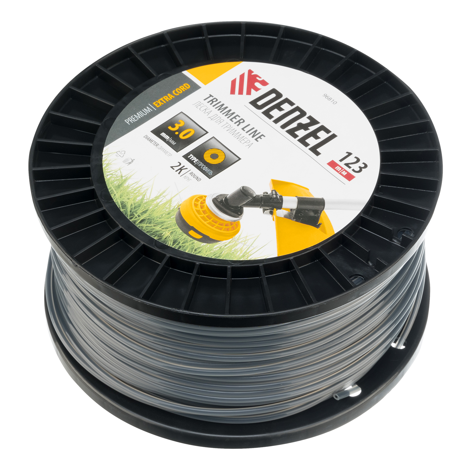 Двухкомпонентная леска для триммера Denzel EXTRA CORD 96810 размером 3,0 мм х 123 м, с круглым сечением, на DIN-катушке, предназначена для работы с бензотриммерами с объемом двигателя 25-52 см3. Используется для скашивания густой травы и растений с толстыми стеблями. Будет полезна для ухода за дачным участком или придомовой территорией.