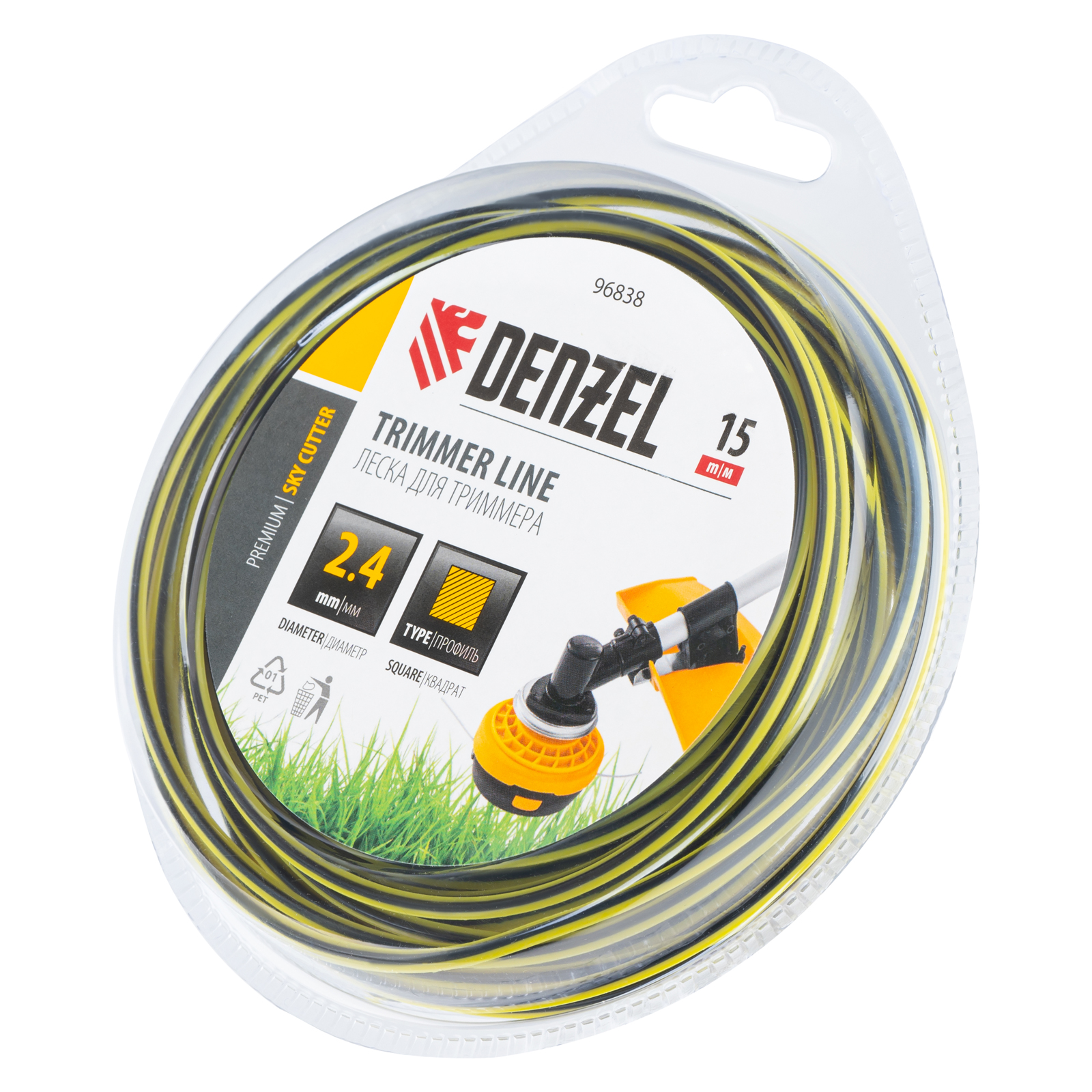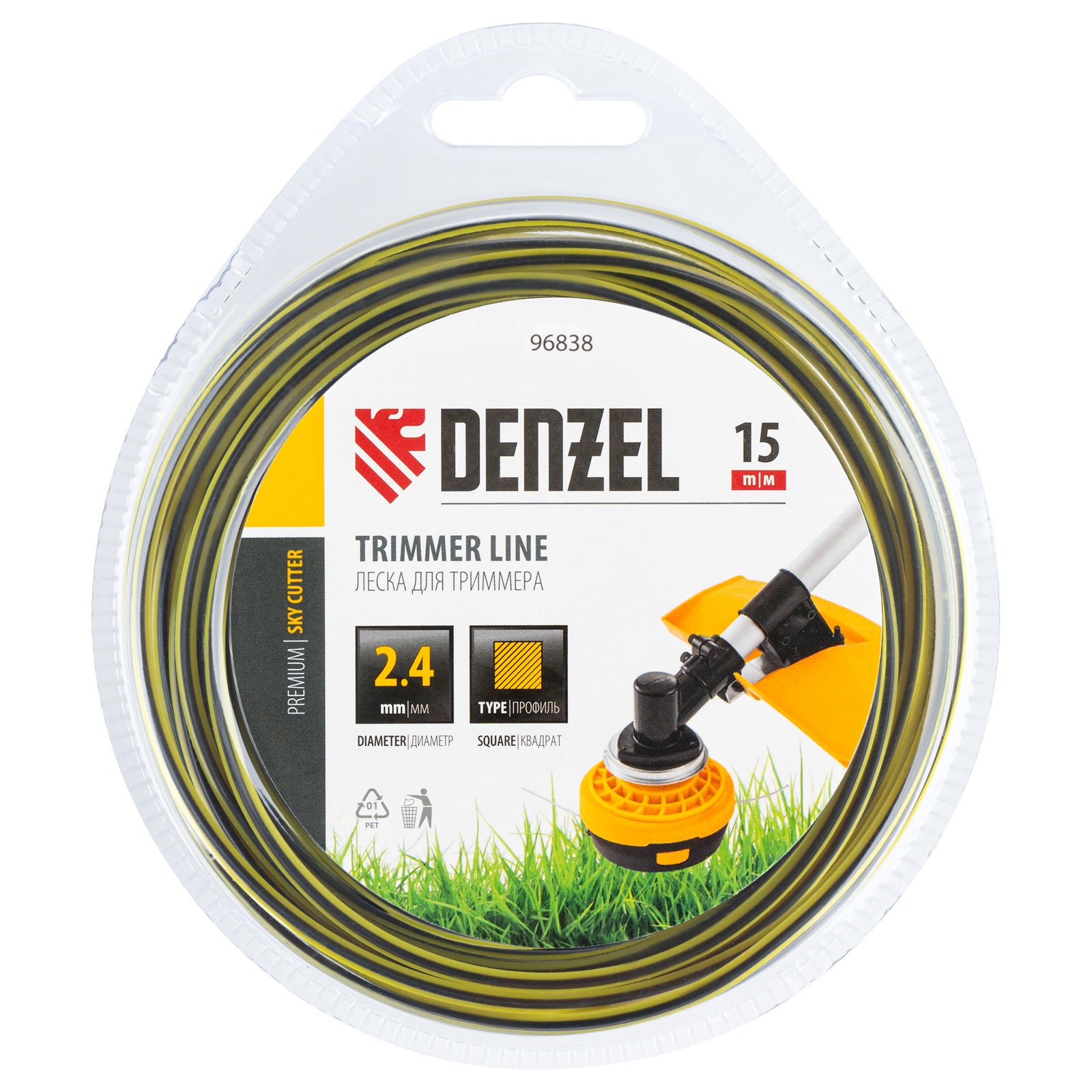 Двухкомпонентная квадратная леска для триммера Denzel SkyCutter 96838 размером 2,4 мм х 15 м, в блистере, используется для скашивания густой газонной травы и борьбы с сорняками. Успешно справляется даже с жесткими и толстыми стеблями, например, с борщевиком. Совместима с электрическими триммерами, также может устанавливаться на бензокосы с объемом двигателя 25-52 см3. Леска оптимальна для использования на дачном участке.