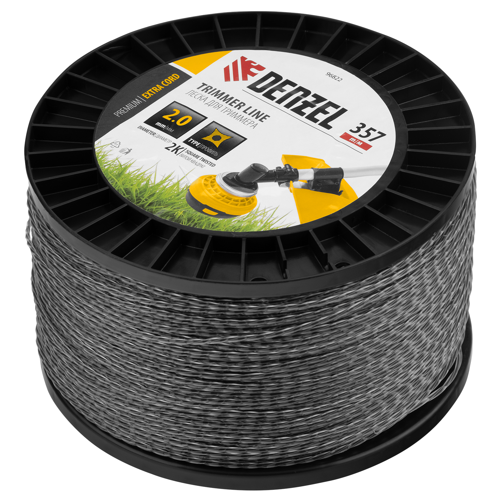 Двухкомпонентная леска для триммера Denzel EXTRA CORD 96822 размером 2,0 мм х 357 м, с сечением «витой квадрат», на DIN-катушке, используется для скашивания густых зарослей травы и сорных растений на дачном участке и придомовой территории. Предназначена для электротриммеров и бензокос с объемом двигателя 25-52 см3. Устойчива к излому, что облегчает ее заправку в катушку. Благодаря острым граням леска успешно справляется с толстыми, жесткими стеблями, позволяя быстро обработать участок большой площади.
