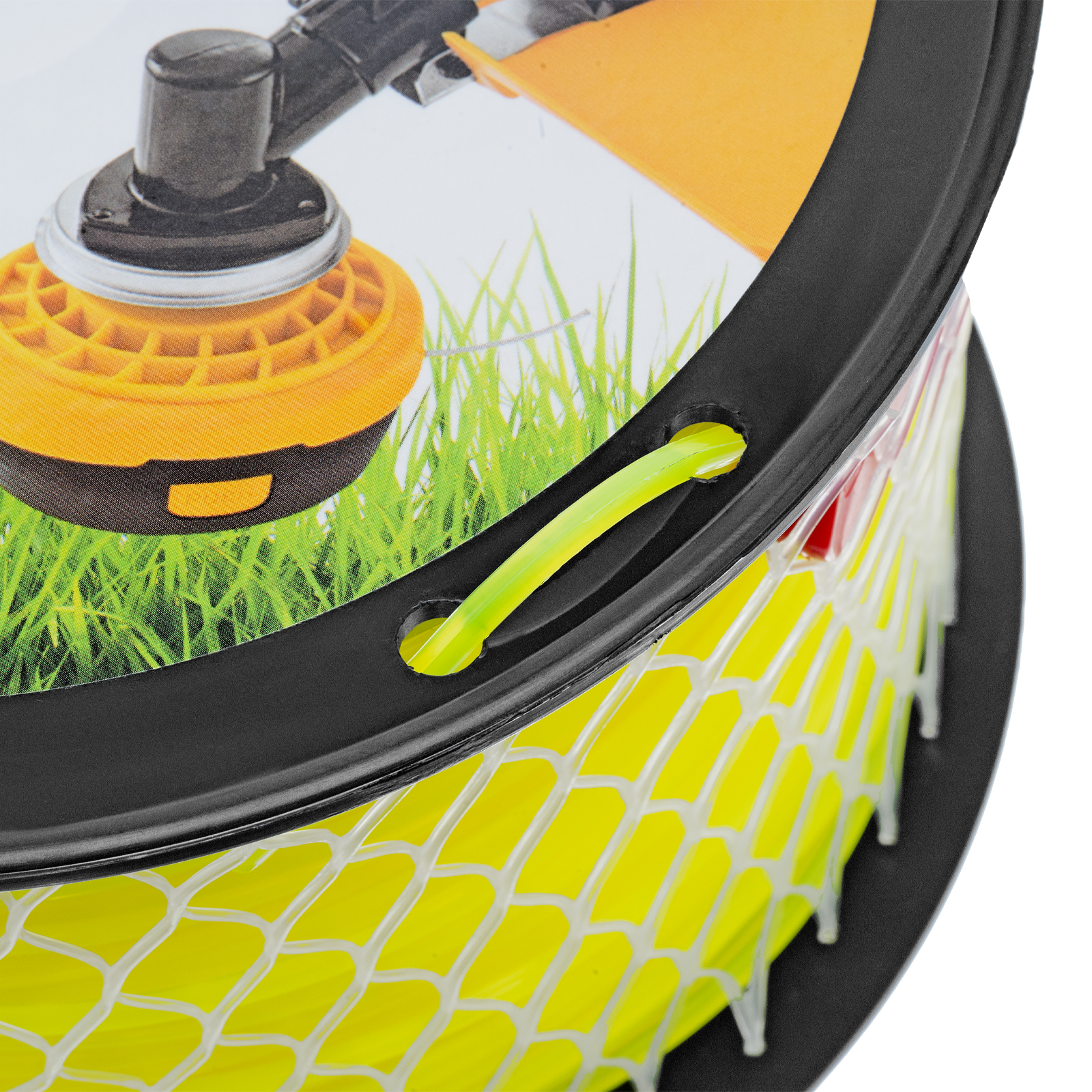 - Высокая производительность — благодаря острым граням леска быстро срезает траву.