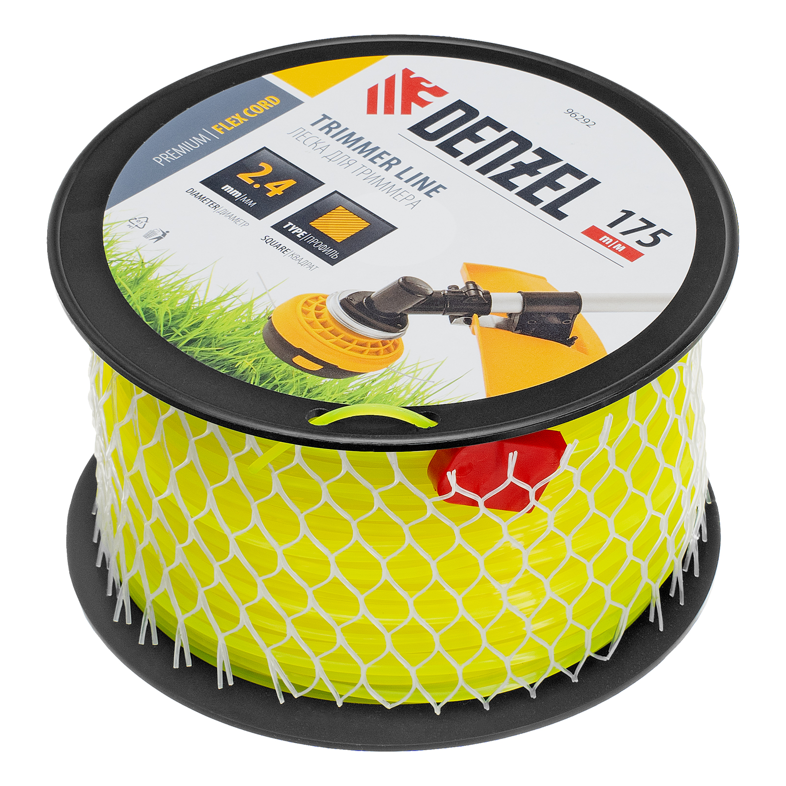 Леска для триммера Denzel FLEX CORD 96292 с сечением «квадрат», толщиной 2,4 мм и длиной 175 м, на DIN-катушке, предназначена для скашивания крупностеблевой растительности. Заправляется в катушку бензотриммеров с объемом двигателя 25-52 см3 и электротриммеров мощностью от 1 до 1,5 кВт.