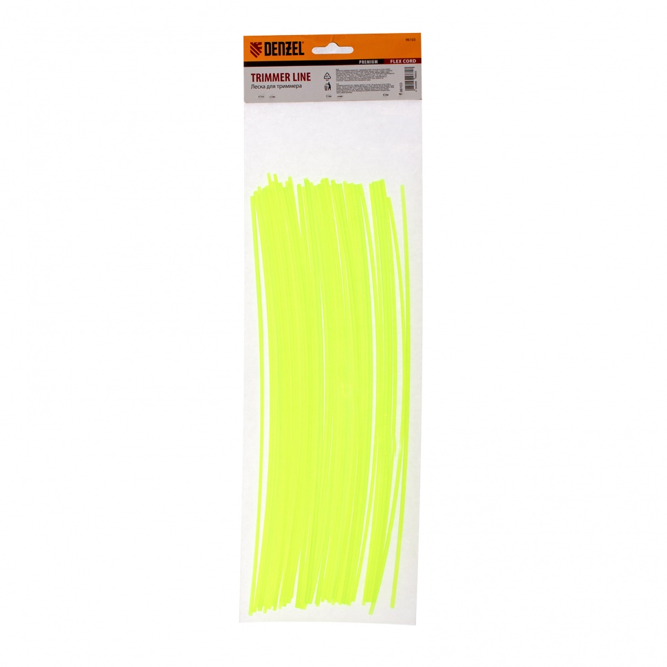 Квадратная леска для триммера Denzel FLEX CORD 96103 диаметром 2,4 мм и длиной 30 см, 50 шт. в уп., предназначена для заправки в триммерную головку и используется для скашивания газонной, густой, высокой или подсохшей травы, а также для избавления от сорняков с толстыми стеблями. Леска подходит для электротриммеров мощностью от 1 до 1,4 кВт и для бензотриммеров.