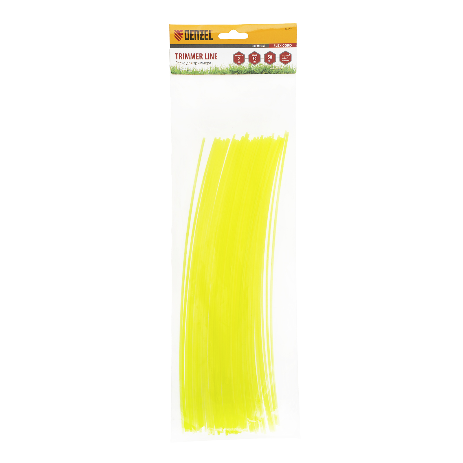 Квадратная нарезанная леска для триммера Denzel FLEX CORD 96102 диаметром 2 мм и длиной 30 см, 50 шт. в уп., предназначена для заправки в триммерную головку. Подходит для электротриммеров мощностью от 1000 Вт и бензотриммеров. С ее помощью можно скашивать газонную траву и небольшие сорняки.